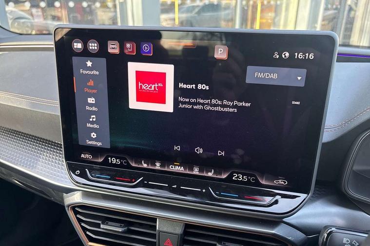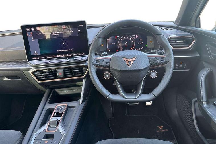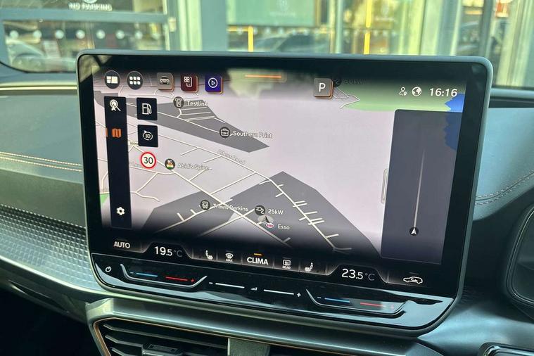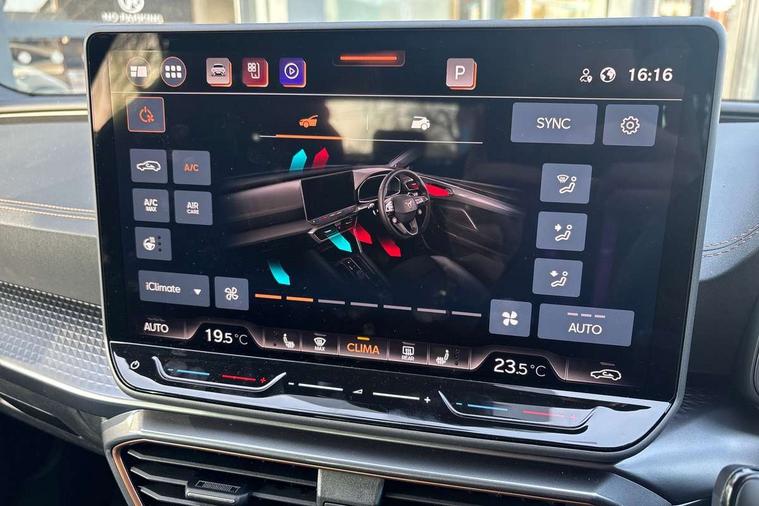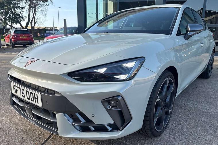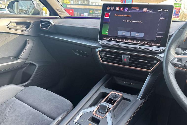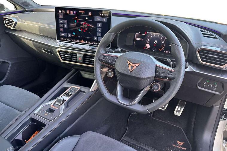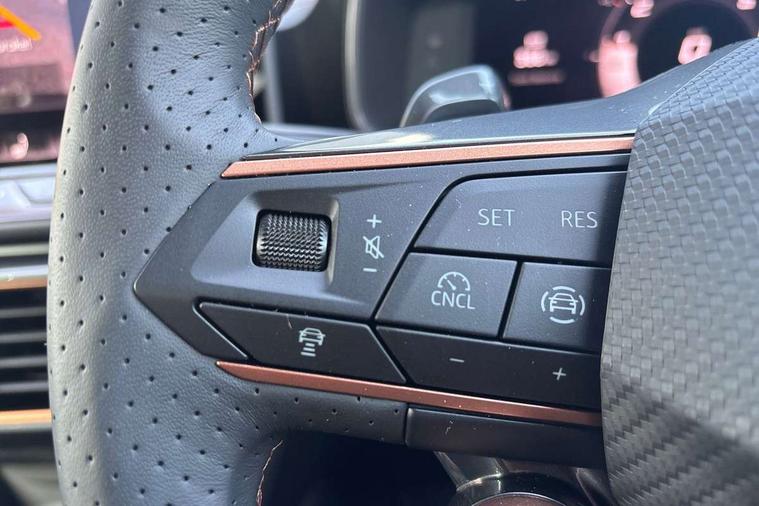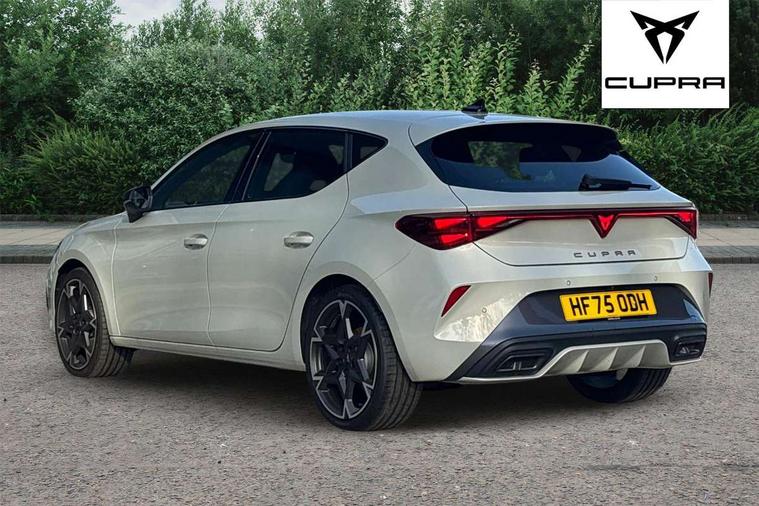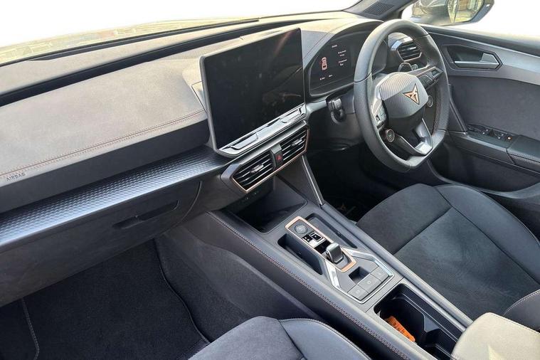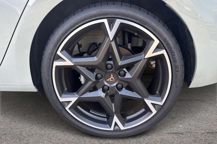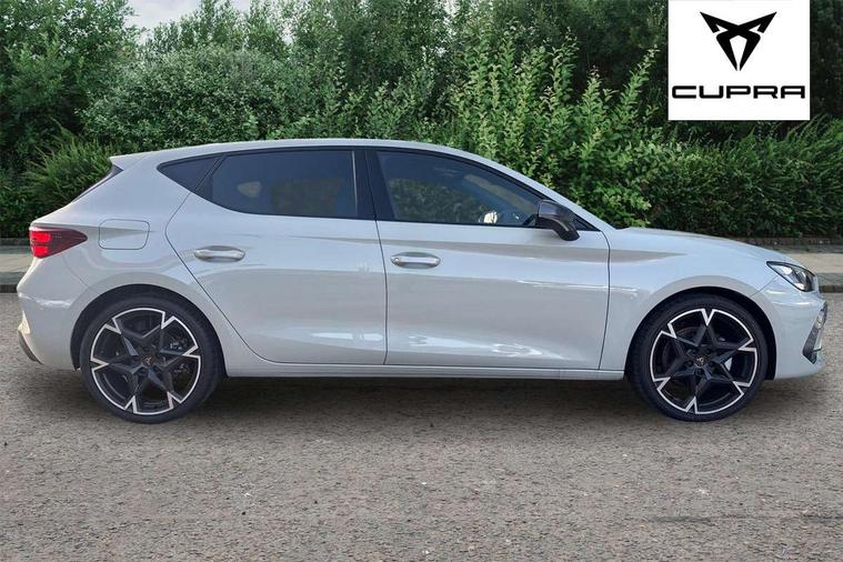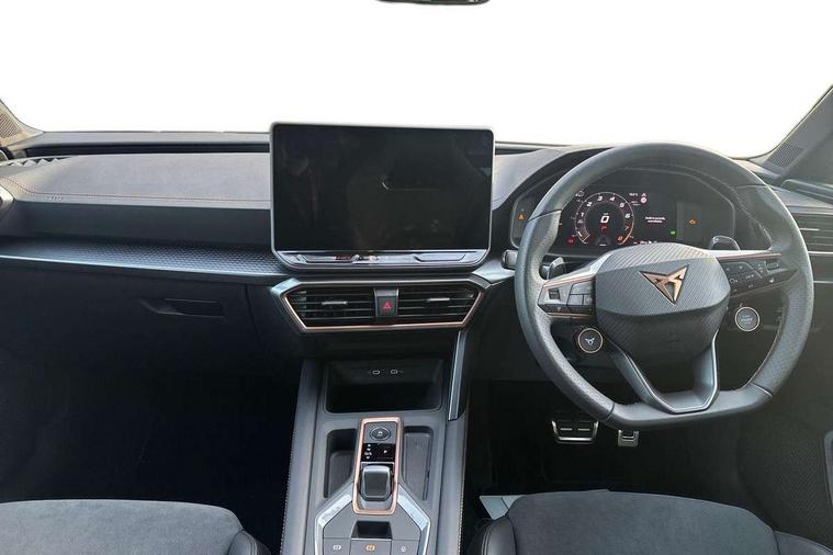 Adaptive cruise control with follow-to-stop and speed limiter, CUPRA drive profile selection with (Comfort/Sport/Individual), throttle response and gearshift mode, Digital cockpit, Dynamic road sign display, E-call, Front and rear parking sensors, Front assist with forward collision warning braking reaction to vehicles, pedestrians and cyclists, Full link smartphone integration with Mirror Link, wireless Apple CarPlay and wired Google Android Auto, Lane assist, Lockable tailgate, Rear view camera, RPM, trip computer, outside temp gauge, instrument light brightness, low fuel warning light, lights on reminder, gearshift indicator, Service interval indicator, Start/stop system with regenerative braking, Wireless phone charger, Auxiliary input socket, Auto dimming rear view mirror, Body colour door handles, Body coloured bumpers, Cupra sports bumpers, Dark tinted rear windows, Electric front/rear windows, Electrically adjustable, heated and folding door mirrors, High beam assist, LED front fog lamps with cornering function, LED headlights with dynamic turn signals, tail lights, rear fog lights with rear coast to coast lighting, LED rear fog lamp, Rain sensing wipers, Rear side wing doors, Rear wash/wipe, Separate daytime running light with automatic headlight control and coming home feature, Third brake light, Welcome light with logo projector in door mirrors, 12v power supply in centre console, 3 seat bench in 2nd row, 5 headrests, 60/40 split rear bench seat with armrest, Ambient lighting (glovebox, footwell, ambient lighting multicoloured), Black headlining, Cupra sports pedals, CUPRA Supersports, heated steering wheel with satellite buttons, Dinamica cloth upholstery, Electrically adjustable driver seat and lumbar support with memory function + manually adjustable passenger seat, Folding boot cover, Four x USB Type C ports (2 in front and 2 in rear), Front and rear reading lights X 4, Front centre armrest, Heated front seats, Height/reach adjust steering wheel, Illuminated interior front door sills, Interior wraparound lighting, ISOFIX points in outer rear seats with top tether anchorage points, Single front passenger seat, Storage pockets on rear of front seats, Sunvisors with illuminated mirror, Three zone climate control, Dynamic and comfort pack - Leon Cupra, Media system plus with 12.9" display + navigation pack - Leon Cupra, 3 point seatbelts on all rear seats, ABS, Brake control system - ESC and brake booster, Child proof door locks, Cupra black brake calipers, Driver and front passenger airbags with front passenger airbag de-activation, front side and curtain airbags, Electronic parking brake, Hill hold control, Rear disc brakes, Seat belt reminder for front and rear seats, Tiredness recognition system, Tyre pressure monitoring system, Anti theft alarm system with interior monitoring in cab, backup horn and towing protection, KESSY Advanced - Keyless start, keyless entry, Locking wheel bolts, Chrome and copper interior detailing, 19" Polar machined sport black and silver alloy wheel with 91Y tyres, Tool kit,