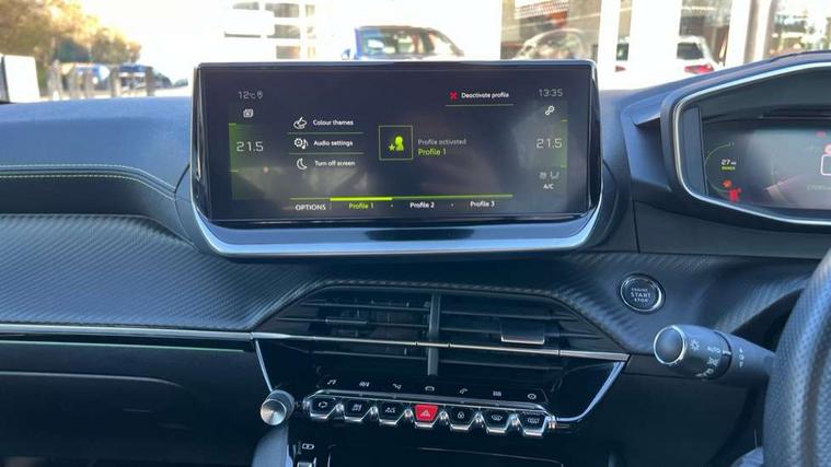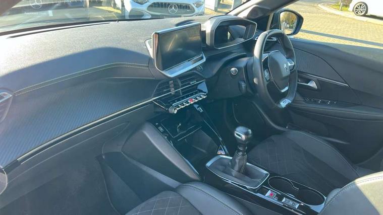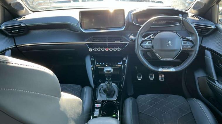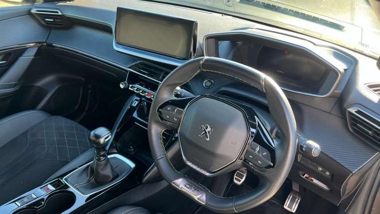 10" Capacitive colour touchscreen with connected 3D navigation, Blind spot monitoring, Bluetooth telephone facility, Driver attention warning, Exterior temperature indicator with ice warning, Lane keep assist, Mirror screen with mirror link, apple carplay and android auto, Multi function trip computer, PEUGEOT i-Cockpit with compact steering wheel, PEUGEOT i-Cockpit with configurable 3D headup instrument panel, PEUGEOT SOS and assistance, Push button start, Smart phone docking station, Speed limit recognition and recommendation, Start/stop system, Visio park assist 180 with colour reversing camera + front and rear parking sensor, 2 front USB socket with USB-C, 2x USB sockets in rear, 6 speakers radio with mp3 compatible, DAB Digital radio, Voice recognition for radio, navigation and telephony features, 2 X Rear number plate lights, Automatic hazard light activation upon heavy brake application, Automatic lights, Automatic windscreen wipers, Body coloured exterior door handles, Dark tinted rear side and tailgate windows, Diamond black rear spoiler (roof), Diamond Black roof, Electric front windows + one touch + anti-pinch, Electric rear windows with one touch/anti-pinch, Electrically adjustable, heated and power folding door mirrors, Follow me home headlights, Frameless electrochrome interior rear view mirror, Full LED headlights with smartbeam assist, Gloss black finish on B pillar, Gloss black rear cluster connecting strip, Gloss black wheel arch extensions, Gloss black window surround, GT model designation badging on C pillar, GT model designation badging on tailgate, Headlights left on audible warning, LED daytime running lights with 3 claw headlight with distinctive tooth design, LED side indicator lights integrated into door mirrors, LED third brake light, Model designation badges front and rear, Nera black door mirror shells, Peugeot scuff plates, Radiator grille - Dark chrome chequered and gloss black edge trim, Rear bumper with gloss black finish, Rear full LED 3D peugeot signature claw effect lights with daylight function, Rear lower bumper diffuser effect trim in gloss black, Rear reversing lights, Rear side wing doors, Rear windscreen wiper triggered automatically in reverse gear, Roof mounted aerial with fin design, Roof spoiler, Single exhaust tailpipe, Tailgate with heated rear windscreen and wiper blade, Variable front intermittent wipers, 1/3 to 2/3 split folding rear seats, 12V socket, 3 seat bench in 2nd row, 8 Colour personalisable ambient lighting, Aluminium pedals and foot rest, Automatic air conditioning, Driver and front passenger seat manual adjustment in longitudinal and back rest angle, Driver and front passenger seat mechanical height adjustment, Driver and front passenger sport seats, Electric power steering with reach and rake adjustable steering column, Front and rear carpet mats in black with lime green stitch detail, Front centre armrest with storage compartment, Front LED interior light with 2 reading spotlights and rear interior light with timer, Gear shift indicator, High centre console with 2 cup holders, ISOFIX child seat mounting points on passenger seat, Lime green contrast stitching to armrest, front centre console, door panels and dashboard facia, Map pockets on the backs of the front seats, Mistral full grain perforated leather steering wheel with aikinite stitch detail and satin chrome 'GT' emblem, Piano keys gloss black plated toggle switches to access main functions of the vehicle, Piano keys gloss black plated toggle switches to access touchscreen functions, Rear centre headrest, Roof lining - Mistral black, Satin chrome gear lever, Seatbelt unfastened on the move audible and visual alert for front and rear seats, Single front passenger seat, Drive assist pack - 208, 3 rear 3 point seatbelts, ABS (Anti-lock Braking System) with EBD (Electronic Brakeforce Distribution) and EBA (Emergency Braking Assistance), Active safety brake with night function/cyclists/pedestrians, Adaptive driver and front passenger airbags with passenger airbag deactivation function, Child locking functionality on rear doors, Driver/front passenger side airbags, Electric parking brake, ESP with Hill Assist, Front and rear curtain airbags, Front and rear disc brakes, Front optimised safety headrests and 3 x rear retractable headrests with height adjustable, Front three point retractable seatbelts with force limiters, Tyre pressure sensor, Acoustic vehicle alert system (AVAS), Automatic door locking when moving off, Deadlock, Electronic code immobiliser, Peugeot Open and Go System, Remote central locking, Thatcham cat. 1 alarm with anti lift sensor, Carbon effect Dashboard, front and rear door panel finish, 17" Bronx two-tone alloy wheels, Space saver spare wheel,