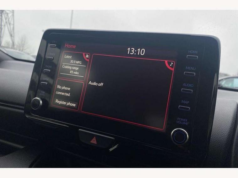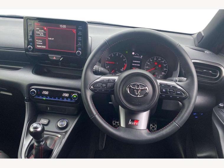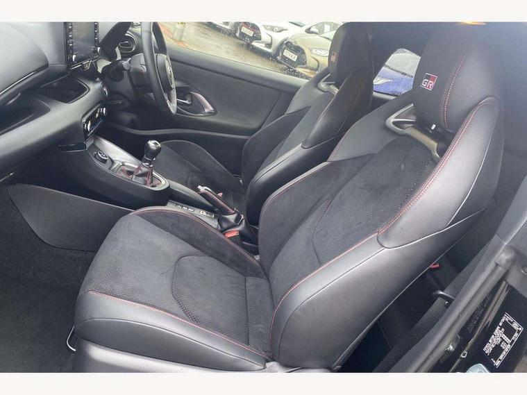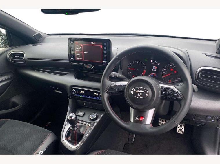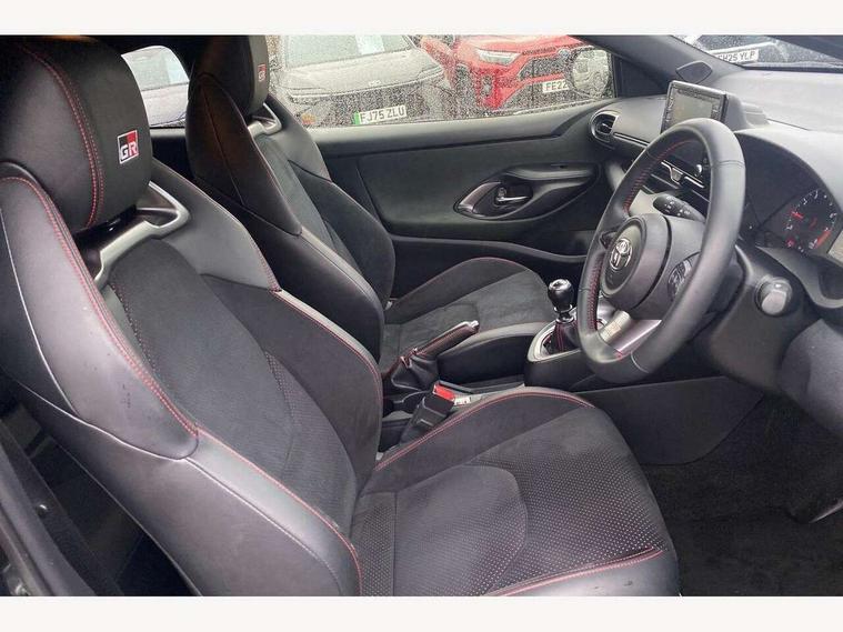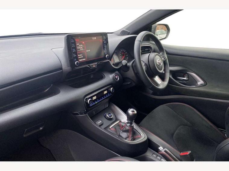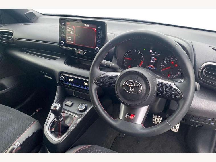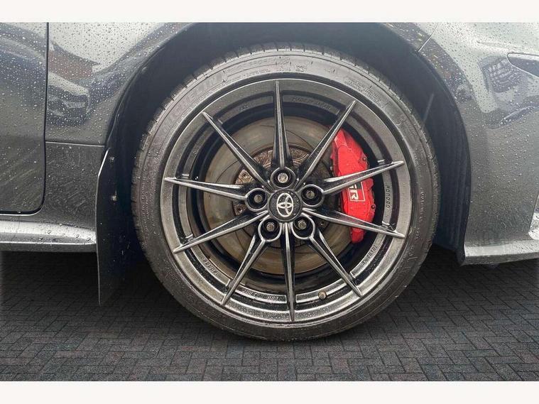 Apple car play/Android Auto, Coloured TFT multi informational display, eCall emergency system, Emergency steering assist, Intelligent adaptive cruise control, Lane Departure Alert (LDA) switch on steering wheel, Lane trace assist, Power Steering, Pre-collision system (PCS), Reversing camera, Road sign assist - RSA, Circuit tuned GR suspension, Double wishbone rear suspension, GR-Four AWD switch, MacPherson front suspension, Vehicle Stability Control (VSC), 6 speakers, 8" Multimedia display touch screen, DAB Digital radio, Toyota touch 2 multimedia system, USB connection, Adaptive high beam assist, Adaptive LED Headlights, Air intakes for brake cooling, Auto dimming eletrochromatic rear view mirror, Auto windscreen wipers, Automatic headlights, Automatic headlights cut-off, Automatically retractable door mirrors, Black contrasting colour door mirrors, Black rear spoiler, Body coloured door handles, Body coloured rear bumper, Carbon fibre roof wrap, Door scuff plates, Dual exhaust pipes, Electric adjustable heated door mirrors, Follow me home headlights, Front auto power windows with anti jam protection, Gloss black GR front bumper, GR badges 1 front, 1 rear and 2 sides, GR lower front grille, Integrated LED indicators in door mirrors, LED daytime running lights, LED fog lights, LED High mounted stop lamp, LED rear combination lights, Piano black side air vents, Privacy glass on rear and back windows, Rear auto power windows with anti jam protection, Rear window defogger, Shark fin antenna, 12V socket in front, 2 rear head restraints, 3 spoke leather sports steering wheel, 60/40 split folding rear seat, Aluminium pedals, Clean air filter, Driver and passenger headrests, Driver's sun visor with vanity mirror, Dual zone automatic air conditioning, Front bottle holders, Front cup holders, Front map light, Front sports seats, GR floor mats, GR logo on steering wheel, GR Ultrasuede leather upholstery, Height adjustable driver's seat, Isofix child rear seat restraints, Leather gearshift, Leather handbrake, Manual slide adjustable on driver's and passenger seats, Microphone on front personal light, Multimedia switch on steering wheel, Pollen filter, Red stitching on gearshift, Red stitching on handbrake lever, Satin chrome interior door handles, Soft tonneau cover, Ticket holder on driver's sun visor, Tilt/telescopic steering column, ABS with Brake Assist, Airbags - driver and front passenger, Driver and passenger side airbags, Emergency brake light system (EBS), Front passenger airbag on/off switch, Front seatbelt reminder, Hill start assist control (HAC), Rear passenger airbag, Rear seat belt reminder, Red brake callipers, Red sport front and rear brake pads, Start holding control, Torsen limited slip differentials x2, Tyre pressure warning system, Alarm/immobiliser, Keyless smart entry with push button start, 18" 10 spoke forged alloy wheels with Michelin pilot sport, Tyre repair kit,