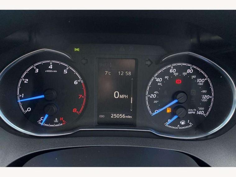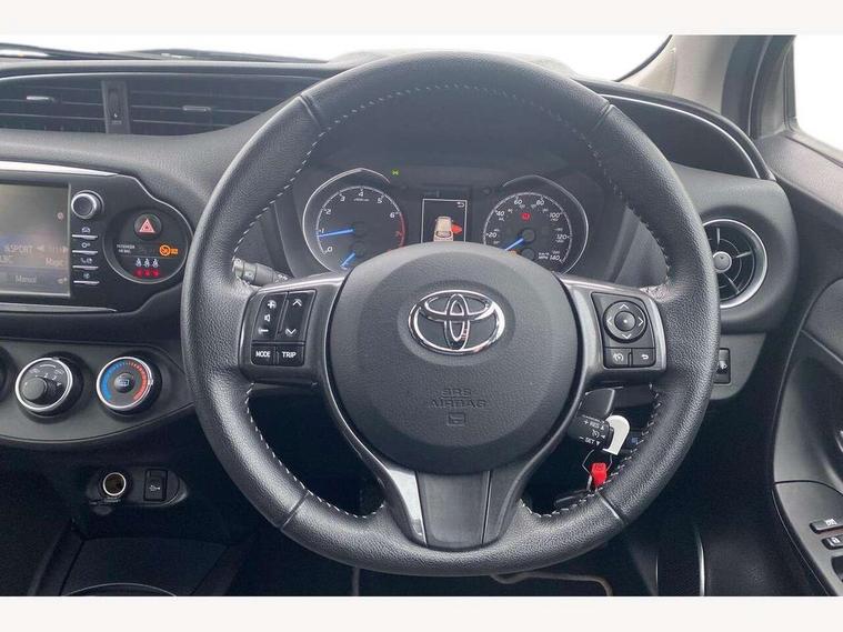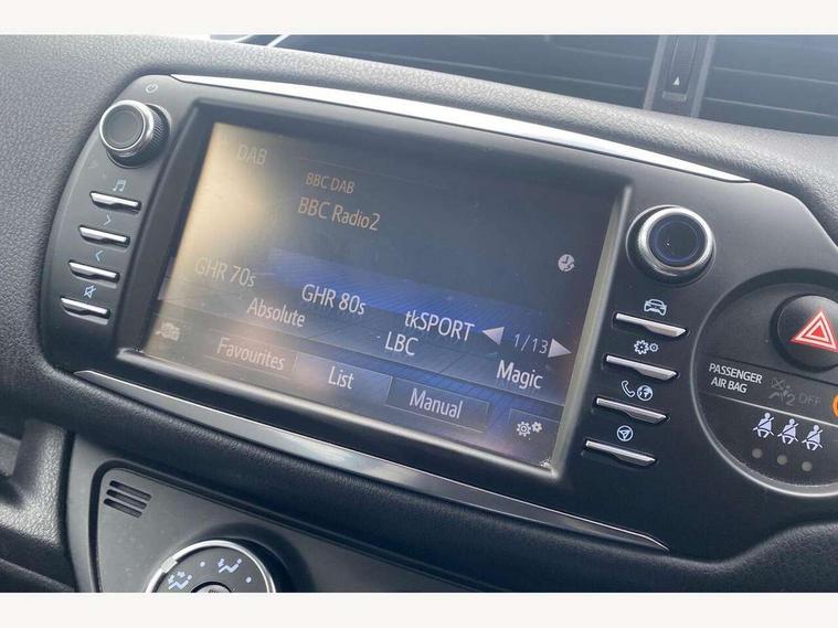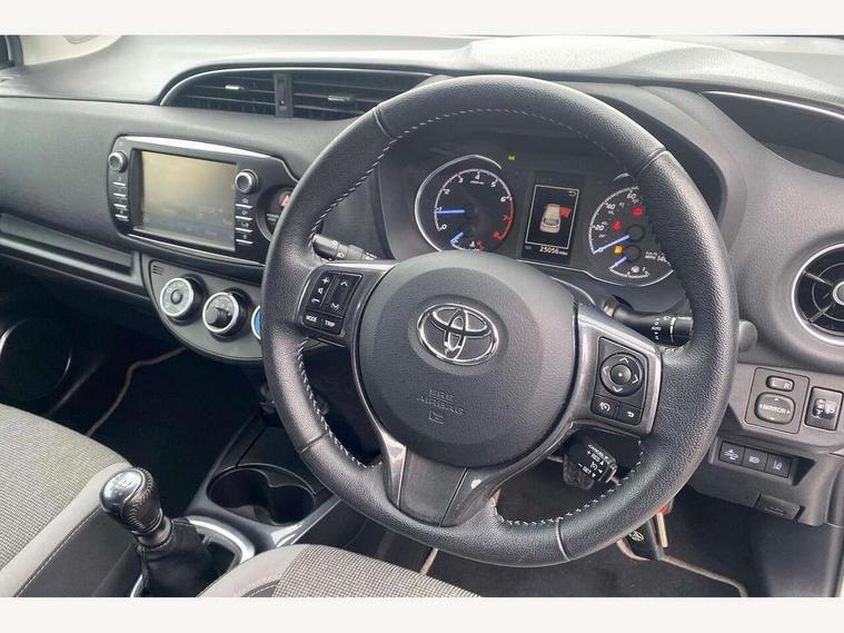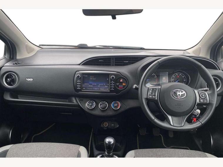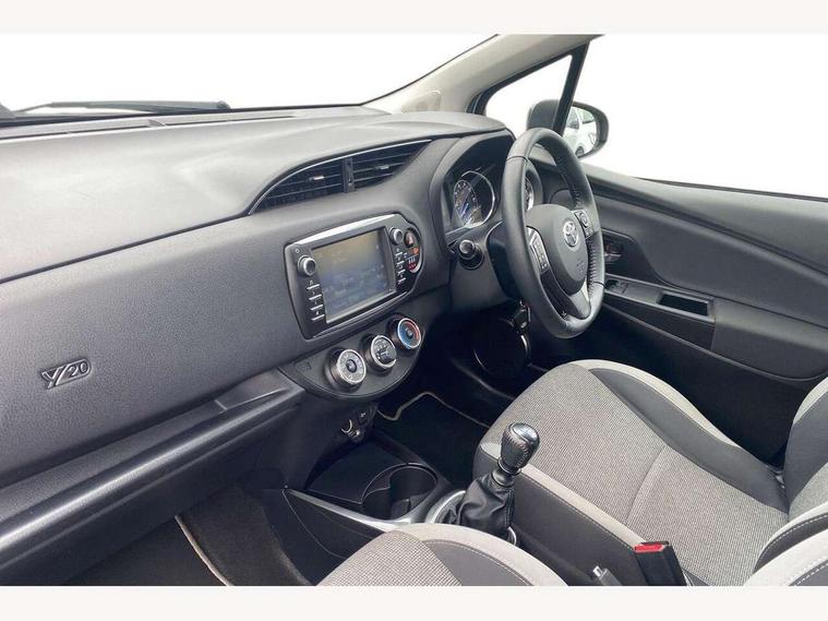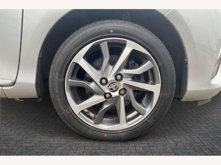 4.2" coloured LED TFT multi information display, Analogue speedometer, Analogue tachometer, Auto speed limiter, Bluetooth connectivity, Cruise control, External temperature gauge, Fuel indicator with low level warning, Key reminder warning, Lights on warning, Multi information display switches on steering wheel, Power Steering, Reversing camera, Trip computer, 6 speakers, Auxiliary input socket, Steering wheel mounted audio/telephone switches, Toyota Touch 2 with DAB, USB connection, Auto up and down function on drivers window, Automatic wipers, Bi-tone grey roof, Black lower front grille, Body colour bumpers, Body colour door handles, C pillar decal, Daytime running lights, Electric adjustable heated door mirrors, Electric front windows, Follow me home headlights, Front fog lights, Grey contrasting colour door mirrors, Grey door moulding, Grey door side sills, Grey front grille and fogs, Headlight cut-off reminder, LED High mounted stop lamp, Manual dimming rear view mirror, Privacy glass, Projector headlights, Rain sensitive windscreen wipers, Rear combination lights bulb type, Rear window defogger, Rear wiper, Turning signal integrated indicators in door mirrors, Y20 Badging, 12v power outlet - front, 3 adjustable rear headrests, 3 spoke leather steering wheel, 60/40 split folding rear seat, Boot light, Data Communication Module (DCM) connected services, Driver and front passenger personal light, Driver and front passenger Whiplash Injury Lessening seats, Fabric upholstery, Front and rear cup holders, Front map reading lights, Front seats with lumbar support, Glovebox, Height adjustable driver's seat, Height adjustable front head restraints, Illuminated entry system, Isofix seat fixing, Leather gearshift, Manual air conditioning, Map pockets on the backs of the front seats, Pollen filter, Removable rear parcel shelf, Sliding front seats, Soft touch inner door garnish, Tilt/telescopic steering column, Y20 badge interior and in seat trim, 3 point seatbelts on all rear seats, ABS+EBD+Brake assist, Active headrests, Collision mitigation braking system, Emergency brake light system (EBS), Front passenger airbag on/off switch, Front seatbelt reminder, Height adjustable front seatbelts with pre-tensioners and load limiters, Hill start assist control (HAC), Rear child proof door locks, Rear seat belt reminder, Road sign information display, Seatbelt warning lamp and buzzer, Supplemental restraint system (SRS) airbags - 7 airbags including driver, front passenger, curtain, side and knee airbags, Toyota safety sense including Road sign assist, Pre collision system, auto high beam and lane departure alert), Tyre pressure warning system, Vehicle stability control VSC + traction control, Engine immobiliser, Power and remote door locking, Interior satin accents, Soft touch instrument panel, 16" 10 spoke grey machined alloy wheels, Space saver spare wheel,