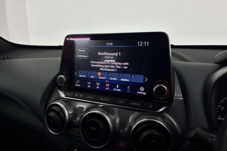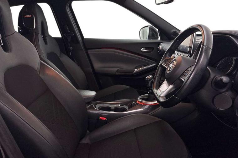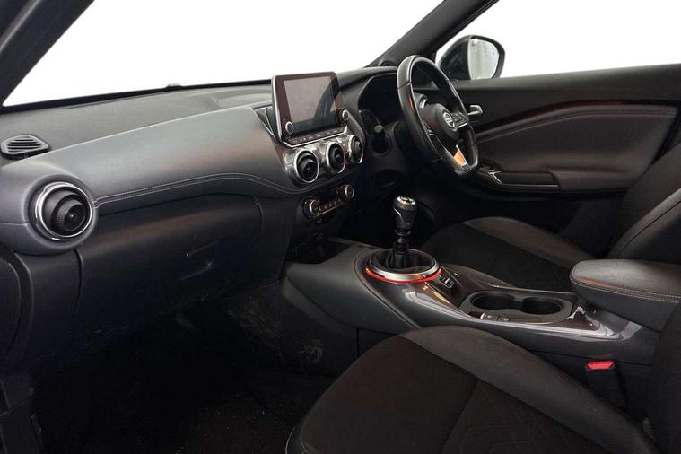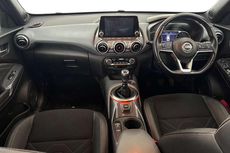 7" full colour TFT screen combimeter, 8" infotainment colour display with touch screen, Apple CarPlay and Google Android auto, Drive modes select (Eco, normal and sport), Emergency and breakdown call, Front parking sensor, Idle start/stop system, Intelligent lane intervention, Lane departure warning system, Nissan connect nav with TomTom traffic, Nissan connect services and Wifi connection, Outside temperature sensor, Power Steering, Rear parking sensor, Traffic sign recognition, Trip computer, Gasoline particulate filter, Bluetooth system, USB, Aux-in and 12V socket, Bose personal plus audio system with 8 speakers(4 speakers and 2 headrest speaker for driver and passenger seats), Bose personal sound stage control, DAB Digital radio, Rear console USB port, Auto dimming interior rear view mirror, Automatic hazard signal with emergency stop signal, Body colour bumpers, Body colour door handles, Electrically adjustable door mirrors with integrated indicators, Follow me home headlights, Front and rear electric window with one touch driver window, Heated and auto folding door mirrors, High beam assist, LED daytime running lights, LED front fog lights, LED headlamps, LED rear fog lamp, LED rear lamps, Rain sensor windscreen wipers, Rear privacy glass, Rear spoiler, Rear wiper, Thermaclear heated windscreen, Three blink turn signal, 3 height adjustable rear headrests, 60/40 split folding rear seat, Automatic climate control, Card holder on driver sunvisor, Cloth/Synthetic leather upholstery, Door ambient lighting, Driver and passenger sliding and reclining seats, Driver seat back pocket, Driver side rear coat hanger, Driver/passenger sunvisors and vanity mirrors, Front and rear cabin lighting, Front armrest, Front door pockets with bottle holders, Front head restraints, Front passenger isofix child seat anchorage point, Front/rear passenger grab handles, Gear console ambient circle lighting, Grey synthetic leather kneepad, Heated front seats, Height adjustable driver's seat, Height adjustable passenger seat, Internal chrome door handles, Leather gearshift knob, Leather steering wheel, Luggage board, Luggage space lighting, Monoform sporty seats, Multifunction steering wheel, Passenger seat back pocket, Rear door bottle holders, Telescopic steering wheel adjustment, Two cupholders in front centre console, Two rear isofix child seat anchorage points with top tether, Voice recognition switch on steering wheel, Welcome light and console tray ambient lighting, Advanced safety shield pack - Juke, ABS with EBD and brake assist, Active ride control, Active Trace Control, Driver and passenger airbags, Driver and passenger side airbags, Electric handbrake with auto hold function, Electronic Stability Programme (ESP), Front and rear curtain airbags, Height adjustable seatbelts, Hill start assist, Intelligent emergency braking with pedestrian and cyclist recognition, Seatbelt reminder for driver/front passenger and rear seats, Single tone horn, Three 3 point rear seatbelts, Traction control, Tyre pressure monitoring system, VDC Dynamic Vehicle Control, Ventilated rear brake discs, Alarm, Immobiliser, Intelligent Key with push button starter, Remote central locking,