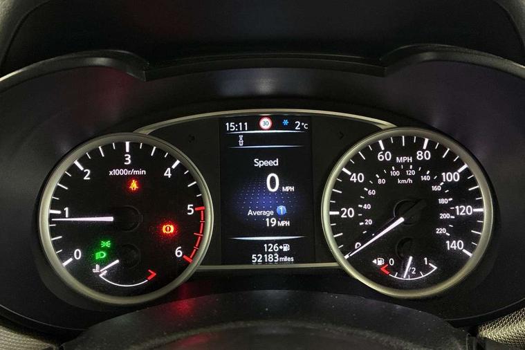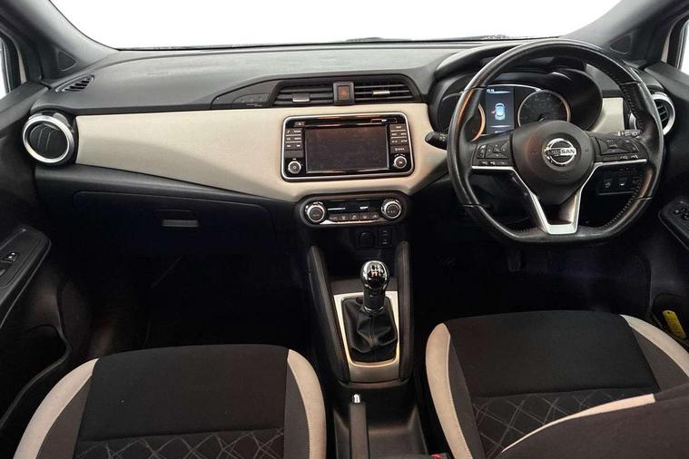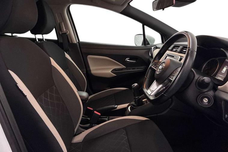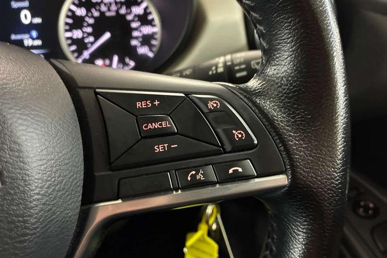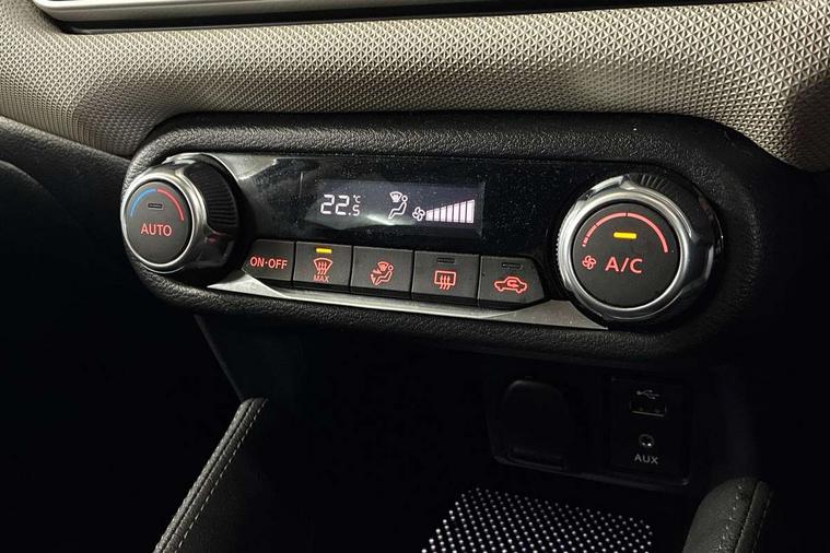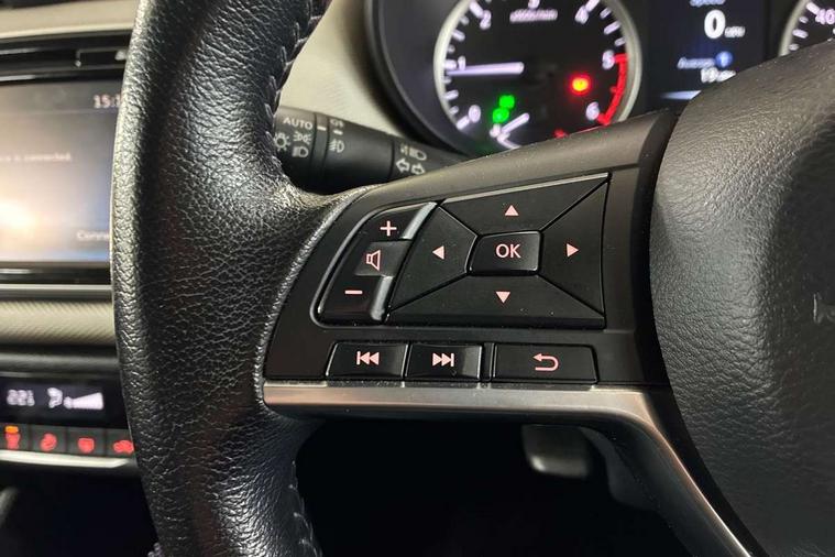 16" alloy wheels, Tyre repair kit, Anti-theft immobiliser, Remote central locking, 4 speakers, DAB Digital radio, MP3 player, Radio/single CD player, USB/iPod connection, ABS+EBD+Brake assist, Crash sensor, Driver/Front Passenger airbags, ESP + ASR traction control + CSV understeer control, Forward emergency braking, Front and rear curtain airbags, Front side airbags, Hill start assist, Passenger airbag deactivation system, Seatbelt warning, Three 3 point rear seatbelts, Tyre pressure monitoring system, Warning triangle and first aid kit, Automatic headlights with dusk sensor, Body coloured door handle inserts, Chrome door handles, Electric folding door mirrors, Electrically adjustable door mirrors, Front fog lights, Heated door mirrors, High beam assist, High mounted stop lamp, LED daytime running lights, LED indicators in door mirrors, Power front windows, Privacy glass, Rain sensor windscreen wipers, Rear roof spoiler, Rear wiper, 12V power point front, 2 height adjustable rear headrests, 3 cupholders, 60/40 split folding rear seat, Automatic air conditioning, Boot carpet, Boot light, Driver's seat manual height adjust, Driver/passenger sunvisors and vanity mirrors, Front and rear door pockets with bottle holders, Front console storage box, Gear shift indicator, Height adjustable front headrests, Height adjustable steering wheel, Isofix front passenger and rear seat preparation, Leather wrapped steering wheel, LED ambient lighting, Passenger seat back pocket, Satin silver air vents, Adjustable speed limiter, Bluetooth system, Cruise control, Driver information module, Lane departure warning system, Nissan connect sat nav system, Outside temperature gauge, Traffic sign recognition, Trip computer,