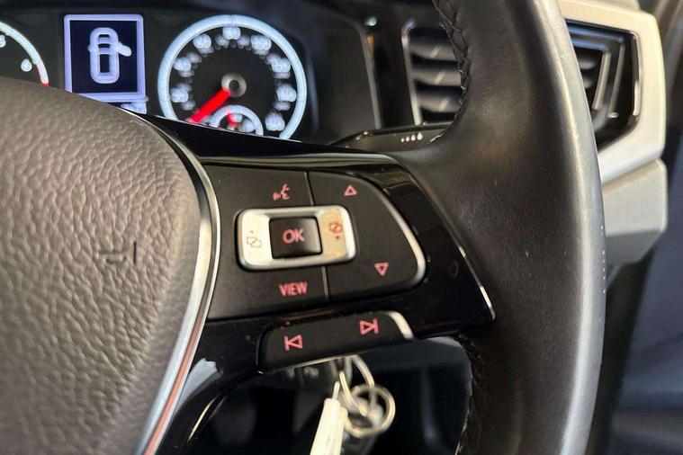 Cruise control + speed limiter, Digital clock, Driver alert system, Emergency call service, Multifunction computer plus, Power assisted speed sensitive steering, Speedo and rev counter, electronic odometer, trip, service interval display and fuel gauge, Start/stop system, Volkswagen connect, Warning buzzer and light for front seatbelts unfastened, Wireless app connect, Battery regeneration during braking, Galvanished body, Diversity antenna for FM reception, Front and rear 6 speakers, Black grille with chrome surround, Black radiator grille with chrome louvres, Body colour bumpers, Body colour door handles, Body colour rear spoiler, Body coloured side sills, Electric front windows, Electrically adjustable and heated door mirrors with reverse activated kerb view adjustment on passenger's side, Front windscreen washers and wipers with 4 speed intermittent delay, Heated rear window with auto timer, High level 3rd brake light, LED daytime running lights, LED rear number plate lights, Rear electric windows, Rear windscreen washer and wiper with interval delay, reverse activated, 2 bag hooks in luggage compartment, 2 front and 2 rear reading lights, 2 front cupholders and 12 V socket with cover, 3 rear head restraints, 4 grab handles, 60/40 split folding rear seat, Centre console storage with open storage compartment, Chrome interior door handles, Driver and front passenger seat height adjustment, Driver and front passenger sunvisors with illuminated vanity mirrors, Dust/pollen filter, Folding rear seat backrest, Front head restraints, Front seat backrest storage pockets, Gear lever gaiter in black trim surround, Glovebox, Handbrake grip button in chrome effect, Height/reach adjustable steering column, Instrument lighting, adjustable panel illumination, Interior light with delay, Isofix Preparation 2 Rear child seats, Leather gear knob and handbrake grip, Leather multifunction steering wheel, Luggage compartment cover, removable, Luggage compartment lighting, Luggage compartment with variable load floor, Storage compartment in front doors, Storage compartment in rear doors, Storage compartment under front seats, Sunglasses holder, 3 point height adj front seatbelts + pretensioners, 3x3 point rear seatbelts, ABS, Automatic post collision braking, Driver/front passenger airbag, Drivers and front passengers safety optimised head restraints, ESP with EDL + ASR, Front and rear passenger curtain airbags, Front disc brakes and rear drum brakes, Front passenger airbag deactivation, Front seat side impact airbags, Hill hold control, Hydraulic Brake Assist (HBA), Single tone horn, Tyre pressure monitoring system, Alarm with interior protection and deactivation via infotainment system, Electronic engine immobiliser, Remote central locking with 2 remote folding keys, Air vents in High gloss black, Limestone grey decorative inserts,