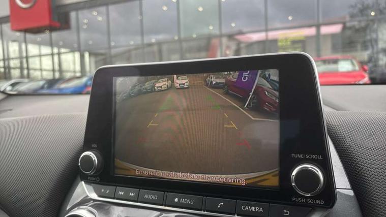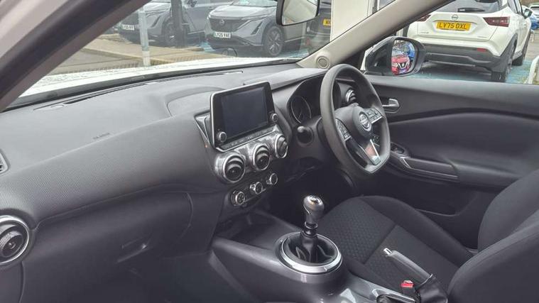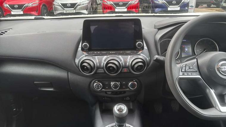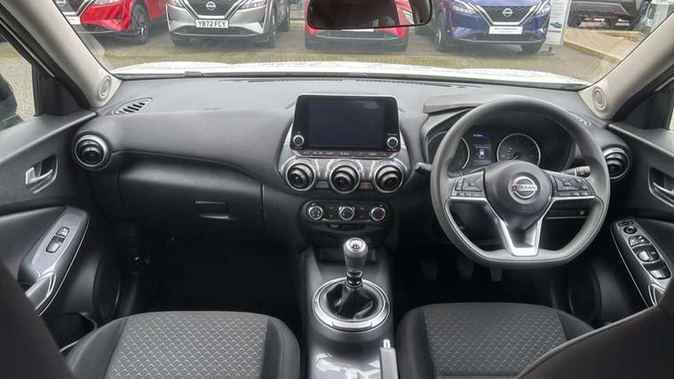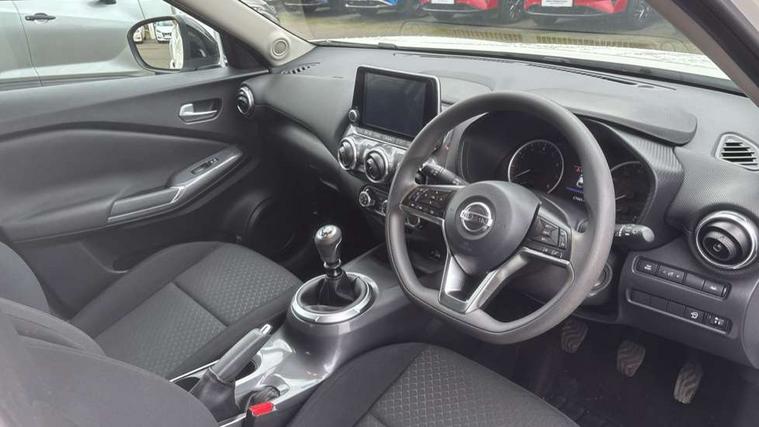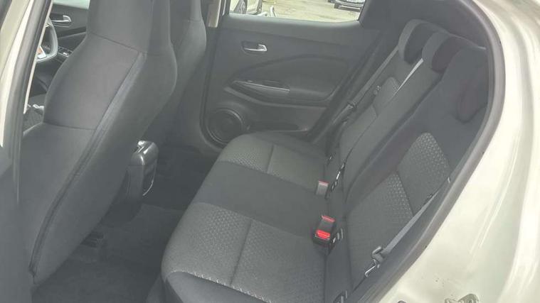 4.2" full colour TFT screen combimeter, Apple CarPlay and Google Android auto, Cruise control + speed limiter, eCall emergency call system, Emergency and breakdown call, Idle start/stop system, Intelligent lane intervention, Lane departure warning system, Nissan connect 8" touch screen entertainment system, Nissan connect services and Wifi connection, Outside temperature sensor, Power Steering, Rear view camera, Traffic sign recognition, Trip computer, Voice recognition, Gasoline particulate filter, 4 speakers, Bluetooth system, USB, Aux-in and 12V socket, DAB Digital radio, Automatic hazard signal with emergency stop signal, Body colour bumpers, Body colour door handles, Electrically adjustable door mirrors with integrated indicators, Follow me home headlights, Front and rear electric window with one touch driver window, High beam assist, LED daytime running lights, LED headlamps, LED rear fog lamp, LED rear lamps, Manual dimming interior rear view mirror, Pearl black door mirrors, Rear side wing doors, Rear wiper, Three blink turn signal, 3 height adjustable rear headrests, 3 seat bench in 2nd row, 60/40 split folding rear seat, Cloth upholstery, Driver and passenger sliding and reclining seats, Driver/passenger sunvisors and vanity mirrors, Front and rear cabin lights, Front door pockets with bottle holders, Front head restraints, Height adjustable driver's seat, Internal chrome door handles, Luggage space lighting, Monoform sporty seats, Multifunction steering wheel, Rear door bottle holders, Single front passenger seat, Telescopic steering wheel adjustment, Two cupholders in front centre console, Two rear isofix child seat anchorage points with top tether, Welcome light and console tray ambient lighting, ABS with EBD and brake assist, Active ride control, Active Trace Control, Driver and passenger airbags, Driver and passenger side airbags, Electronic Stability Programme (ESP), Front and rear curtain airbags, Height adjustable seatbelts, Hill start assist, Intelligent emergency braking with pedestrian and cyclist recognition, Rear door child safety locks, Rear drum brakes, Seatbelt reminder for driver/front passenger and rear seats, Single tone horn, Three 3 point rear seatbelts, Traction control, Tyre pressure monitoring system, VDC Dynamic Vehicle Control, Alarm, Immobiliser, Remote central locking, 17" Sakura Flex wheels,