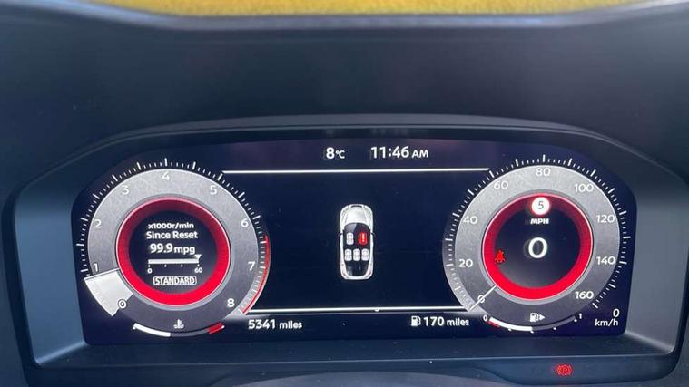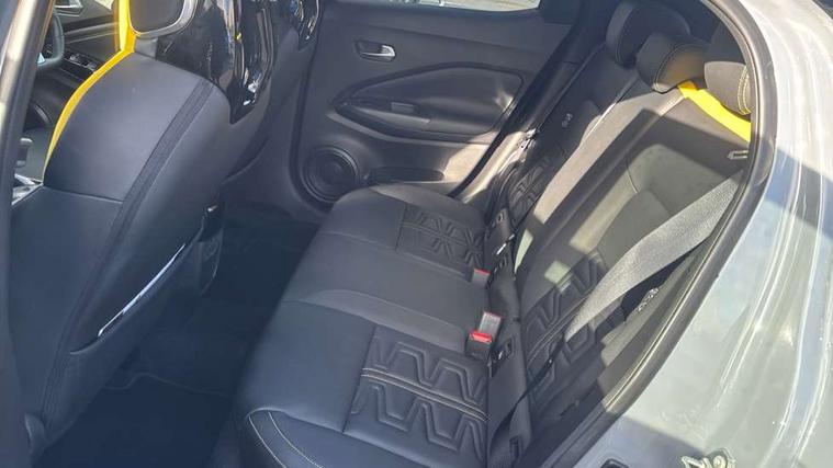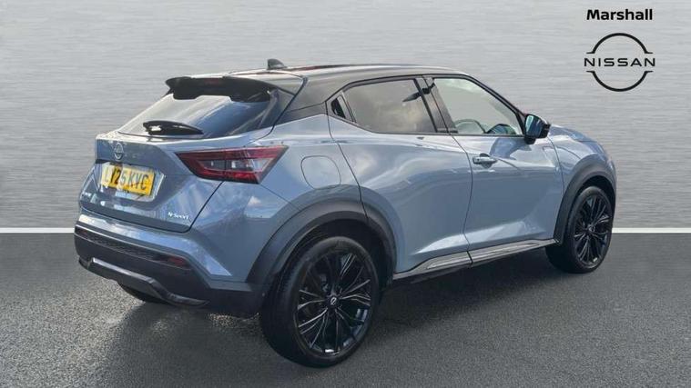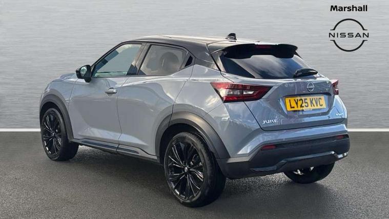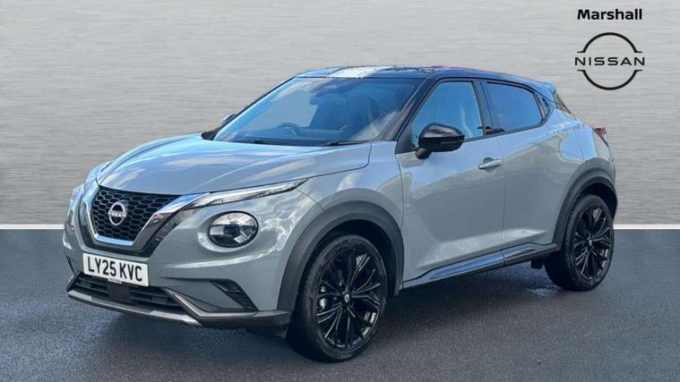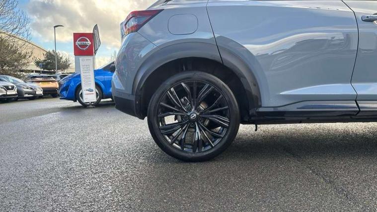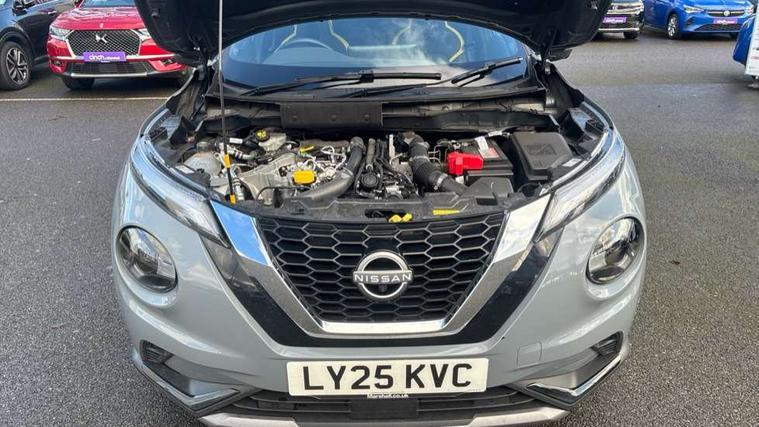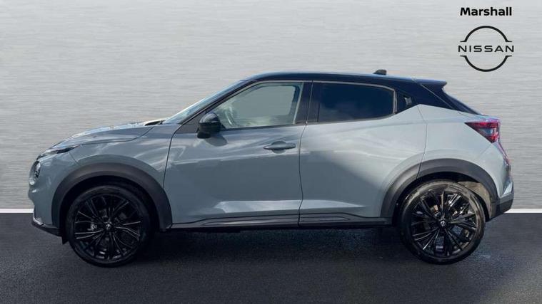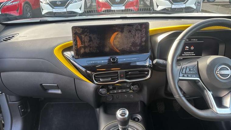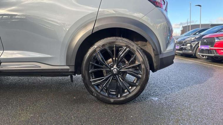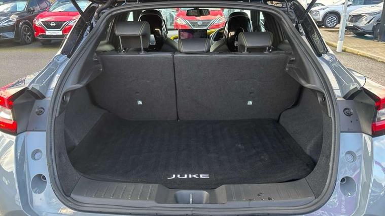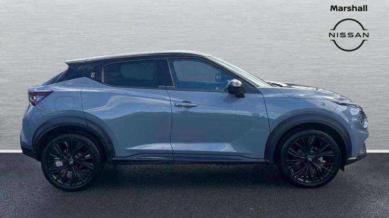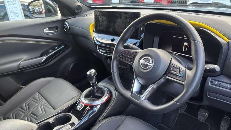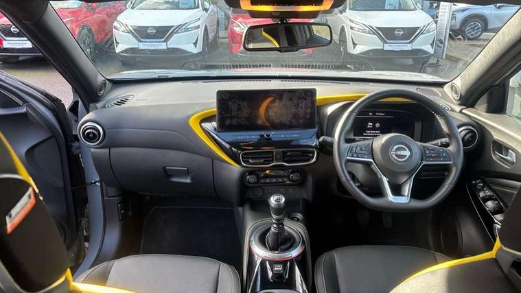 12.3" full colour TFT screen combimeter, Drive modes select (Eco, normal and sport), Emergency and breakdown call, Front parking sensor, Idle start/stop system, Intelligent driver alert system, Intelligent lane intervention, Lane departure warning system, Nissan connect 12.3" touch screen entertainment system, Nissan connect nav with TomTom traffic, Nissan connect services, Outside temperature sensor, Power Steering, Rear parking sensor, Stop/start button, Traffic sign recognition, Trip computer, Voice recognition, WiFi connectivity, Wireless Apple CarPlay and Google Android auto, Wireless Smartphone charger, 10 Bose speakers 6 speakers and 2 headrest speakers for driver/passenger seats, 2 X Rear console USB port, Bluetooth system, USB, Aux-in and 12V socket, Bose personal sound stage control, DAB Digital radio, Auto dimming frameless rear view mirror, Automatic hazard signal with emergency stop signal, Body colour door handles, Electrically adjustable door mirrors with integrated indicators, Follow me home headlights, Front and rear electric window with one touch driver window, Heated and auto folding door mirrors, High beam assist, LED 3rd brake light, LED daytime running lights, LED front fog lights, LED headlamps, LED rear fog lamp, LED rear lamps, One touch passenger window, Rain sensor windscreen wipers, Rear privacy glass, Rear side wing doors, Rear wiper, Roof spoiler, Shark fin roof antenna in solid Black, Three blink turn signal, 3 height adjustable rear headrests, 3 seat bench in 2nd row, 60/40 split folding rear seat, Automatic climate control, Card holder on driver sunvisor, Door ambient lighting, Driver seat back pocket, Driver side rear coat hanger, Driver/passenger sunvisors and vanity mirrors, Front and rear cabin lights, Front armrest, Front door pockets with bottle holders, Front head restraints, Front/rear passenger grab handles, Gear console ambient circle lighting, Height adjustable driver's seat, Internal chrome door handles, Leather gearshift knob, Luggage board, Luggage space lighting, Monoform sporty seats, Multifunction steering wheel, Passenger seat back pocket, Rear door bottle holders, Single front passenger seat, Smooth synthetic leather steering wheel, Synthetic leather kneepad, Telescopic steering wheel adjustment, Two cupholders in front centre console, Two rear isofix child seat anchorage points with top tether, Welcome light and console tray ambient lighting, Advanced safety shield pack - Juke Manual, Gloss black exterior personalisation pack - Juke, Heat pack with height adjustable passenger seats - Juke, Interior personalisation pack - Juke, ABS with EBD and brake assist, Active ride control, Active Trace Control, Driver and passenger airbags, Driver and passenger side airbags, Electric handbrake with auto hold function, Electronic Stability Programme (ESP), Front and rear curtain airbags, Height adjustable seatbelts, Hill start assist, Intelligent emergency braking with pedestrian and cyclist recognition, Rear door child safety locks, Seatbelt reminder for driver/front passenger and rear seats, Three 3 point rear seatbelts, Traction control, Tyre pressure monitoring system, VDC Dynamic Vehicle Control, Alarm, Immobiliser, Intelligent key and start push button with walk away lock and approach unlock functions, Remote central locking, 19" Akari Black alloy wheels, Tyre puncture repair kit,
