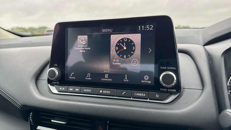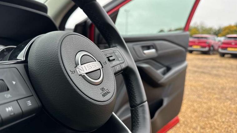 7" High definition full colour TFT screen combimeter, Android auto/Apple CarPlay (Wired), Blind spot warning, Drive modes (sport, normal, eco), Electric speed sensitive power steering, Emergency and breakdown call, Idle stop/start system, Intelligent Cruise control (ICC), Intelligent driver alert system, Intelligent forward collision warning, Intelligent lane intervention, Lane departure prevention, Lane departure warning system, Maximum speed limiter, Nissan connect 8" touchscreen infotainment system, Push button starter, Rear cross traffic alert, Rear parking sensors, Rear view camera, Traffic sign recognition with legal speed adjustment, Trip computer, 6 speakers, AM/FM audio system with DAB, Bluetooth audio streaming, Front USB connections (Type-A and Type-C), Auto dimming rear view mirror, Auto rear wiper when reversing, Automatic hazard signal with emergency stop signal, Body colour mirror caps, Body coloured door handles, Bodyside mouldings, Chrome side window finisher, Door handle with button, Electric auto folding door mirrors, Electrically adjustable and heated door mirrors with LED turn indicator, Follow me home headlights, High beam assist, Intelligent auto headlights, LED daytime running lights, LED Headlights, LED rear lights, One touch front and rear electric windows with remote opening and closing, Partially body coloured bumpers, Rear reversing light (bulb lighting), Rear roof spoiler, Rear side wing doors, Shark fin antenna, Splash free rain sensing wipers, Three blink turn signal, 12v power socket in dashboard and luggage, 2x Rear coat hooks, 3 bench rear seats in 2nd row, 3 rear headrests, 4 folding assist grip, 6-way manually adjustable driver's seat, 60/40 split folding rear seat bench, Centre console storage tray, Chrome interior door handles, Cloth monoform upholstery, Driver and front passenger sunvisors with illuminated vanity mirrors, Driver seat back pocket, Dual zone automatic climate control with pollen filter, Electrically adjustable lumbar support for driver, Front and rear door storage, Front centre console and armrest, Front cupholders x 2, Front door with bottle holders, Glovebox with light, Hard trunk cover, Height adjustable driver's seat, Height adjustable front headrests, Height adjustable passenger seat, Leather steering wheel, Luggage space lighting, Manually adjustable passenger (slide recline + lifter), Multifunction steering wheel, Passenger seat back pocket, Rear armrest with 2 cupholders, Rear door bottle holders, Single front passenger seat, Steering wheel gearshift paddles, Steering wheel switches, Sunglasses holder, Tilt/telescopic adjustable steering wheel, Two rear isofix child seat anchorage points with top tether, 3x3 point rear seatbelt pretensioners + load limiters, ABS with EBD and brake assist, Active brake limited slip, Auto hold function, Child locks on rear doors, Curtain and front side, far side airbags, Driver and passenger airbags, Driver, passenger and 2nd row rear seat belt reminder, Electronic parking brake, Front seatbelt pretensioners + load limiters, Height adjustable front seatbelts, Hill start assist, Intelligent blind spot intervention, Intelligent front emergency braking with pedestrian, cyclist recognition and junction assist, Intelligent rear automatic braking, Tyre pressure monitoring system, Vehicle dynamic control, Capless fuel filler, Engine immobiliser, Intelligent Key, Remote central door locking with deadlocking, Thatcham Cat.1 alarm, Interior instrumental panel A finisher, 17" Alloy wheels, Tyre puncture repair kit,