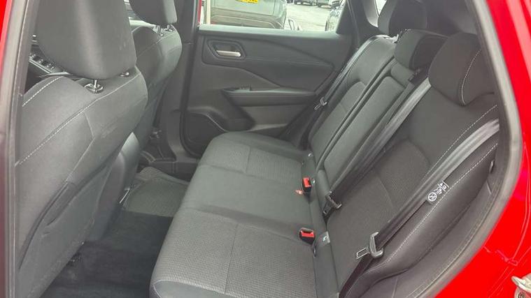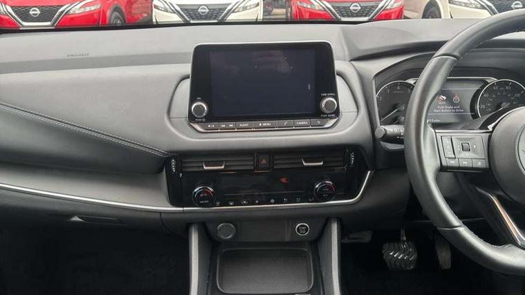 7" High definition full colour TFT screen combimeter, Android auto/Apple CarPlay (Wired), Blind spot warning, Drive modes (sport, normal, eco), Electric speed sensitive power steering, Emergency and breakdown call, Idle stop/start system, Intelligent Cruise control (ICC), Intelligent driver alert system, Intelligent forward collision warning, Intelligent lane intervention, Lane departure prevention, Lane departure warning system, Maximum speed limiter, Nissan connect 8" touchscreen infotainment system, Push button starter, Rear cross traffic alert, Rear parking sensors, Rear view camera, Traffic sign recognition with legal speed adjustment, Trip computer, 6 speakers, AM/FM audio system with DAB, Bluetooth audio streaming, Front USB connections (Type-A and Type-C), Auto dimming rear view mirror, Auto rear wiper when reversing, Automatic hazard signal with emergency stop signal, Body colour mirror caps, Body coloured door handles, Bodyside mouldings, Chrome side window finisher, Door handle with button, Electric auto folding door mirrors, Electrically adjustable and heated door mirrors with LED turn indicator, Follow me home headlights, High beam assist, Intelligent auto headlights, LED daytime running lights, LED Headlights, LED rear lights, One touch front and rear electric windows with remote opening and closing, Partially body coloured bumpers, Rear reversing light (bulb lighting), Rear roof spoiler, Rear side wing doors, Shark fin antenna, Splash free rain sensing wipers, Three blink turn signal, 12v power socket in dashboard and luggage, 2x Rear coat hooks, 3 bench rear seats in 2nd row, 3 rear headrests, 4 folding assist grip, 6-way manually adjustable driver's seat, 60/40 split folding rear seat bench, Centre console storage tray, Chrome interior door handles, Cloth monoform upholstery, Driver and front passenger sunvisors with illuminated vanity mirrors, Driver seat back pocket, Dual zone automatic climate control with pollen filter, Electrically adjustable lumbar support for driver, Front and rear door storage, Front centre console and armrest, Front cupholders x 2, Front door with bottle holders, Glovebox with light, Hard trunk cover, Height adjustable driver's seat, Height adjustable front headrests, Height adjustable passenger seat, Leather steering wheel, Luggage space lighting, Manually adjustable passenger (slide recline + lifter), Multifunction steering wheel, Passenger seat back pocket, Rear armrest with 2 cupholders, Rear door bottle holders, Single front passenger seat, Steering wheel gearshift paddles, Steering wheel switches, Sunglasses holder, Tilt/telescopic adjustable steering wheel, Two rear isofix child seat anchorage points with top tether, 3x3 point rear seatbelt pretensioners + load limiters, ABS with EBD and brake assist, Active brake limited slip, Auto hold function, Child locks on rear doors, Curtain and front side, far side airbags, Driver and passenger airbags, Driver, passenger and 2nd row rear seat belt reminder, Electronic parking brake, Front seatbelt pretensioners + load limiters, Height adjustable front seatbelts, Hill start assist, Intelligent blind spot intervention, Intelligent front emergency braking with pedestrian, cyclist recognition and junction assist, Intelligent rear automatic braking, Tyre pressure monitoring system, Vehicle dynamic control, Capless fuel filler, Engine immobiliser, Intelligent Key, Remote central door locking with deadlocking, Thatcham Cat.1 alarm, Interior instrumental panel A finisher, 17" Alloy wheels, Tyre puncture repair kit,