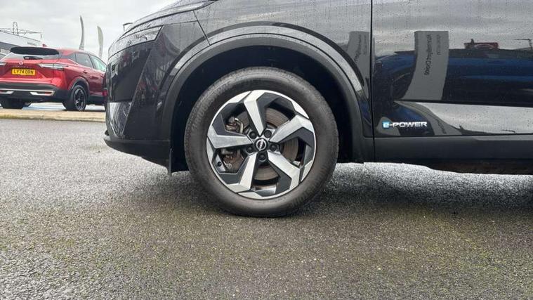 Android auto/Apple CarPlay (Wired), Blind spot warning, Drive modes (sport, normal, eco), Electric speed sensitive power steering, Emergency and breakdown call, Front and rear parking sensors, Full Digital 12.3" TFT Digital Combimeter, Google maps services - search, weather, 3D maps and Google street view, Idle stop/start system, Intelligent around view monitor, Intelligent Cruise control (ICC), Intelligent driver alert system, Intelligent forward collision warning, Intelligent lane intervention, Lane departure prevention, Lane departure warning system, Maximum speed limiter, Moving object detection, Nissan connect 12.3 inch touchscreen infotainment system, Nissan connect navigation, Push button starter, Rear cross traffic alert, Rear view camera, Remote control services - door locks, lights, horn and car locator, Telematics - notifications and connectivity services, TomTom live traffic services, Traffic sign recognition with legal speed adjustment, Trip computer, Virtual personal assistant and firmware over the air capability, Wireless apple carplay, 6 speakers, AM/FM audio system with DAB, Bluetooth audio streaming, Front USB connections (Type-A and Type-C), Rear USB charging only ports (Type-A and Type-C), Auto dimming rear view mirror, Auto rear wiper when reversing, Automatic hazard signal with emergency stop signal, Body colour mirror caps, Body coloured door handles, Bodyside mouldings, Chrome side window finisher, Door handle with button, e-POWER badging, Electric auto folding door mirrors, Electrically adjustable and heated door mirrors with LED turn indicator, Follow me home headlights, High beam assist, Intelligent auto headlights, LED daytime running lights, LED Headlights, LED rear lights, One touch front and rear electric windows with remote opening and closing, Partially body coloured bumpers, Privacy glass, Rear bumper with graphite insert, Rear reversing light (bulb lighting), Rear roof spoiler, Rear side wing doors, Rear styling plate, Shark fin antenna, Splash free rain sensing wipers, Super UV and infrared cut glass, Three blink turn signal, 12v power socket in dashboard and luggage, 2x Rear coat hooks, 3 bench rear seats in 2nd row, 3 rear headrests, 4 folding assist grip, 6-way manually adjustable driver's seat, 60/40 split folding rear seat bench, Ambient lighting around centre console, Centre console storage tray, Chrome interior door handles, Cloth monoform upholstery, Driver and front passenger sunvisors with illuminated vanity mirrors, Driver seat back pocket, Dual zone automatic climate control with pollen filter, e-POWER shifter, Front and rear door storage, Front centre console and armrest, Front cupholders x 2, Front door with bottle holders, Glovebox with light, Hard trunk cover, Height adjustable driver's seat, Height adjustable front headrests, Height adjustable passenger seat, Leather steering wheel, Luggage board system, Luggage space lighting, Manually adjustable passenger (slide recline + lifter), Multifunction steering wheel, Passenger seat back pocket, Rear armrest with 2 cupholders, Rear door bottle holders, Single front passenger seat, Soft PVC kneepad, Steering wheel switches, Sunglasses holder, Tilt/telescopic adjustable steering wheel, Two rear isofix child seat anchorage points with top tether, Welcome light and console tray ambient lighting, 3x3 point rear seatbelt pretensioners + load limiters, ABS with EBD and brake assist, Active brake limited slip, Auto hold function, Child locks on rear doors, Curtain and front side, far side airbags, Driver and passenger airbags, Driver, passenger and 2nd row rear seat belt reminder, Electronic parking brake, Front seatbelt pretensioners + load limiters, Height adjustable front seatbelts, Hill start assist, Intelligent blind spot intervention, Intelligent front emergency braking with pedestrian, cyclist recognition and junction assist, Intelligent rear automatic braking, Tyre pressure monitoring system, Vehicle dynamic control, Capless fuel filler, Engine immobiliser, Intelligent Key, Remote central door locking with deadlocking, Thatcham Cat.1 alarm, Interior instrumental panel B finisher, 18" Diamond cut alloy wheels, Tyre puncture repair kit,