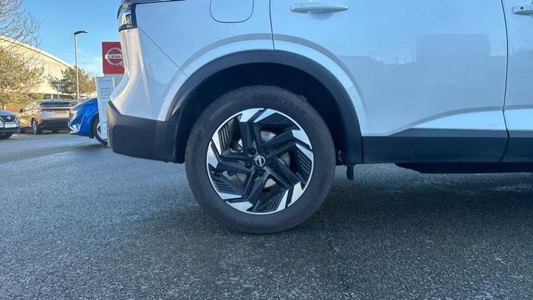 2 front USB-C ports, 2 rear USB-C ports, 360 degree Intelligent around view monitor with moving object detection, Blind spot warning, Drive assist, Drive assist custom mode, Drive modes (sport, normal, eco), Driver drowsiness and attention warning, Electric speed sensitive power steering, Emergency and breakdown call, Emergency lane keep assist, Emergency Stop Signal (ESS), Engine start/stop button, Event data recorder, Front and rear parking sensors, Full Digital 12.3" TFT Digital Combimeter, Google virtual personal assistance, Idle stop/start system, In-car WIFI hotspot, Intelligent Cruise control (ICC), Intelligent driver alert system, Intelligent forward collision warning, Intelligent lane intervention, Intelligent speed assist, Lane departure warning system, Maximum speed limiter, Nissan connect 12.3 inch touchscreen infotainment system, Nissan connect navigation with google maps, Nissan connect services 2.0 (Google Automotive System), Outside temperature sensor, Rear cross traffic alert, Remote control services - door locks, lights, horn and car locator, Reversing detection, Traffic sign recognition with legal speed adjustment, Trip computer, Wireless Apple CarPlay/Android Auto, Wireless charging pad, Limited slip differential, 6 speakers, AM/FM audio system with DAB, Bluetooth audio streaming, Auto dimming frameless rear view mirror, Auto rear wiper when reversing, Body colour mirror caps, Body coloured door handles, Bodyside mouldings, Chrome side window finisher, Electric auto folding door mirrors, Electrically adjustable and heated door mirrors with LED turn indicator, Follow me home headlights, High beam assist, Intelligent auto headlights, LED 3rd brake light, LED daytime running lights, LED Headlights, LED rear lights, One touch front and rear electric windows with remote opening and closing, One touch passenger window, Partially body coloured bumpers, Rain sensing wipers, Rear privacy glass, Rear roof spoiler, Rear side wing doors, Rear styling plate, Shark fin antenna, Silver roof rails, Splash free rain sensing wipers, Super UV and infrared cut glass, Three blink turn signal, 12v power socket in dashboard and luggage, 3 bench rear seats in 2nd row, 3 rear headrests, 60/40 split folding rear seat bench, Chrome interior door handles, Cloth upholstery, Driver and passenger sunvisors with illuminated vanity mirrors, Driver seat back pocket, Dual zone automatic climate control with pollen filter, Electrically adjustable lumbar support for driver, Front centre console and armrest, Front cupholders, Front door with bottle holders, Height adjustable driver seat, Height adjustable front headrests, Height adjustable passenger seat, Leather shift knob, Luggage board system, Luggage space lighting, Multifunction steering wheel, Passenger seat back pocket, Rear door bottle holders, Rear seat armrest with 2 cupholders, RGB ambient light (Full area coverage), Single front passenger seat, Smooth leather steering wheel, Tilt/telescopic adjustable steering wheel, Two rear isofix child seat anchorage points with top tether, 3x3 point rear seatbelt pretensioners + load limiters, ABS with EBD and brake assist, Autonomous emergency braking, Child locks on rear doors, Curtain and front side, far side airbags, Driver and passenger airbags, Driver, passenger and 2nd row rear seat belt reminder, Electric handbrake with auto hold function, Front seatbelt pretensioners + load limiters, Height adjustable front seatbelts, Hill start assist, Intelligent blind spot intervention, intelligent front emergency braking, Intelligent rear automatic braking, Tyre pressure monitoring system, Vehicle dynamic control, Engine immobiliser, Intelligent key with walk away lock and approach unlock functions, Remote central door locking with deadlocking, Thatcham alarm, 18" Diamond cut alloy wheels, Tyre puncture repair kit,
