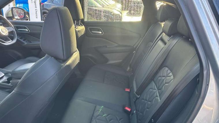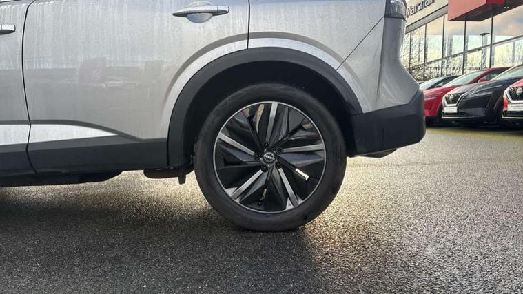 2 front USB-C ports, 2 rear USB-C ports, 360 degree Intelligent around view monitor with moving object detection, Advanced windscreen head up display, Blind spot warning, Drive assist, Drive assist custom mode, Drive modes (sport, normal, eco), Driver drowsiness and attention warning, Electric speed sensitive power steering, Emergency and breakdown call, Emergency lane keep assist, Emergency Stop Signal (ESS), Engine start/stop button, Event data recorder, Front and rear parking sensors, Full Digital 12.3" TFT Digital Combimeter, Google virtual personal assistance, Hands free power tailgate, Idle stop/start system, In-car WIFI hotspot, Intelligent Cruise control (ICC), Intelligent driver alert system, Intelligent forward collision warning, Intelligent lane intervention, Intelligent speed assist, Lane departure warning system, Nissan connect 12.3 inch touchscreen infotainment system, Nissan connect navigation with google maps, Nissan connect services 2.0 (Google Automotive System), Outside temperature sensor, Rear cross traffic alert, Remote control services - door locks, lights, horn and car locator, Reversing detection, Traffic sign recognition with legal speed adjustment, Trip computer, Wireless Apple CarPlay/Android Auto, Wireless charging pad, Limited slip differential, 6 speakers, AM/FM audio system with DAB, Bluetooth audio streaming, Auto dimming frameless rear view mirror, Auto rear wiper when reversing, Body colour mirror caps, Body coloured door handles, Bodyside mouldings, Chrome side window finisher, Electric auto folding door mirrors, Electrically adjustable and heated door mirrors with LED turn indicator, Follow me home headlights, High beam assist, Intelligent auto headlights, LED 3rd brake light, LED daytime running lights, LED headlights with adaptive driving beam, LED rear lights, LED sequential turn lights, One touch front and rear electric windows with remote opening and closing, One touch passenger window, Partially body coloured bumpers, Rain sensing wipers, Rear privacy glass, Rear roof spoiler, Rear side wing doors, Rear styling plate, Reverse tilting door mirrors, Shark fin antenna, Silver roof rails, Splash free rain sensing wipers, Super RED rear LED lights, Super UV and infrared cut glass, Thermaclear heated windscreen, 12v power socket in dashboard and luggage, 3 bench rear seats in 2nd row, 3 rear headrests, 60/40 split folding rear seat bench, Chrome interior door handles, Dark headlining, Driver and passenger sunvisors with illuminated vanity mirrors, Driver seat back pocket, Dual zone automatic climate control with pollen filter, Electrically adjustable driver seat, Electrically adjustable lumbar support for driver, Fixed Glass roof with electric sunshade, Front centre console and armrest, Front cupholders, Front door with bottle holders, Heated front seats, Heated steering wheel, Height adjustable front headrests, Height adjustable passenger seat, Leather shift knob, Luggage board system, Luggage space lighting, Manual adjustable lumbar support for passenger, Multifunction steering wheel, Passenger seat back pocket, Quilted/PVC upholstery, Rear door bottle holders, Rear seat armrest with 2 cupholders, RGB ambient light (Full area coverage), Single front passenger seat, Smooth leather steering wheel, Tilt/telescopic adjustable steering wheel, Two rear isofix child seat anchorage points with top tether, 3x3 point rear seatbelt pretensioners + load limiters, ABS with EBD and brake assist, Autonomous emergency braking, Child locks on rear doors, Curtain and front side, far side airbags, Driver and passenger airbags, Driver, passenger and 2nd row rear seat belt reminder, Electric handbrake with auto hold function, Front seatbelt pretensioners + load limiters, Height adjustable front seatbelts, Hill start assist, Intelligent blind spot intervention, intelligent front emergency braking, Intelligent rear automatic braking, Tyre pressure monitoring system, Vehicle dynamic control, Engine immobiliser, Intelligent key with walk away lock and approach unlock functions, Remote central door locking with deadlocking, Thatcham alarm, 19" Diamond cut alloy wheels, Tyre puncture repair kit,