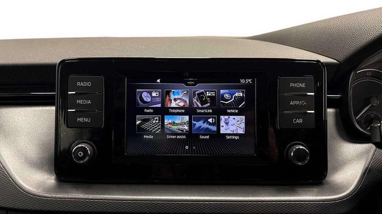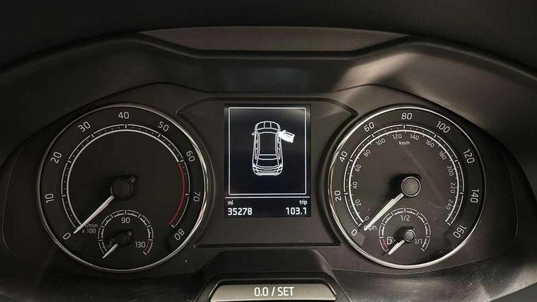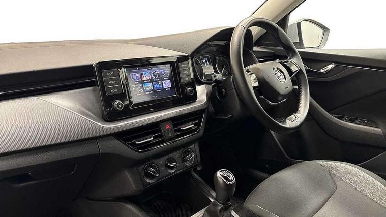 Bluetooth system, E-call, Front assist system, Lane assist, PAS, Service indicator, Speed limiter, Trip computer, 2 USB - C ports with 1x adaptor cable, 4 speakers, Auxiliary input socket, DAB Digital radio, Basic LED headlights with LED daytime running lights, Black roof rails, Body colour door mirrors and handles, Chrome grille surround, Electrically adjustable and heated door mirrors, Front and rear electric windows, Headlight range control, Heated rear window, LED rear lights - low functionality, Rear fog lights, Rear wiper, 12V Accessory socket in centre console, 2 spoke leather steering wheel and gear shift, Chrome inner door handles, Cloth upholstery, Front head restraints, Glove compartment, Height adjustable driver seat, Ice scraper, Isofix child seat fittings on outer rear seats, ISOFIX on front passenger seat, Manual air conditioning + Pollen filter, Rake/reach adjustable steering wheel, Textile floor mats, Third rear headrest, Top tether for front passenger seat, 3x3 point rear seatbelts, Airbags - driver and front passenger, ESP, Front passenger airbag deactivation switch, Front side airbags with curtain airbags, Hill hold control, Manual parking brake, One tone horn, Rear disc brakes, Seatbelt reminder for driver an co-driver, Traction control, Tyre pressure monitor, Alarm with interior monitoring, back up horn and tilt sensor with safe function and towing protection, Anti-theft wheel bolts, Immobiliser, Remote central locking with SAFE system, Grained black decorative insert with glossy black hot stamping,