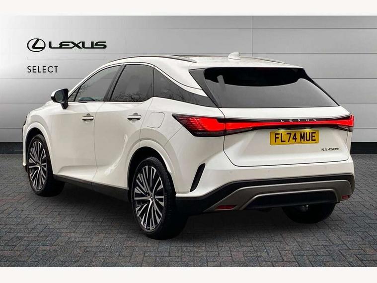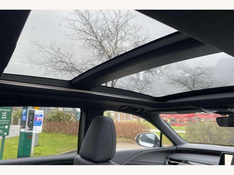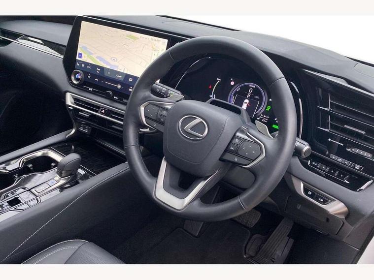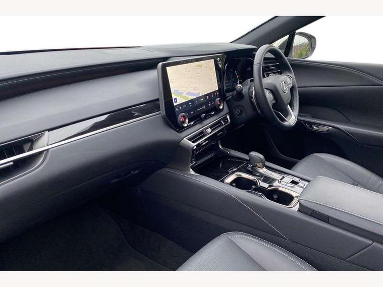 360 degree panoramic view monitor, Bluetooth mobile phone connectivity, BSM - Blind spot monitoring, Drive mode selector, Driver monitoring system, E-call, Head up Display, Intelligent clearance sonar, Lexus link connected services including over the air updates, MM21 Lexus link pro - 14" HD touchscreen with embedded and cloud based navigation, voice assistant, connected services, over the air and always online, Push button starter, Rear cross traffic alert, Speed sensitive electric power assisted steering, Ultrasonic parking sensors, Wireless Apple CarPlay and wired Android Auto, Wireless Smartphone charger, 3 pin to Type 2 10A charging cable, 6.6 kW onboard charger, E-Four Automatic transmission, Type 2 AC charging, Type 2 mode 3 32A charging cable, Vehicle Stability Control (VSC), 12 speakers audio, 5 USB ports (3 front USB C and 2 rear USB C), DAB Digital radio, 3 projector bi-beam LED headlight with auto high beam, Auto dimming rear view mirror, Auto headlights, Front and rear one touch power windows with voice command, Front and rear silver window frame mouldings, Glove and towel set, Headlight washers, Heated, auto-folding door mirrors, auto dimming with rerverse tilt, turn indicators and panoramic view sensors, L-shaped rear light bar, LED brake lights and rear lights with emergency brake signal, LED cornering headlights, LED daytime running lights, LED front and rear fog lights, LED Indicators, Power back door with kick sensor, Privacy UV glass, rear doors and tailgate, Rain sensor windscreen wipers, Rear side wing doors, Rear wash/wipe, Roof rails, Variable front intermittent wipers, 12V accessory port centre console and luggage compartment, 2 cup holders in centre console, 2 way electric lumbar support for driver and front passenger, 2 x Sunvisors with vanity mirror and lamp, 3 rear headrests, 3 seat bench in 2nd row, 40:20:40 split folding rear seats, 64 colour LED ambient interior illumination with 14 pre-set themed colour tones, 8 way electrically adjustable front seats, Charge cable bag, Driver seat memory function, Easy access driver seat, Easy access steering wheel, Front aluminium scuff plates, Front headrests, Front tray in front of centre console, Glovebox, Heated and ventilated front seats, Heated steering wheel, Leather steering wheel, Lever type shft control, Manually adjustable rear seats, Power adjustable steering wheel, Rear resin scuff plates, Single front passenger seat, Smooth leather upholstery, Textile carpet mats, Three zone climate control air conditioning system, Two way opening centre armrest with storage, 2 x Isofix child rear seat restraints, 3 point ELR front and rear seatbelts with pretensioners, ABS, Curtain shield airbags (front and rear), Driver and front passenger 2 stage airbag, Driver/front passenger side airbags, Drivers knee airbag, E-Latch with safe exit assist, EBD + Brake Assist, Electronic parking brake, Electronically controlled braking, Extended lexus safety system+ 3 - lane change assist, front cross traffic assist, Front and rear left/right force limiters and tension reducers, Front and rear left/right seatbelt reminders, Front centre airbag, Hill assist control, Lexus safety system+ 3 - dynamic radar cruise control, pre collision system day and night, lane tracing assist, road sign, Manual child lock in rear doors, Passenger airbag cut-off device, Traction control, Tyre pressure warning, 2 x remote key fobs, Customisable auto door lock, Locking wheel nuts, Motion sensor key, Smart keyless entry, Thatcham category 1 alarm + immobiliser, VIN etching, Black Inlay, 21" Alloy wheels,