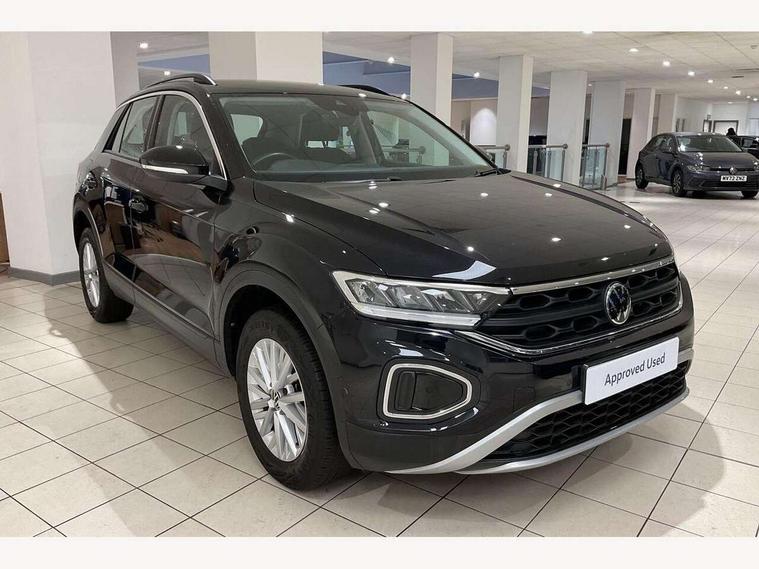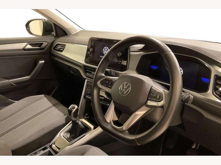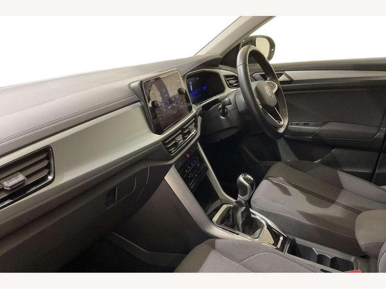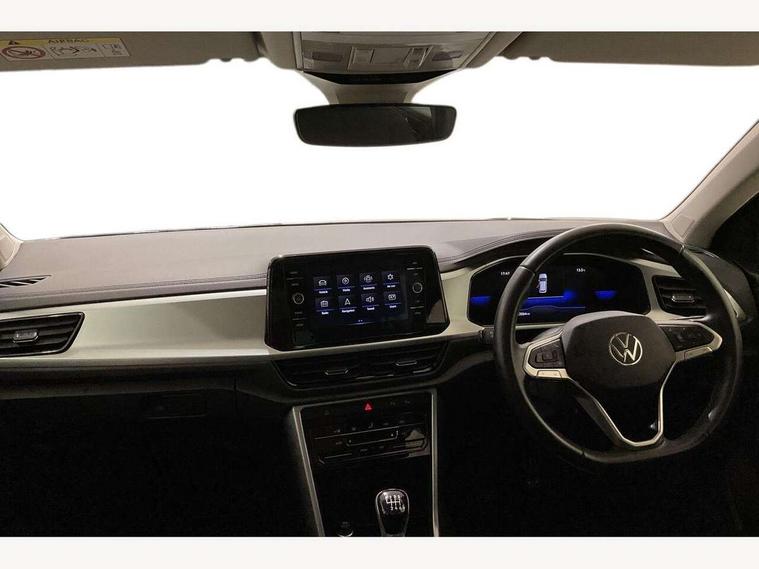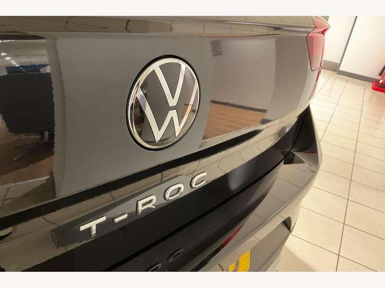 Bluetooth mobile phone interface, Driver alert system with fatigue detection, Driver tips and journey analysis, Emergency call service, Lane keeping system Lane Assist, Modified key software - reduce switch off time for key status change to Long no motion, Online services, Park assist including front and rear parking sensors, Power assisted speed sensitive steering, Service interval indicator, Tailgate/trunk lid release from outside, Think blue trainer driver tips and journey analysis, Warning sound and light for front seatbelts unfastened, Wireless app connect, Battery regeneration during braking, Front shock absorption, Rear shock absorption chassis with increased ride height, Start/stop function with battery regeneration, DAB Digital radio, Diversity antenna for FM reception, Front and rear 6 speakers, Music playback - MP3, WMA and AAC files, Premium USB cable in choice of either Apple or Android smartphone compatibility, SD card slot, Simultaneous pairing of 2 compatible mobile devices, Title and cover art display, We Connect and We Connect Plus functionality, 3rd brake light, Auto dimming interior rear view mirror, Automatic hazard lights activation under emergency braking, Automatic headlight control with LED separate daytime running lights with coming/leaving home function, Black roof rails, Body coloured bumpers and radiator grille with chrome trim and front fog lamps with chrome bezel, Body coloured exterior mirror housings and door handles, Extended roof spoiler, Exterior mirrors aspherical on driver side, convex on front passenger side, External USB type C socket and charging sockets, Front windscreen wiper with intermittent wipe and 4 position delay, Heated rear window, LED Headlights, LED rear combination lamps, LED rear number plate lights, LED tail lamp rear comination lamps, Power windows with comfort operation and circuit breaker, Rain sensor, Rear exhaust tailpipe, Rear fog light on one side and reversing lights on both sides, Rear side wing doors, Rear wash/wipe with intermittent wipe setting, Remote electrically foldable door mirrors, puddle lights and reverse activated passenger's door mirror, 12V power socket in centre console, 3 rear head restraints, 3 seat bench in 2nd row, 4 load lashing points in luggage compartment, Air care climatronic air conditoning system with active combination filter and 2-zone temperature control, Ambient lighting with mirror logo projection, Cloth upholstery, Door and side trim panel in cloth, Drawer under drivers seat, Driver/front passenger seat height adjustment, Front centre armrest, Front comfort sports seats, Front cupholders x 2, Front reading light, Instrument lighting, white adjustable panel illumination, Interior light delay, Isofix child seat preparation, Leather gearshift handle, Load-through provision with cup holder when folded down ('Unsplit rear seat bench, split folding backrest, with centre armrest), Luggage compartment lighting, Lumbar support for driver's and front passengers seat, Non-folding front passenger seat backrest, Single front passenger seat, Storage compartment in left and right luggage area, Storage compartment in rear doors, Storage compartments in driver and front passenger doors, Sunvisors with illuminated vanity mirrors, Variable boot floor, height adjustable and removable, Driver assistance pack without proactive passenger protection - T-Roc, 3 point height adj front seatbelts + pretensioners, 3 point seatbelts in outer rear with ECE label, ABS, Child locks on rear doors, Driver and front passenger airbag with front passenger airbag deactivation, Driver and front passenger safety-optimised head restraints, Drivers seatbelt reminder, Electronic parking brake, Electronic Stability Control (ESC) inc EDL (Electronic Differential Lock) and ASR (Traction Control), Front and rear passengers curtain airbag system including front side airbags, Front assist with city emergency braking and pedestrian monitoring, Front disc brakes, Front seat side impact airbags, Hill start assist, Predictive pedestrian protection, Rear disc brakes, Single tone horn, Tyre pressure loss indicator, Volkswagen roadside assistance, Alarm with interior protection, Anti-theft alarm system with interior monitoring, backup horn, and towing protection, Remote central locking with SAFELOCK, radio remote control with 2 remote control folding keys, Pewter matt decorative inserts for intrument panel, centre console and door panels at the front, Trims for alloy wheels,