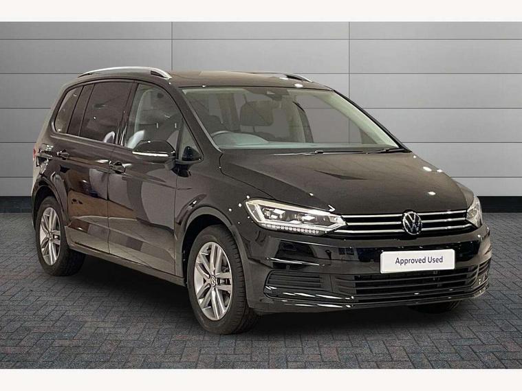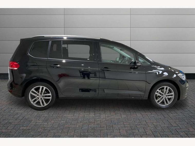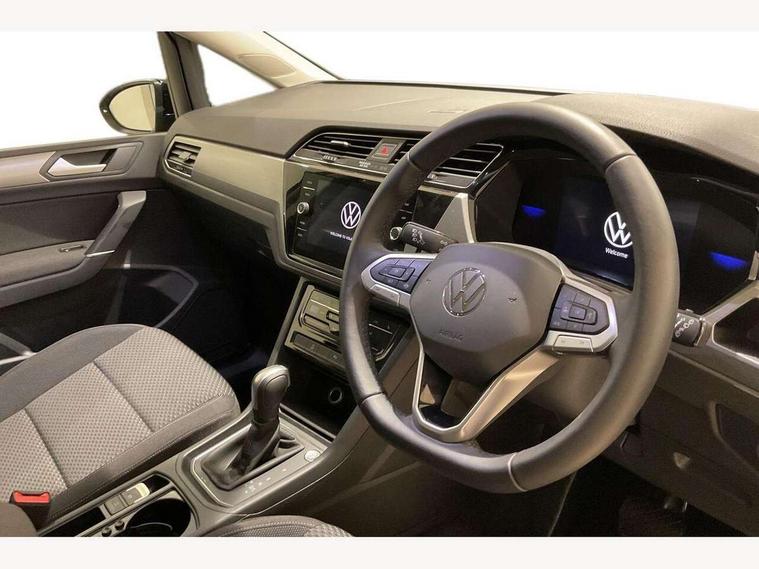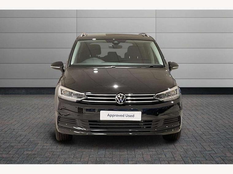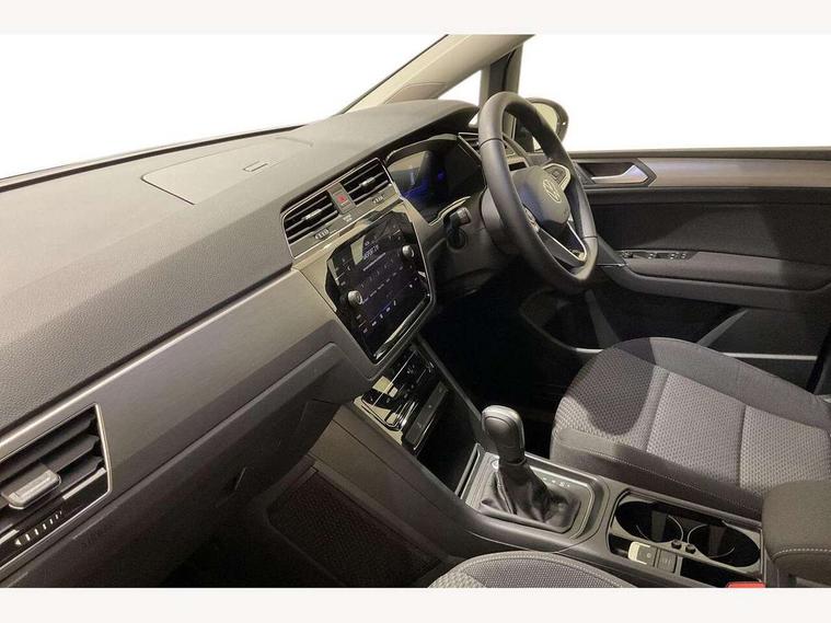 Adaptive cruise control, Audible lights on warning, Discover media navigation touchscreen navigation/radio system with streaming and internet, Driver alert system, Driver profile selection, Dynamic road sign display, Electric tailgate, Electronic odometer, Emergency services call system, Extended, crash-active and proactive Pedestrian and cyclist monitoring, External temperature gauge, Front parking sensors, Lane change system side assist and rear traffic alert, Lane keep assist, Misfuelling protection device, Mobile pairing with SMS function, Mobile phone interface with inductive charging, Rear view camera displayed via vehicles audio system display, Rev counter with fuel gauge, Side scan, Speed limiter, Speed sensitive power steering, Stop/start system, Think blue trainer driver tips and journey analysis, Trip and service interval display, We connect' and 'We connect plus' functionality, Petrol Particulate Filter, Rear stabiliser bar, XDS electronic differential lock, 4x20 watt output, 8 Speakers, Audio Connectivity System, DAB Digital radio, External USB-C data socket with increased charging performance - 2 USB sockets 45W, MP3/WMA compatability, SD card slot, Title and cover art display, USB connection, Aerial integrated into side window, Auto dimming door mirrors, on driver side, surround lighting and front passenger side mirror lowering function, Auto dimming rear view mirror, Automatic coming/leaving home lighting function, Body colour bumpers, Body colour door handles, Body colour door mirrors with integral indicators, Door mirrors with memory function, Dusk sensor + auto driving lights, Electric folding door mirrors, Electric heated + adjustable door mirrors, Electric, glass sliding/tilting panoramic sunroof including integrated roller blind and LED lighting around aperture, Front and rear electric windows, Fully galvanised body, Gloss black finish B pillar, Green tinted heat insulating glass, High level third brake light, Rain sensor, Rear fog lights, Rear side wing doors, Rear tinted glass from B-pillar backwards approx 65% tinted, Rear wash/wipe with intermittent wipe setting, Removable engine badge, Silver roof rails, Tailgate wiper- reverse gear activation, Twin chrome exhaust tailpipes, Volkswagen roundel, Windscreen wipers intermittent wipe, 12V power point for Row 2, 12V socket in luggage compartment, 2 individual fold flat 3rd row seats, 2 three point seatbelts in 3rd row, 2nd row centre armrest, 2nd row centre seat converts into table, 3 single slide/fold/removable 2nd row seats, 3 spoke steering wheel, 3x3 point seatbelts on 2nd row with height adjust on outer seats, 4 boot load lashing points, 4 way adjustable front head restraints, 5 headrests, Activated charcoal canister for intensified evaporation system, Air care climatronic 3 zone air conditioning system with rear air conditioning control panel, Chrome plated radiator grille inserts, air vent surrounds and light switch surrounds, Driver and front passenger under seat drawer, Dust/pollen filters, Foldable front passenger seat backrest with load through function, Front and rear reading lights X 2, Front centre armrest with storage compartment, Front comfort seats with lumbar support, Front cupholders x 2, Front passenger seat height adjust, Front seat storage pockets, Front seatback folding tables, Height adjustable driver's seat, Height/reach adjust steering wheel, Illuminated glovebox, Instrument lighting white adjustable panel illumination with red night time illumination, Interior light with delay, Isofix on 2nd row outer seats, Isofix on 3rd row seats, Large storage compartment in roof console, Lasano cloth upholstery, Leather multifunction steering wheel with gear knob, Leatherette on rear of front seats, Low tunnel 2nd row seat, Luggage compartment lighting, Media box in dashboard on passenger side, Multi storage in passenger/luggage areas, Multi-function centre console with storage facilities, Retractable luggage cover, Split folding rear seat backrests, Storage bins on all doors, Sun visors with illuminated vanity mirrors, Family Pack - Touran, Winter pack without heated washer jet - Touran, 3 point height adjustable front seatbelts, Auto hold function, Automatic post collision braking system, Door open warning reflectors, Driver/Front Passenger airbags, Drivers knee airbag, EDL + ASR, Electronic parking brake, Energy recovery system, ESC with ABS, First aid kit, Front and rear (row 2) curtain airbags, Front assist with autonomous emergency braking, Front seat side impact airbags, Front seatbelt pretensioners, Front/rear disc brakes, Hill hold control, Hydraulic Brake Assist (HBA), Loose wheel warning function, Manual passenger airbag deactivation function, Pre crash preventive occupant protection, Proactive passenger protection system with front and side assist, Rear child proof door locks, Road sign recognition, Seatbelt warning lamp and buzzer, Traction control, Two tone horn, Warning triangle, Alarm with remote central locking and interior protection, Electronic engine immobiliser, Keyless Access Keyless locking and starting system with SAFELOCK, New brushed design decorative inserts in dash and front doors, 17" Salvador alloy wheels with anti-theft wheel bolts, 215/55 R17 self sealing tyres with low rolling resistance,