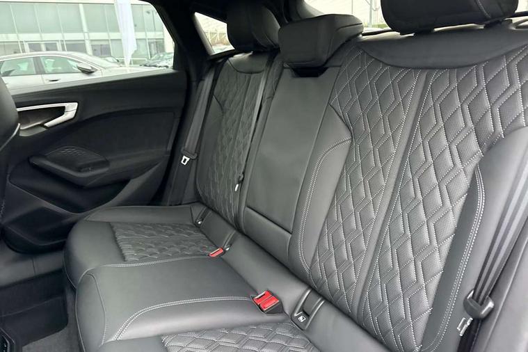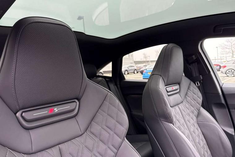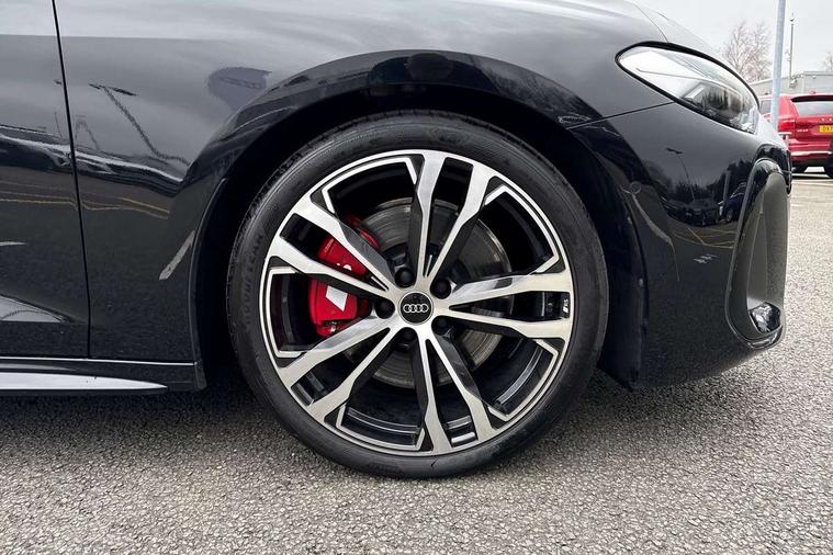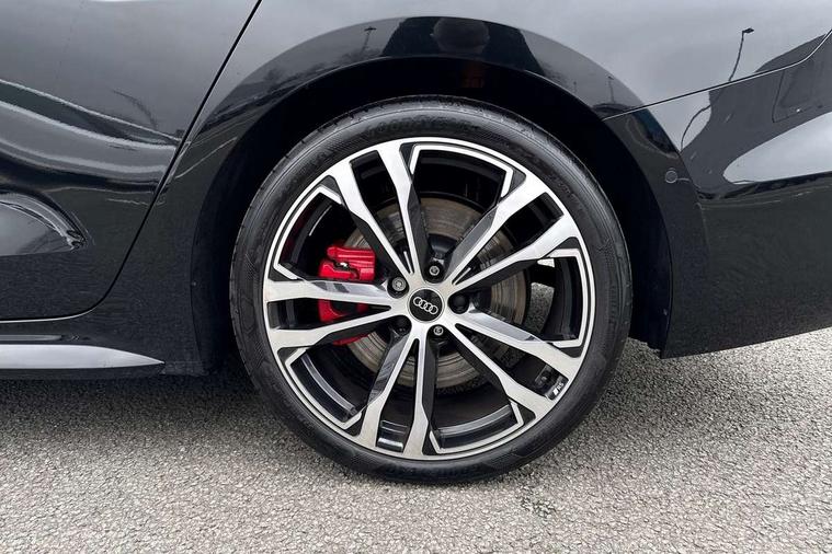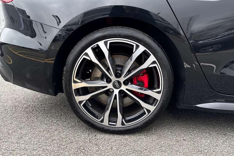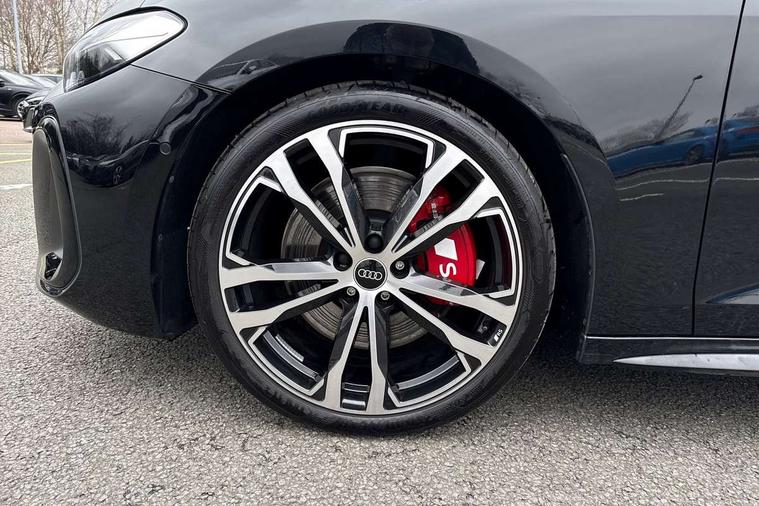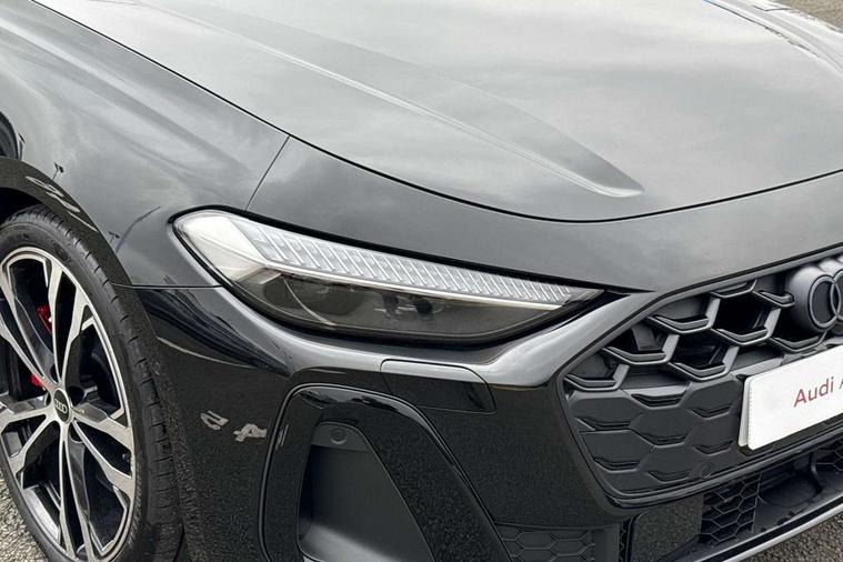 Adaptive cruise assist plus with steering intervention, Advanced driver attention and fatigue montior, Audi application store, Audi assistant, Audi connect emergency call and service, Audi drive select, Audi smartphone interface, Audi virtual cockpit plus with 11.9" OLED colour display, Automatic start/stop system with coasting functionality, Camera based traffic sign recognition, Garage door opener, Intersection assist, Lane change assistant with exit warning system, rear cross traffic alert and rear turn assist, Lane departure warning with emergency assist, MMI 10.9" front passenger touch display, MMI navigation plus with high resolution 14.5" OLED touchscreen colour display, Park assist plus, Parking system plus with 360 display, Progressive steering with servotronic, Rear view camera, Swerve assist and turn assist, Top view camera, Traffic sign based speed limiter, S sports suspension with damper control lowered by 20mm, 2 USB-C ports in both the front and rear, DAB digital radio reception, Smartphone compartment with wireless charging, Aluminium window trims, Auto dimming rear view mirror, Black door handles, Black door mirrors, Dark chrome-plated tailpipe trims, Digital OLED tail lights including communication light, Door mirrors - electrically adjustable, heated, folding and auto dimming on both sides, Front and rear electric windows, Front door sill trims with aluminium inlays, illuminated with 'S' logo, Headlight cleaning system, Heated rear window, High beam assist, LED daytime running lights, LED third brake light, Matrix LED headlights with eight light signatures selectable via the MMI or the myAudi app, Panoramic glass roof with switchable transparency, Privacy glass, Rear and side windows with heat insulating glass, Rear boot, Rear side wing doors, Red S rhombus badging with S lettering on rear, S bumpers, radiator grille and diffuser in matt black and diffuser insert in matt silver, White rhombus logo projection light in exterior mirrors, Windscreen with acoustic glazing, 3 rear headrests, 3 seat rear bench, 3 spoke leather steering wheel with multi-function buttons with touch control, flattened on top and bottom, with S badging and contrast stitching, 3-zone automatic climate control, 40:20:40 split folding rear seat bench with centre armrest and cup holders, Comfort centre armrest, Electric steering wheel adjustment, Electrically adjustable front seats, Fine Nappa leather upholstery, Front and rear floor mats, Front sport seats plus with integrated headrest and S embossed logo, Headlining in black cloth, Heated front and outer rear seats, Heated steering wheel, i-Size child seat mounting on the front passenger side and i-Size and top tether on the outer rear seats, Luggage compartment lid, electrically opening and closing, Memory function for driver seat, Pneumatically adjustable lumbar support, Single front passenger seat, Stainless steel pedals and footrest, Steering wheel grips in perforated leather and shift paddles, Ventilation seat and massage function for the driver and front passenger, Black styling package plus - A5, Sound and vision pack - A5, 3x3 point rear seat belts, Acoustic vehicle alerting system, Convenience key with safelock, Driver airbag, Electric child safety locks, First aid kit with warning triangle and vests, Front emergency brake assist, Front passenger airbag, Front passenger airbag deactivation, Hill hold assist, Occupant detection in rear seat area, Proactive passenger protection system for front, sides and rear, Red brake calipers, Seat belt monitoring with rear seat occupant reminder, Side airbags in front and rear with head airbag system and front interaction airbag, Tyre pressure loss indicator, Anti theft alarm, Anti-theft wheel bolts, Keyless Go, Accent surfaces and control buttons in gloss black, Black dashboard with contrast stitching, Inlays in matt brushed aluminium with linear embossing, anthracite, Softwrap in Dinamica with contrast stitching, Upper and lower interior elements in dinamica microfiber, 20" 5 twin spoke design Audi Sport alloy wheels in metallic black and gloss turned finish, Tyre repair kit,