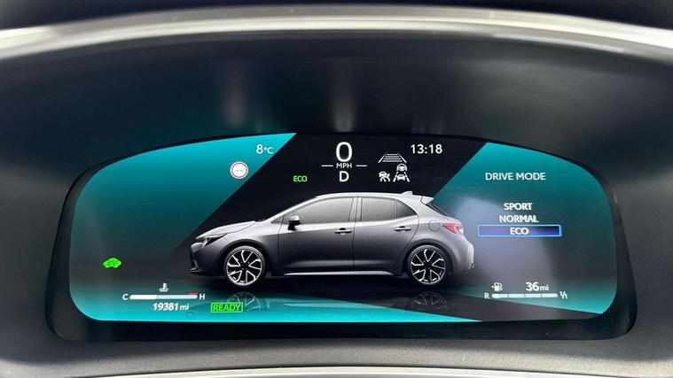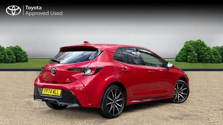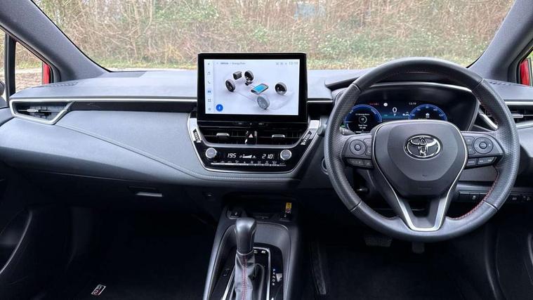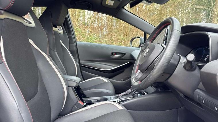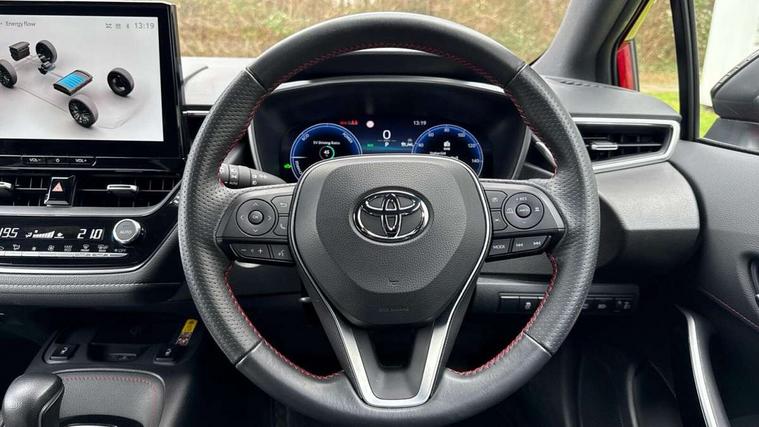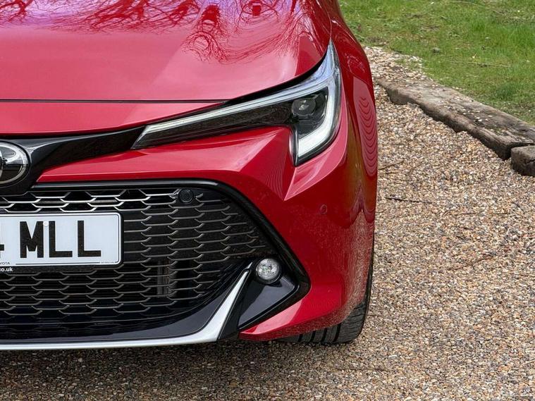 10.5" Multimedia display screen, Bluetooth telephone connectivity, Connected car functionality upgrade, tracker, remote status and e-care, Drive mode select (Eco, Normal), E-call, Electrically assisted power steering, EV drive indicator, Front and rear parking sensors with auto brake, Full Digital 12.3" TFT Digital Combimeter, Key reminder warning, Lane Departure Alert (LDA) switch on steering wheel, Memory on adjustable speed limiter, MyT connected services, Proactive driving assist (PDA), Reversing camera, Smart entry and push button start with GR Logo, Smartphone integration with Apple CarPlay and wired android auto, Tailgate, Toyota remote services, Toyota smart connect navigation, Wireless charger, Gasoline particulate filter, Vehicle Stability Control (VSC), 6 speakers, AM/FM radio, DAB Digital radio, Front USB-C in centre console, Front USB-C in dashboard, Smart voice assist/ Voice recognition, USB and Aux in connectors + 12V front outlet, Anti-jam protection on power windows, Auto up and down function on all power windows, Automatic folding mirrors, Automatic headlights with high beam assist, Black centre and side air vents, Black toyota logo in front, Body coloured bumpers, Body coloured door mirrors, Body coloured outside door handles, Dark chrome lower grille, Electrochromatic mirror, Follow me home headlights, GR Sport dark chrome front mesh grille and black rear grille, GR Sport exclusive under guard, GR sport scuff plates, LED daytime running lights, LED dual beam projector headlights, LED front fog lights, LED High mounted stop light, LED rear combi lights with LED lightguide, Manual headlight levelling system, New grille pattern, Noise reduction layer on windscreen, Piano black diffuser, Power adjustable heated door mirrors, Power front windows, Power rear windows, Privacy glass with UV filter, Rain sensing wipers, Rear side wing doors, Rear window defogger, Rear window wiper, Reverse tilting door mirrors, Rocker and door lower moulding, Roof spoiler, Satin chrome insert on front air vents, Satin chrome insert on front door assist grips, Satin silver front spoiler, Shark fin antenna, Tailgate release with push button, Time adjustment on intermittent wiper, Turning signal integrated indicators in door mirrors, Unique lower skirt, Unique side rocker with black insert, UV-filter on driver and passenger windows, 2 Shopping bag hooks in luggage compartment, 3 rear headrests, 3 seat bench in 2nd row, 3 spoke leather steering wheel with satin insert/red stitching + gear knob, 4 tie down hooks in luggage compartment, 60/40 split folding rear seat, Adaptive cruise control (ACC) switch on steering wheel, Adjustable speed limiter switch on steering wheel, Audio, multimedia and telephone switches on steering wheel, Black armrest on centre console box, Black gear shift console, Boot light, Centre room light, Driver and front passenger personal light, Driver and passenger assist grip, Driver and passenger seatback pockets, Driver and passenger sun visor with mirror and light, Dual zone automatic air conditioning with ECO mode switch, Fabric/synthetic leather upholstery, Front and rear cup and bottle holders, Front door pockets, Front head restraints, Front passenger seat, Front sliding synthetic leather armrest, GR Sports seats with partial leather bolsters, Heated seats, Illuminated entry system in room lamp, ISOFIX seat fixing (2 fixings on rear outer seats), Manual height adjustable for driver and front passenger seat, Manually tilt with sliding driver and front passenger seat, Nanoe-X air purifier, Parcel shelf, Pollen filter, Power window switches with satin chrome inserts, Rear armrest with 2 cupholders, Rear passenger coat hooks (2), Red stitching on gear shift, Remote air conditioning, Satin chrome inside door handles, Satin chrome surround on speedometer, Sliding armrest on centre console box, Slow opening glovebox with lights, Textile floor mats, Tilt/telescopic steering column, Voice recognition switch on steering wheel, Whiplash Injury Lessening (WIL) feature (active headrest) for seats, White ambient lighting on open tray and front cup holder, Toyota safety sense 3 pack - Corolla, 3x3 point rear seatbelts, Adjustable driver and front passenger seat belt extender to top anchor point, Anti lock braking system + Electronic brake force distribution, Brake assist function, Child locks on rear doors, Downhill Assist Control (DAC), Electronic parking brake, Emergency brake light signal (EBS), Front passenger airbag on/off switch, Front seatbelt reminder, HAC - Hill start assist control, Rear seat belt reminder, Seatbelt pretensioners and force limiters, Supplemental restraint system (SRS) 7 airbags - dual driver, dual side curtain, side impact and driver knee airbags, Traction control, Tyre pressure warning system, Acoustic vehicle alert system (AVAS), Alarm with motion sensor and immobilizer, Power passenger window lock, Remote central locking + deadlocks, GR Sport interior styling with accents and exterior styling, Satin chrome dash trim, Soft touch texture on upper dashboard, Stitching on lower dashboard, 18" Black machined face 10 spoke alloy wheels, Tyre repair kit, Unique wheel finish with red wheel cap,