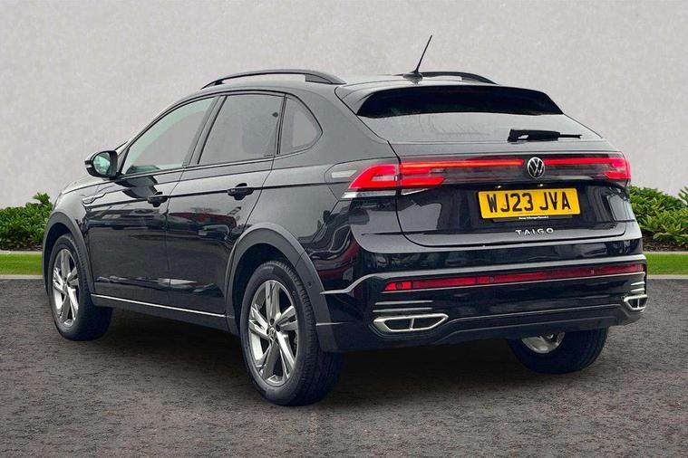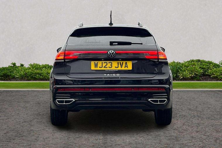 App-Connect including App-Connect Wireless, Digital cockpit pro - 10.25" high resolution TFT dash display screen with customizable menus and information, Driver alert system, Driving profile selection, e-Call (emergency call), Power Steering, Travel assist including emergency assist, Washer fluid level indicator, Wireless Charging including Bluetooth, Start-stop system with battery regeneration (recuperation - energy recovery during braking), XDS electronic differential lock for improved traction and handling, Digital radio reception (DAB+), Diversity antenna for FM reception, WeConnect plus, Aspherical driver's exterior mirror, Auto headlights, Body coloured bumpers, Body coloured exterior mirror housings and door handles, Bumpers in R-Line style, Electric windows, External USB type C socket and charging sockets, Front fog lamps with cornering function, Front scuff plates with R-Line logo, Headlight range control, LED headlamps, LED rear combination lamp, LED third brake light, Left convex exterior mirror, Power folding adjustable/heated exterior mirrors and front passenger exterior mirror lowering function, Rear fog light on one side, reversing light on both sides, Rear side wing doors, Rear wash/wipe with intermittent wipe setting, 12V socket in centre console, 2 front reading lights, 3 rear head restraints, 3 seat bench in 2nd row, Air care climatronic air conditoning system with active combination filter and 2-zone temperature control, Ambient lighting with logo projection, Black carpets, Black roof lining, Child seat anchor for child seat system i-Size, 2x top tether and child seat anchor in front on front passenger side, Chrome bezel for instrument cluster, vents, door handles + gear shift, Driver and front passenger seat height adjustment, Front + rear carpet mats, Front centre armrest, Front footwell illumination, Front sports comfort seats, Height and reach adjustable steering wheel, Interior ambient lighting and surround lighting, Karoso artvelours cloth upholstery, Leather trimmed gear knob, Leather wrapped multifunction steering wheel, Luggage compartment floor, Luggage compartment light, Lumbar support for driver's and front passengers seat, Seat covers in grey + titanium black, Single front passenger seat, Split folding backrest with centre armrest and unsplit rear seat bench, Stainless steel pedals, Storage compartment under front seats, Sun visors with illuminated vanity mirrors, Chrome Package - Taigo, Drivers assistance pack - Taigo, Light and Sight pack including High beam assist - Taigo, 2 x 3-point seatbelts/outer rear seats with ECE label, 3-point seat belts in front with pretensioner and height adjustment, 3-point seatbelt for centre rear seat, Driver and front passenger airbags with front passenger airbag de-activation, front side and curtain airbags, Driver and front passenger safety-optimised head restraints, Electronic stability control, Extended and predictive pedestrian/ cyclist protection, Front and rear disc brakes, Front curtain and side airbags with center airbag, Hill start assist, Manual rear child locks, Single tone horn, Tyre pressure loss indicator, Anti-theft alarm system with interior monitoring, backup horn, and towing protection, Anti-theft wheel bolts, Grey anodised matte decorative inserts in dash and front door panels, Low rolling resistance tyres,