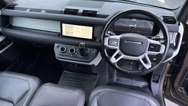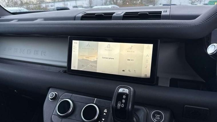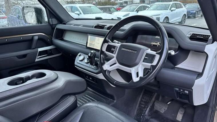 10" touch screen, 360 degree parking aid, 3D Surround Camera with 360 View, 180 Rear View, Front Traffic Detection, Forward Vehicle Guidance, Tow Hitch Assist and clear sight Ground View, Android Auto, Apple CarPlay, Assisted tailgate with soft close, Blind spot assist, Bluetooth system, Clear exit monitor, Click and go integrated base unit, Connected navigation pro, Cruise control + speed limiter, Driver condition monitor, Interactive driver display, Lane keep assist, Less CE Device Charging, PAS, Rear traffic monitor, Traffic sign recognition with adaptive speed limiter, Trip computer, Wade Sensing, Adaptive dynamics, Configurable Terrain Response, Electronic air suspension, Terrain Response, DAB Radio (Digital Audio Broadcasting), Meridian 400w sound audio system with 11 speakers and subwoofer, Pivi pro connected, Auto high beam assist, Automatic headlight levelling, Automatic headlights, ClearSight interior rear view mirror, Electric heated/power fold door mirrors with approach lights and auto dimming driver side, First Edition badge, Folding fabric roof, Front fog lights, Heated windscreen, LED tail lights, Metal tread plates with First Edition branding, Metallic paint, Premium LED headlights with signature DRL, Privacy glass, Puddle lights, Rain sensing windscreen wipers, Rear fog lights, Trailer stability assist, White contrast roof, 12 way heated electric memory front seats with 2 way manual headrests, 12V power socket in loadspace, 3 individual front seats with centre jump seat and folding front centre armrest, 40:20:40 fixed rear seats with centre armrest, Cabin lighting, Carpet mats, Electric reach + rake adjustable steering column, Grained Leather and Robust Woven Textile upholstery, Heated steering wheel, Leather gearshift, Leather wrapped steering wheel with PU DAB, Light oyster morzine headlining, Loadspace Hook, Multifunction steering wheel, Rear headrests, Rear ISOFIX, Sunvisors with illuminated vanity mirrors, Twin front cupholders with cover, Core exterior pack - Defender, Non-smoker package, Online pack with data plan - Defender, 5 x 3 point seatbelts, 6 x 3 point seatbelts, ABS, Cross car beam in Light Grey Powder Coat, Driver and passenger airbags, Emergency braking, ESP + traction control, Hill launch assist, Remote for (e-Call, Optimised assistance call, InControl app, Climate, beep and flash and door), TPMS (Tyre pressure monitoring system), Alarm, Immobiliser, Intrusion sensor, Keyless entry and go, Locking wheel nuts,
