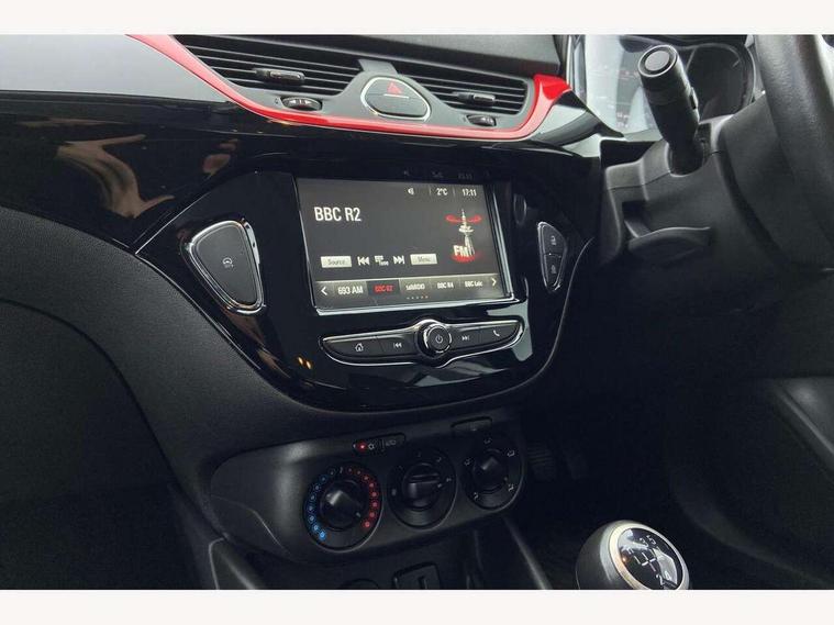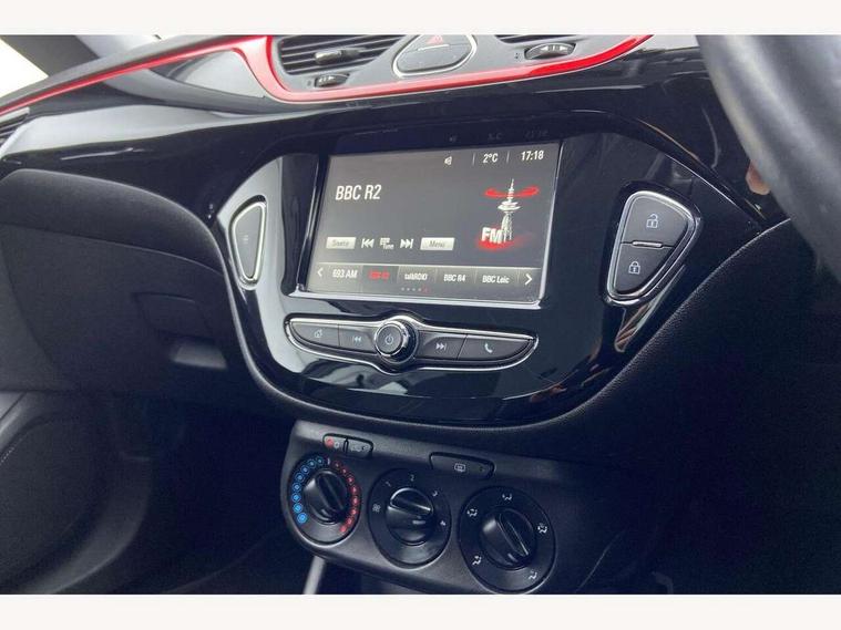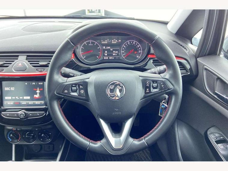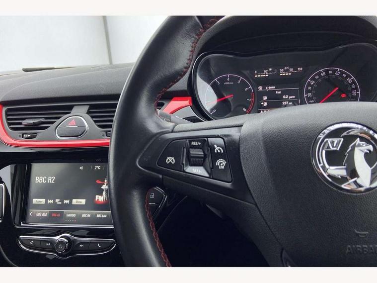 Apple car play/Android Auto, Bluetooth system, City assist mode for power steering, Cruise control + speed limiter, Exterior temperature gauge, Lights on warning, Low fuel level warning light, Multi function display, Multi function trip computer, Rev counter, Service indicator, Speed sensitive power steering, Speed warning indicator, Sports suspension, 6 speakers, Body colour bumpers, Body colour door handles, Body coloured door mirrors, Chrome effect tailpipe extension, Chrome front grille, Coming home function, Electric adjustable door mirrors, Electric front windows/one touch facility, Fog lights with chrome surround, Front lip spoiler, Headlamp levelling, Heated door mirrors, Heated rear window, Heated windscreen, Laminated windscreen, LED daytime running lights, Rear skirts, Rear wiper, Side sills, Two speed windscreen wipers, 12V power outlet, 2 height adjustable rear headrests, Air recirculation system, Centre console with cupholders, Chrome gear knob, Chrome interior door handles, Delay courtesy light function, Driver/passenger reading lights, Driver/passenger sunvisors and vanity mirrors, Electric reach + rake adjustable steering column, Front door pockets, Front seat belt pre-tensioners with load limiters, Glovebox, Grab handles, Height adjustable driver's seat, Height adjustable front headrests, Illuminated luggage compartment, ISOFIX on outer rear seats, Lace cloth trim, Load restraining lashing points, Luggage compartment cover, Multi function steering wheel, Pollen filter, Rear door pockets, Rear reading lights, Reclining front seats, Sports front seats, Sight and light Pack - Corsa, ABS + EBD + EBA, Brake assist function, Child proof door locks, Driver/passenger 2 stage auto adaptive airbags, ESP + traction control, Front and rear curtain airbags, Front and rear seatbelt reminder, Front seat side impact airbags, Height adjustable front seatbelts, Hill start assist, Manual passenger airbag deactivation function, Side impact protection beams, Three 3 point rear seatbelts, Tyre pressure monitoring system, Deadlocks, Immobiliser, Key left in ignition audible warning, Locking wheel bolts, Radio frequency remote central locking, Piano black facia with red inserts, Tyre inflation kit,