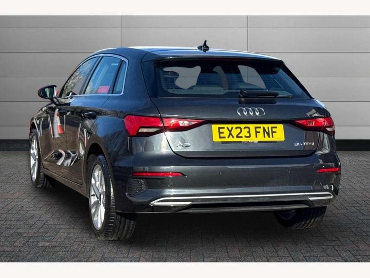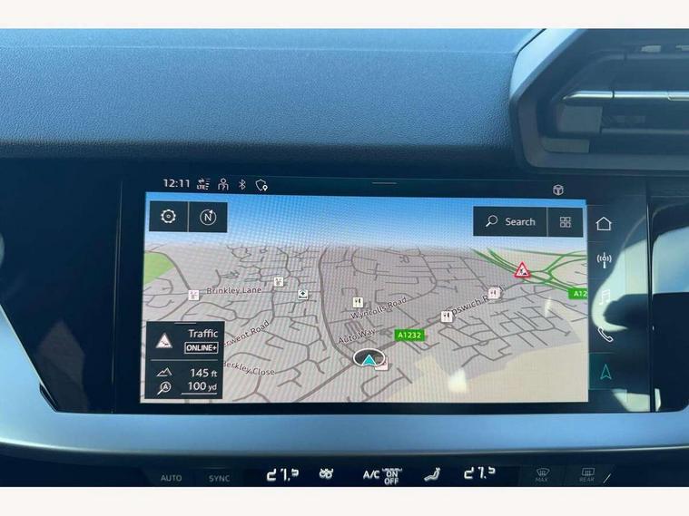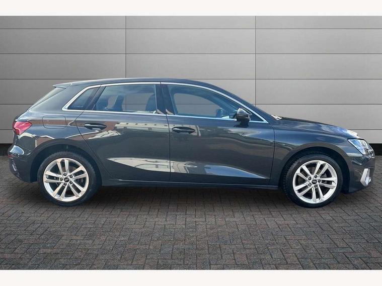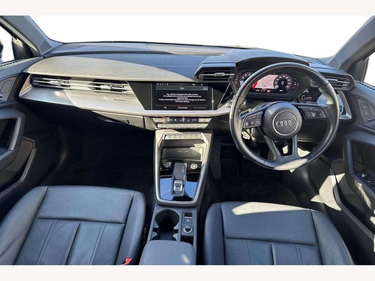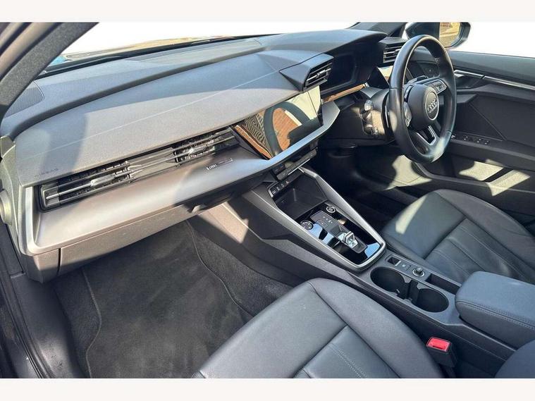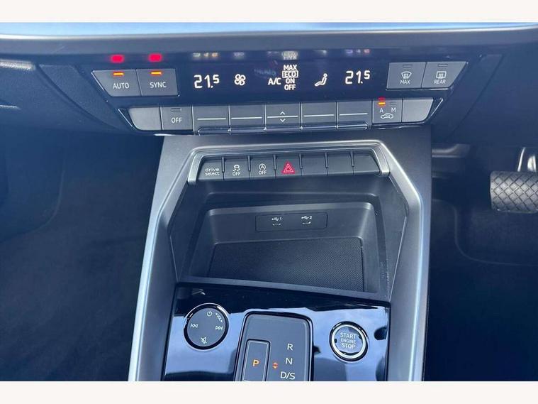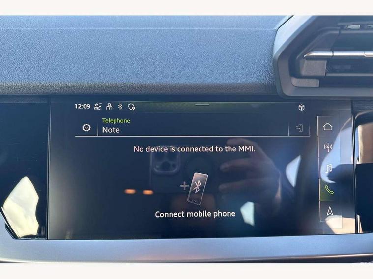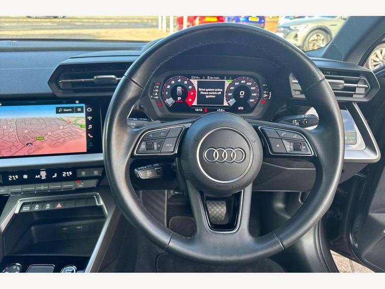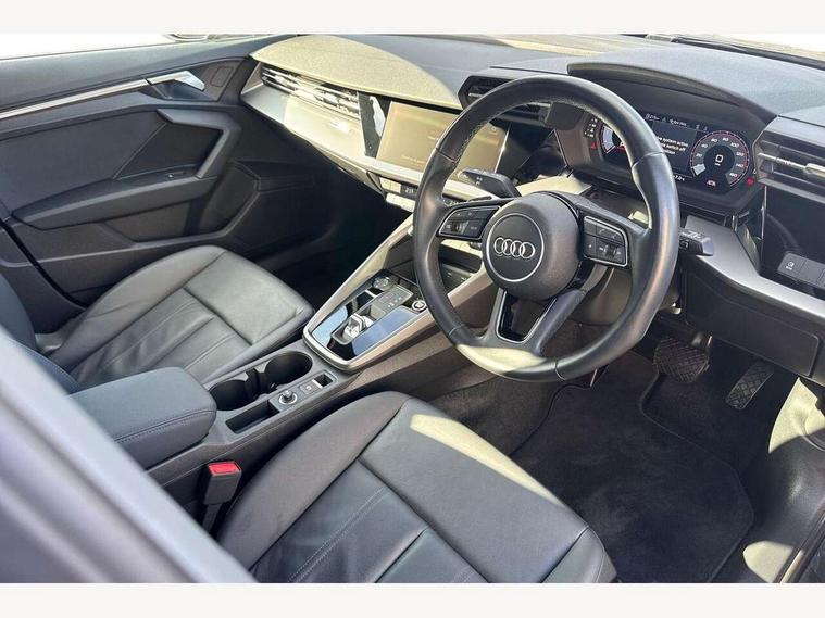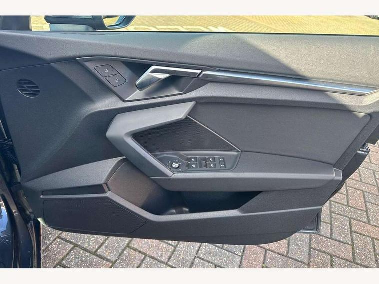 Audi drive select (Auto, Comfort, Dynamic, Efficiency and Individual), Audi smartphone interface, Audi Virtual Cockpit - 10.25" digital and colour instrument cluster, Automatic start/stop system with recuperation, Bluetooth interface, Collision avoidance assistant, e-Call (emergency call), Electromechanical power speed sensitive steering, Lane departure warning system, MMI Navigation Plus with high resolution 10.1" colour touch screen display, Service indicator, Trip computer, Voice control system with natural language interaction, Standard suspension, 2xUSB-C connection with data and charging functions, 6 passive loudspeakers, DAB Digital radio, 3rd brake light, Acoustic glass windscreen, Aluminium window trim, Auto dimming frameless rear view mirror, Body colour exterior mirrors, Body colour roof spoiler, Electrically adjustable/heated/folding/auto dimming door mirrors with integrated LED indications + kerb view function for passenger side, Front electric windows, LED daytime running lights, LED headlights and halogen rear lights, Light and rain sensors, Rear electric windows, Rear side wing doors, Rear window, rear door windows and rear side windows in clear glass, Rear wiper, 12V socket and storage compartment in front centre console, 3 seat bench in 2nd row, 3 spoke leather multifunction steering wheel with paddle shift, 40/20/40 split folding rear seat bench with cupholder, Dual zone electronic climate control, Front and rear centre armrest, Front and rear headrests, Front door sill trims with aluminium inlay, Front/rear floor mats, Height and reach adjustable steering wheel, Interior lighting - Front and rear roof module including reading lights, glove compartment light and right hand side, Luggage compartment floor covering, Manual boot compartment lid, Manually adjustable front seats, Seat side bolsters, Single front passenger seat, Steel grey cloth headlining, Twin leather upholstery, Aluminium interior elements pack - A3 Sportback, Sport styling pack - A3 Sportback, 3x3 point rear seat belts, Audi pre sense front, Driver and front passenger airbag with passenger airbag deactivation, Electronic Stabilisation Control (ESC) including ABS, ASR and EDL, First aid kit with warning triangle and 2 safety vests, Front side airbags with head airbags and interaction airbag, Pre-sense front with pedestrian and cyclist detection, Seatbelt monitoring, Tyre pressure loss indicator, Anti theft alarm, Anti-theft wheel bolts, Electronically operated child lock, Immobiliser, Remote control central locking, Inlays with silk effect paint in platinum grey,