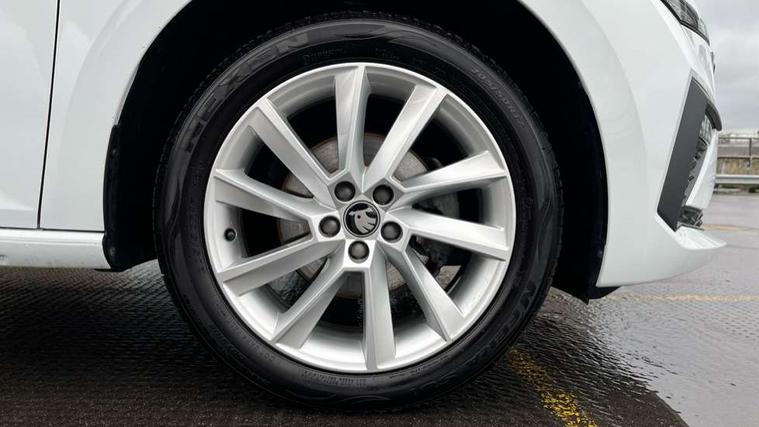 Advanced driver attention and drowsiness monitor, Bluetooth, e-Call (emergency call), Front assist system, PAS, Rear parking sensors, Speed limiter, Tailgate, Traffic sign recognition, Virtual Cockpit - 10.25" digital display, Voice control system, Wireless smartlink, 4 USB C ports, 8 Speakers, 9.2" Skoda navigation display, DAB radio, Auto dimming rear view mirror, Automatic headlamp activation with Coming home and Leaving home feature, Automatic high/low beam, Automatic intermittent wipers, Body colour bumpers, Body colour door mirrors and handles, Chrome moulding around grille, Chrome window frames, Front and rear electric windows, Heated rear window, LED 3rd brake light, LED brake lights, LED daytime running lights, LED front turning lights, LED high beam, LED low beam, Light sensors, Privacy glass, Rear LED fog light, Rear side wing doors, Rear wiper, Tinted windows, 12V socket in luggage compartment, 3 seat bench in 2nd row, Ambient lighting in white/red, Black / Copper armrest stitching, Cargo elements, Chrome inner door handles, Copper hotstamping, Door inserts in accent black, Driver and passenger sun visors with vanity mirror, Dual zone climate control, Front and rear roof lights, Front centre armrest, Front head restraints, Glasses storage in roof liner, Height adjustable driver seat, Height adjustable passenger seat, Ice scraper, Illuminated glove compartment, Inner circulation control with pollen filter, ISOFIX for front passenger seat, Isofix preparation for back seats, Leather gearknob and handbrake lever, Lodge cloth upholstery, Luggage net under rear parcel shelf, Manual lumbar support for front seats, Net package and top tether hooks in boot space, Pearl grey ceiling, Pocket on the back of both front seats, incl. mobile phone pockets, Rear centre armrest, Single front passenger seat, Textile floor mats, Third rear headrest, Ticket holder, Top tether for front passenger seat, Umbrella in driver's door, 3x3 point rear seatbelts, ABS, Child locks, Curtain airbags and front side airbags, Disc brakes, Driver and front passenger airbags, ESP, Hill hold control, Manual leather parking brake, One tone horn, Passenger airbag switch off function, Seatbelt reminder for driver and front passenger, Tyre pressure monitoring system, Anti theft alarm system with interior monitoring, backup horn and towing protection, Anti-theft wheel bolts, Remote central locking with 2 remote folding keys, SAFE function for remote central locking, Decorative inserts,
