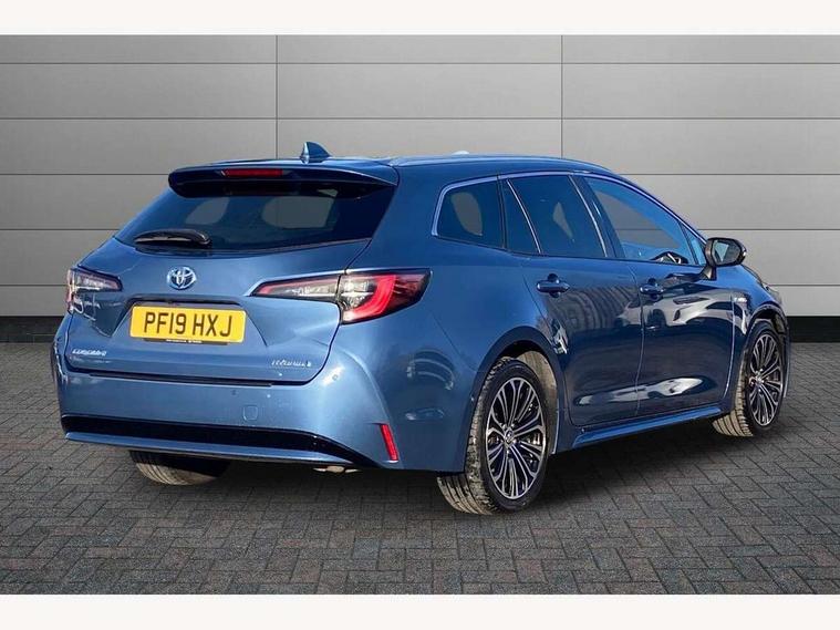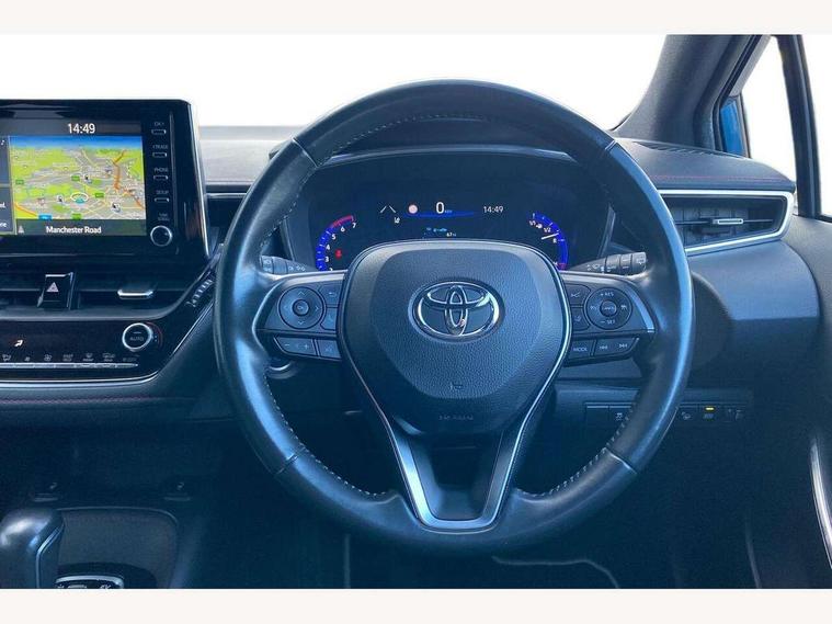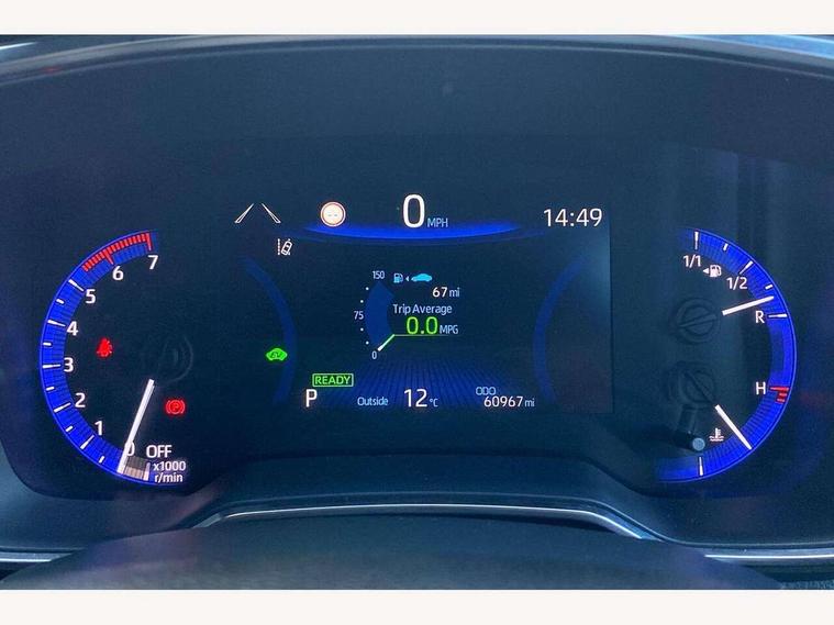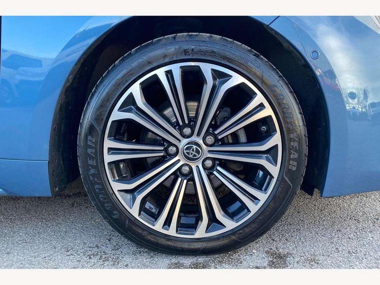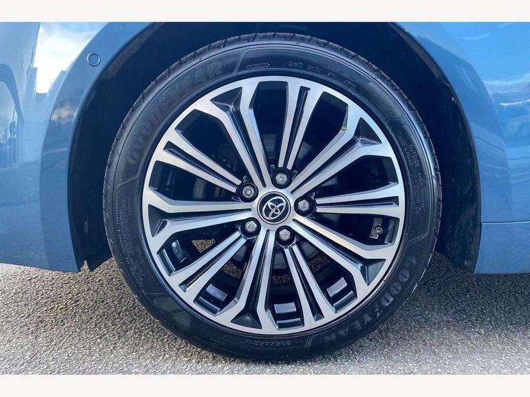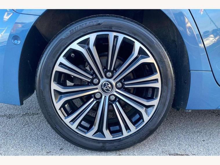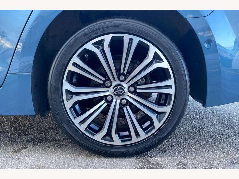 Adaptive cruise control, Bluetooth telephone connectivity, E-call, Electrically assisted power steering, Front parking sensor, Intelligent park assist, Push button start, Rear parking sensor, Reversing camera, Voice activation, Vehicle Stability Control (VSC), 2 ring combimeters with 7" colour TFT screen, 6 speakers, 8" multimedia and back monitor, AM/FM radio, DAB Digital radio, Toyota touch 2 with go navigation system, USB/AUX connectivity, Anti-jam protection on power windows, Auto dimming inside rear view mirror, Auto high beam, Auto up and down function on all power windows, Automatic folding mirrors, Automatic headlights, Automatic rear view mirror, Automatic wipers, Bi-LED headlights with LED lightguide, Body coloured bumpers, LED daytime running lights, LED fog lights, LED rear combi lights with LED lightguide, Power front windows, Power rear windows, Privacy glass, Rain sensor, Rear window wiper, Shark fin antenna, 3 rear headrests, Alcantara/partial leather upholstery, Clean air filter, Dual zone automatic air conditioning, Front head restraints, Heated seats, Interior illumination, ISOFIX seat fixing (2 fixings on rear outer seats), Leather steering wheel and gear knob, Pollen filter, Power lumbar support, Tilt/telescopic steering column, WIL - Whiplash Injury Lessening seats, Parking pack - Corolla, Toyota safety sense 2 - Corolla, 3x3 point rear seatbelts, Anti lock braking system + Electronic brake force distribution, Brake assist function, Electronic parking brake, Front passenger airbag on/off switch, Front seatbelt reminder, HAC-Hill-start Assist Control, Rear seat belt reminder, Seatbelt pretensioners and force limiters, Supplemental restraint system (SRS) airbags - 7 airbags including driver, front passenger, curtain, side and knee airbags, Traction control, Tyre pressure warning system, Alarm/immobiliser, Smart entry, 17" alloy wheels, Tyre repair kit,