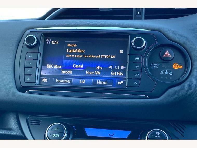 Bluetooth system, Cruise control, Electric boot release, External temperature gauge, Fuel indicator with low level warning, Lights on warning, Push button starter, Rear view camera, Remote fuel flap release, Speed sensitive power steering, Tachometer, Trip computer, 6 speakers, Auxiliary input socket, DAB Digital radio, MP3 player, Radio, Steering wheel mounted audio controls, Touch screen audio system, USB connection, 2 speed front wipers + intermittent wipe, Body colour heated door mirrors, Chrome rear garnish, Colour keyed bumpers, Colour keyed door handles, Drivers window one touch up/down, Electric front windows, Electrically adjustable door mirrors, Follow me home headlights, Front fog lights, Green tinted glass, Headlamp levelling, Heated rear windscreen, LED daytime running lights, LED rear lights, Piano black front grille, Privacy glass, Projector headlamps, Rear spoiler, Rear wiper, Satin chrome fog light surround, Satin chrome front grille surround, 12V Accessory socket, 60/40 split folding rear seat, Boot light, Clean air filter, Driver seat height adjust, Driver's glovebox with lid, Driver/passenger vanity mirrors with covers, Dual zone climate control, Front cupholders x 2, Front map reading lights, Front seats with lumbar support, Gioco cloth upholstery, Height adjustable front head restraints, Height adjustable rear seat head restraints (x3), Interior silver door handles, Isofix system on outer rear seats, Leather gear knob, Leather steering wheel, Rear cupholder, Removable rear parcel shelf, Tilt/telescopic steering column, 3 point seatbelts on all rear seats, ABS+EBD+Brake assist, Collapsible pedal support, Curtain airbags, Door open warning, Driver and passenger airbags, Drivers knee airbag, Front side airbags, Height adjustable front seatbelts with pre-tensioners and load limiters, Hill start assist control (HAC), Passenger airbag deactivate switch, Rear child proof door locks, Seatbelt warning lamp and buzzer, Tyre pressure monitoring system, Vehicle stability control VSC + traction control, Ventilated front disc brakes, Engine immobiliser, Remote central locking, Instrument panel in Dark grey, 16" alloy wheels, Space saver spare wheel,