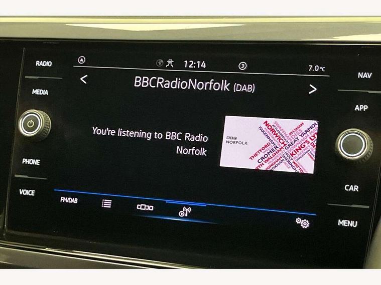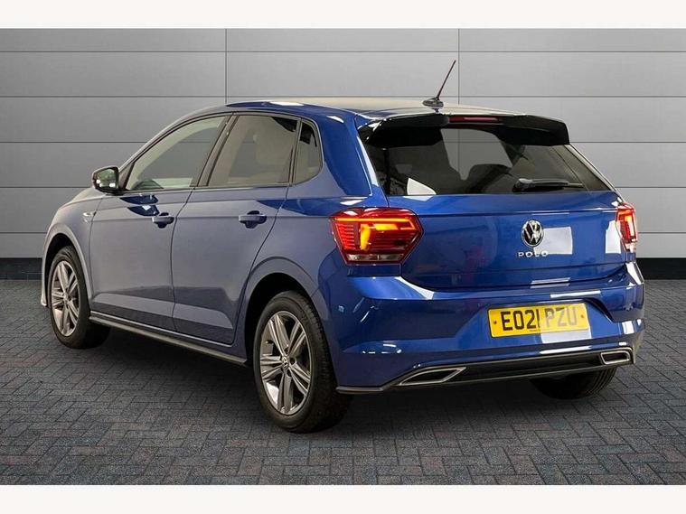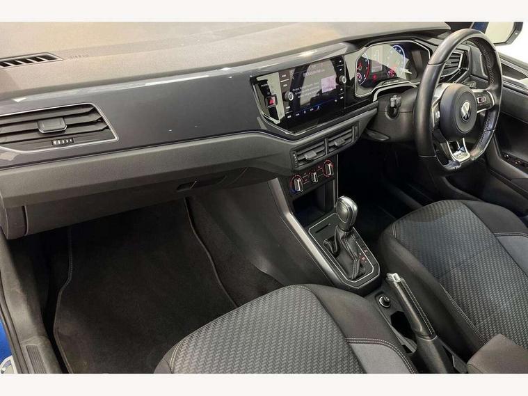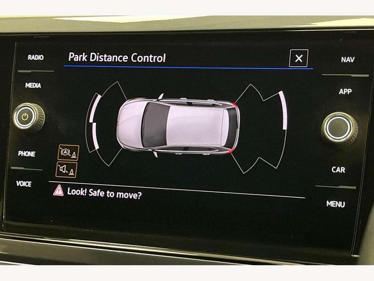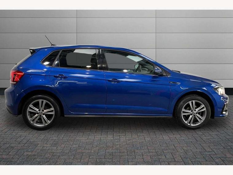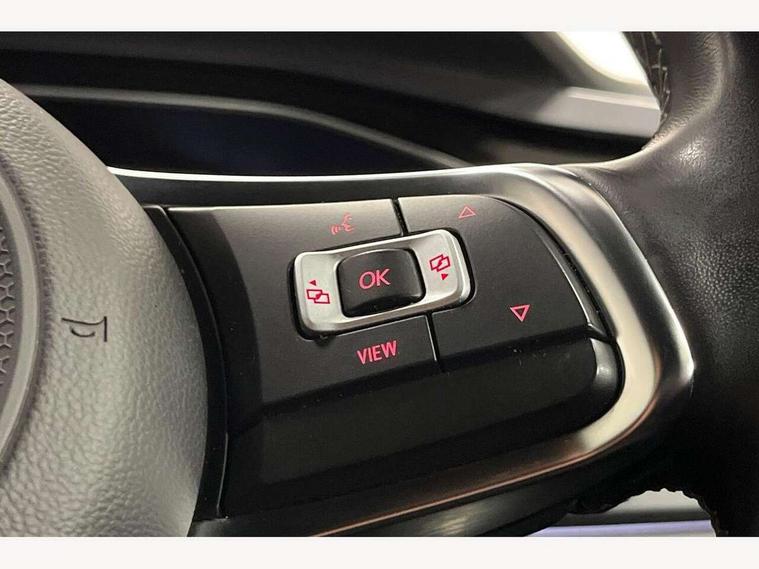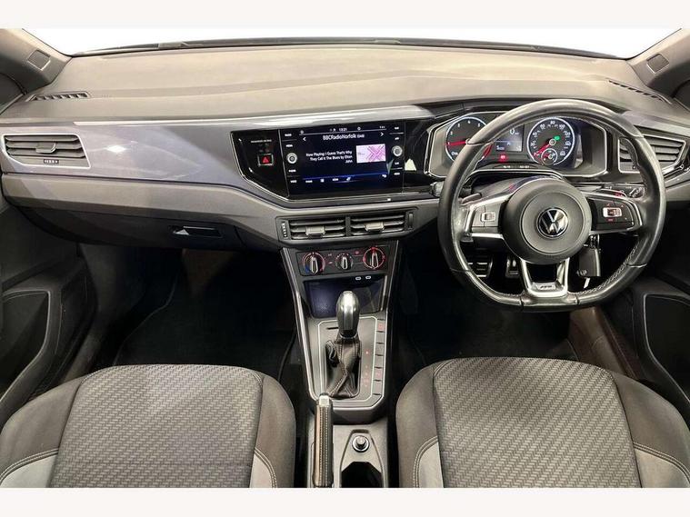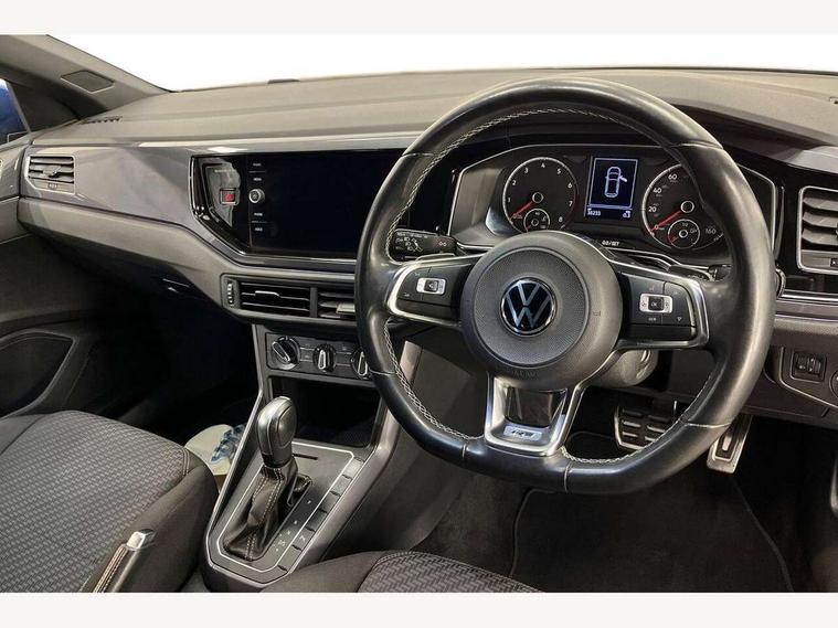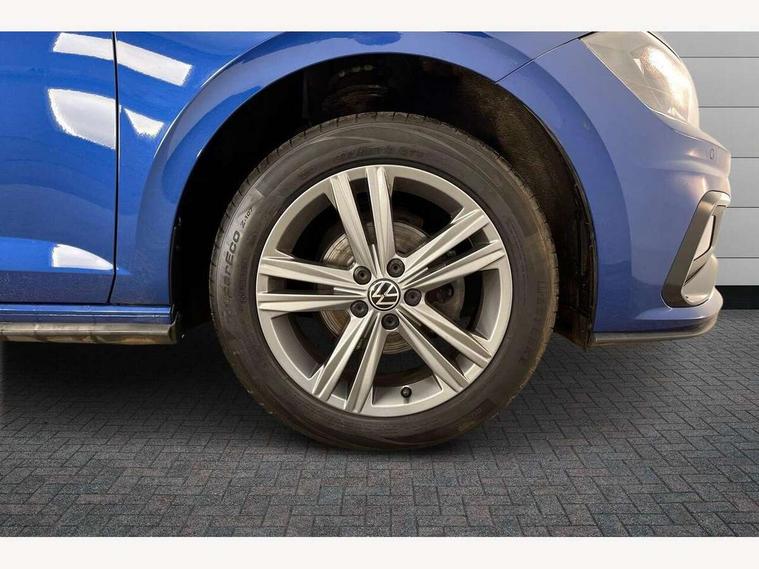 Digital clock, Driver alert system, Emergency call service, Lights on warning, Multifunction computer plus, Power assisted speed sensitive steering, Speedo and rev counter, electronic odometer, trip, service interval display and fuel gauge, Start/stop system, Volkswagen connect, Warning buzzer and light for front seatbelts unfastened, Wireless app connect, Battery regeneration during braking, Galvanished body, DAB digital audio broadcast, Diversity antenna for FM reception, Black grille with chrome surround, Body colour door handles, Body coloured side sills, Chrome trimmed strip on lower bumper, Electric front windows, Electrically foldable, adjustable and heated door mirrors with reverse activated kerb view adjustment on passenger's side, Front windscreen washers and wipers with 4 speed intermittent delay, Heated rear window with auto timer, High level 3rd brake light, LED darkened rear light clusters, LED daytime running lights, LED rear number plate lights, Left and right chrome effect trapezoid fascia exhaust tailpipe surrounds, Rear diffuser, Rear electric windows, Rear windscreen washer and wiper with interval delay, reverse activated, Unique R Line badging, 2 bag hooks in luggage compartment, 2 front cupholders and 12 V socket with cover, 3 rear head restraints, 60/40 split folding rear seat, Ambient lighting in front foorwell, front/rear door and dashboard light strips, Carbon flag cloth upholstery, Centre console storage with open storage compartment, Chrome-plated electric mirror adjustment switch surround, Chrome-plated electric window button surround, Driver and front passenger seat height adjustment, Driver and front passenger sunvisors with illuminated vanity mirrors, Dust/pollen filter, Folding rear seat backrest, Front + rear carpet mats, Front centre armrest with 2 x USB-C ports in front and 2 x USB-C ports in the rear, Front head restraints, Front seat backrest storage pockets, Front sport seats with lumbar adjustment and R line logo on seat backrest, Gear change selection via paddle shift on steering wheel, Gear lever gaiter in black trim surround, Glovebox, Handbrake grip button in chrome effect, Height/reach adjustable steering column, Instrument lighting, adjustable panel illumination, Interior light with delay, Isofix Preparation 2 Rear child seats, Leather gear knob and handbrake grip, LED interior lighting - 2 reading lights front and rear with interior delay and dimming function, Luggage compartment cover, removable, Luggage compartment lighting, Luggage compartment with variable load floor, Stainless steel pedals, Storage compartment in front doors, Storage compartment in rear doors, Storage compartment under front seats, Three spoke leather trimmed multifuction steering wheel with aluminium inserts and R Line Logo, Titanium black roof lining and sun visors, Unique R Line door sill protectors, Light and sight pack - Polo, R Line styling pack - Polo, 3 point height adj front seatbelts + pretensioners, 3x3 point rear seatbelts, ABS, Automatic post collision braking, Driver/front passenger airbag, Drivers and front passengers safety optimised head restraints, ESP with EDL + ASR, Front and rear passenger curtain airbags, Front passenger airbag deactivation, Front seat side impact airbags, Front/rear disc brakes, HBA (Hydraulic Brake Assist), Hill hold control, Single tone horn, Tyre pressure monitoring system, Alarm with interior protection and deactivation via infotainment system, Electronic engine immobiliser, Remote central locking with 2 remote folding keys, Chrome plated air vent surround, Chrome plated instrument surrounds, Shadow steel decorative inserts,