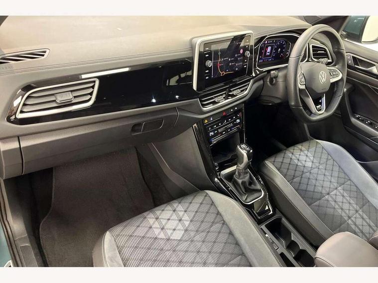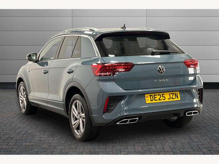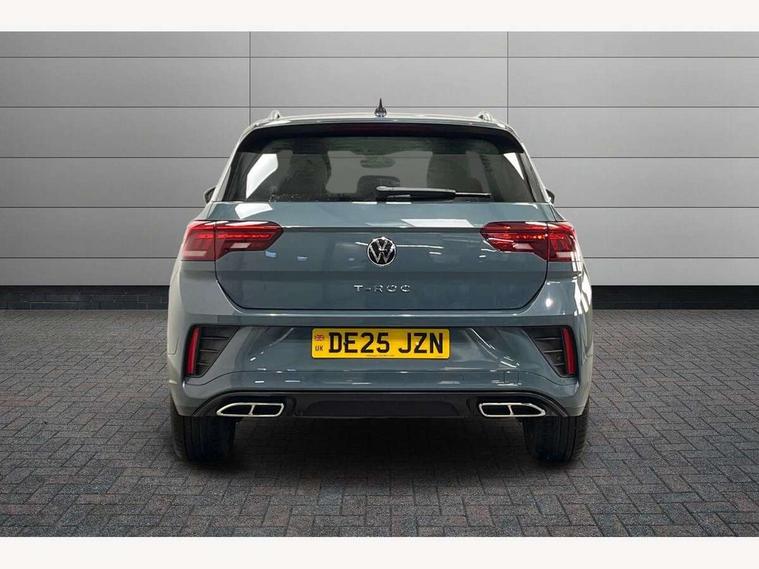10.25" Digital cockpit pro, Advanced driver attention and drowsiness monitor, Dynamic road sign display, Emergency call service, Lane keeping system Lane Assist, Mobile phone interface, Modified key software - reduce switch off time for key status change to Long no motion, Online services, Park assist including front and rear parking sensors, Service interval indicator, Tailgate/trunk lid release from outside, Think blue trainer driver tips and journey analysis, Warning sound and light for front seatbelts unfastened, Wireless app connect, Battery regeneration during braking, Start/stop function with battery regeneration, DAB Digital radio, Diversity antenna for FM reception, Front and rear 6 speakers, Music playback - MP3, WMA and AAC files, Premium USB cable in choice of either Apple or Android smartphone compatibility, SD card slot, Simultaneous pairing of 2 compatible mobile devices, Title and cover art display, We Connect and We Connect Plus functionality, Auto dimming interior rear view mirror, Automatic hazard lights activation under emergency braking, Automatic headlight control with LED separate daytime running lights with coming/leaving home function, Body coloured exterior mirror housings and door handles, Electrically adjustable and heated door mirrors, Extended roof spoiler, Exterior mirrors aspherical on driver side, convex on front passenger side, External USB type C socket and charging sockets, Front windscreen wiper with intermittent wipe and 4 position delay, Heated rear window, LED 3rd brake light, LED rear combination lamps, LED rear number plate lights, Power windows with comfort operation and circuit breaker, Privacy glass for rear side windows and rear window, R-Line design body coloured bumpers, Rain sensor, Rear exhaust tailpipe, Rear fog light on one side and reversing lights on both sides, Rear side wing doors, Rear wash/wipe with intermittent wipe setting, Remote electrically foldable door mirrors, puddle lights and reverse activated passenger's door mirror, 12V power socket in centre console, 3 rear head restraints, 3 seat bench in 2nd row, 4 load lashing points in luggage compartment, Air care climatronic air conditoning system with active combination filter and 2-zone temperature control, Black roof lining, Chrome plated decorative trims, Chrome plated radiator grille inserts, air vent surrounds and light switch surrounds, Door and side trim panel with leatherette insert, Front + rear carpet mats, Front centre armrest, Front cupholders x 2, Front footwell illumination, Front reading light, Front scuff plates with R Line logo, Front seat back storage pockets, Glove compartment door with light, Instrument lighting, white adjustable panel illumination, Interior ambient lighting and surround lighting, Interior light delay, Isofix child seat preparation, Leather gearshift handle, Load-through provision with cup holder when folded down ('Unsplit rear seat bench, split folding backrest, with centre armrest), Luggage compartment lighting, Single front passenger seat, Stainless steel pedals, Storage compartment in left and right luggage area, Storage compartment in rear doors, Storage compartments in driver and front passenger doors, Sunvisors with illuminated vanity mirrors, Variable boot floor, height adjustable and removable, Driver assistance pack without proactive passenger protection - T-Roc, 3 point height adj front seatbelts + pretensioners, 3 point seatbelts in outer rear with ECE label, ABS, Child locks on rear doors, City emergency braking and pedestrian monitoring, Driver and front passenger airbag with front passenger airbag deactivation, Driver and front passenger safety-optimised head restraints, Drivers seatbelt reminder, Electronic parking brake, Electronic Stability Control (ESC) inc EDL (Electronic Differential Lock) and ASR (Traction Control), Front and rear passengers curtain airbag system including front side airbags, Hill start assist, Predictive pedestrian protection, Rear disc brakes, Two tone horn, Tyre pressure loss indicator, Volkswagen roadside assistance, Piano black decorative inserts in dashboard and front door trim panels, Trims for alloy wheels,