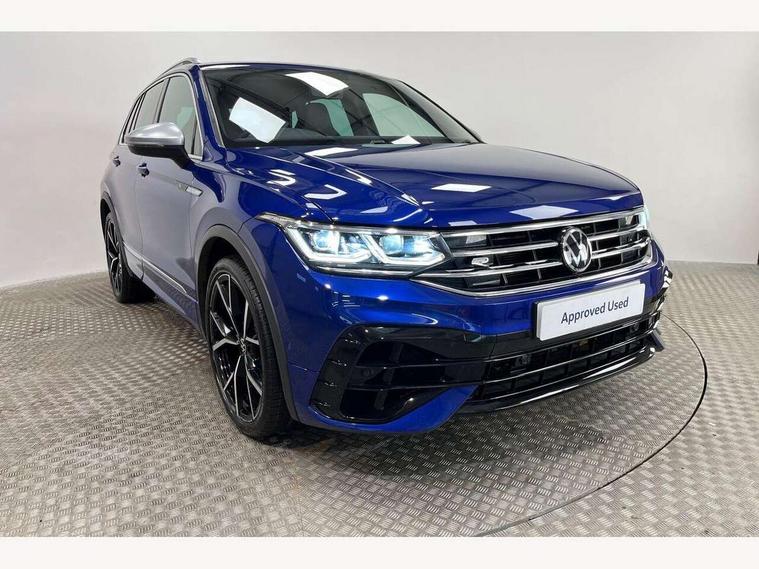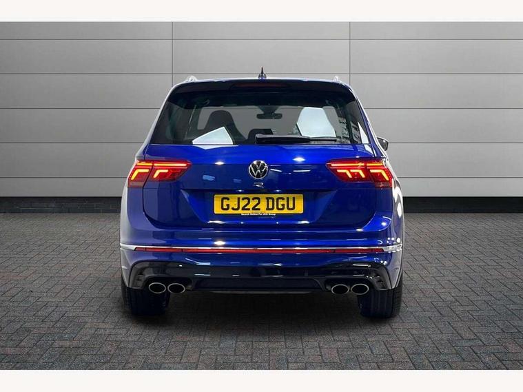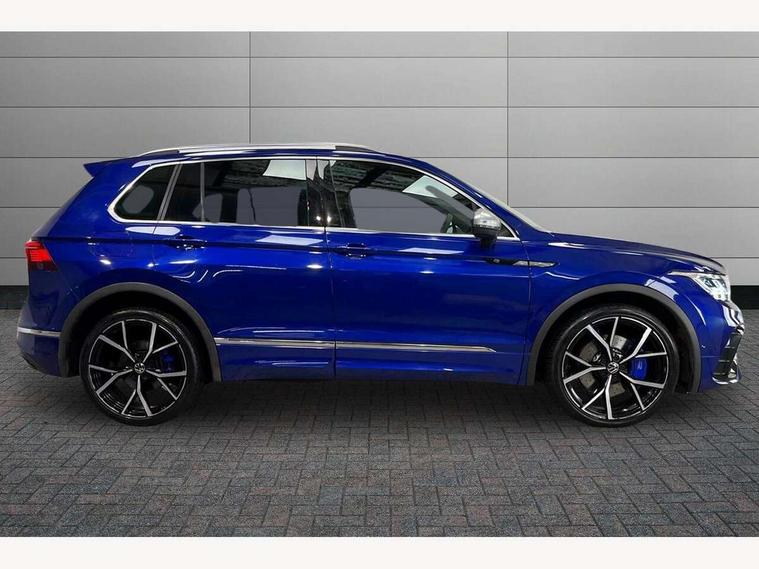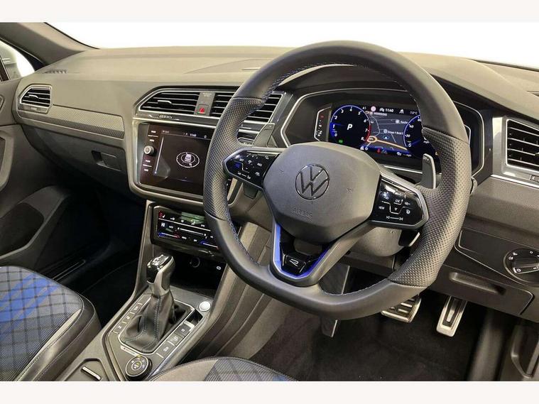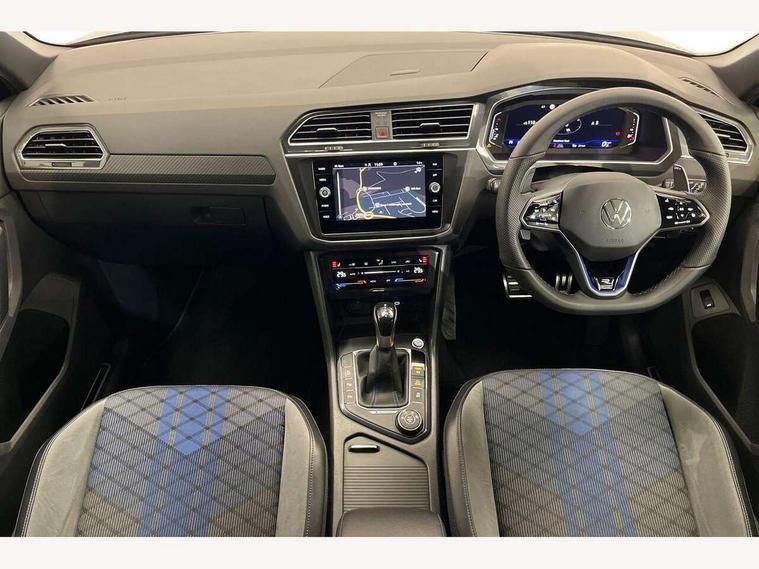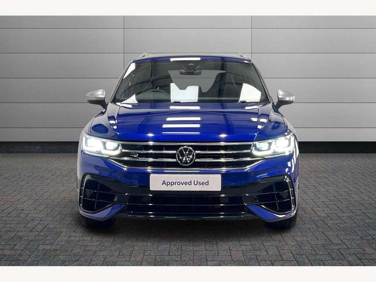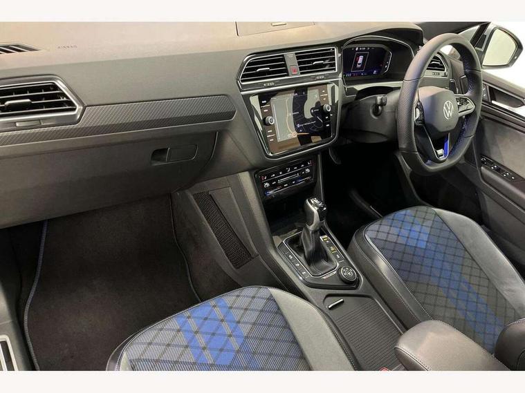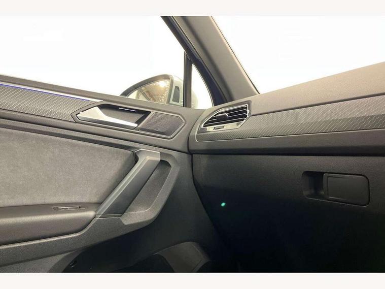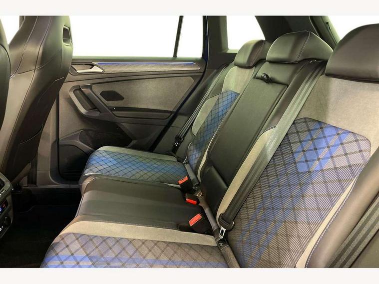 Adaptive cruise control ACC stop and go including speed limiter, App-Connect incl. App-Connect Wireless for Apple CarPlay and Android Auto, Bluetooth phone integration system, Distance control assist, Driver alert system, Driver profile selection, Dynamic road sign display, eCall emergency call system, Electromechanical speed sensitive power steering, Engine start/stop button, Instrument cluster mph speedometer Great Britain, Lane keeping system Lane Assist, Lights on warning, Motorised electric tailgate operated via key fob, drivers door and foot movement under tailgate, Multifunction front facing camera, Outside temperature display, Premium multifunction display with multi colour display, Remote control boot opening, Rev counter, Revision / skills operating concept travel assistant, Service interval indicator, Speed limit display, Start/stop system with regenerative braking, Tailgate/trunk lid unlocking from outside, Trip computer, Warning sound and light for doors and tailgate open, ACC - Adaptive chassis contol with adaptive dampers, All wheel drive - 4Motion, Battery regeneration during braking, XDS electronic differential lock for improved traction and handling, 2 USB-C ports in the front, 1 USB-C charging socket on the center console in the rear, Diversity antenna for FM reception, Radio, SD card slot, Simultaneous pairing of 2 compatible mobile devices, SMS functionality - read, compose and send SMS messages using touch-screen display, Title and cover art display, Auto dimming interior rear view mirror, Automatic headlight control system, Body colour door handles, Body coloured door mirrors with integrated indicators, Chrome matt mirror covers, Chrome moldings on the side windows, Coming/leaving home lighting function, Dynamic headlight range control, Front and rear electric windows, Front illuminated door sills with R logo, Heated rear window, High level 3rd brake light, IQ light-Adv high beam, Dynamic light assist for LED matrix headlamp+LED separate DRL+DCL, dark red rear LED tech, Poor weather light+ cornering light, Laminated safety glass windshield, heat and sound insulating, LED rear number plate lights, License plate carrier in front and rear, Poor weather light and cornering light, Privacy glass for rear side windows and rear window, R-Logo light projection, R-Logo on radiator grille with side panels and rear, R-specific diffuser, painted black with cut out for trailer hitch, R-Specific front and rear bumpers, Rain sensor windscreen wipers, Rear fog lamp, Rear side wing doors, Rear spoiler in R style, Rear windscreen washer and wiper with interval delay, Side and rear windows in heat insulating glass, Silver anodised roof rails, Trailer Stability Programme, Windscreen wipers/ intermittent wipe + 4 position delay, 12V outlet in center console rear and in luggage compartment, 12V outlet in front and tray, 2 cup holders in front, 2 LED front reading lights, 2 LED rear reading lights, 3 bench rear seats in 2nd row, 3 rear headrests, 4 load lashing points, 40:20:40 split folding rear seats, Air Care Climatronic 3 zone automatic climate control with enhanced air filter and controls in the rear, Backrest release for left front seat, Black headlining, Climate control unit rear with touch function, Door and side trim panel in foam film, insert in leatherette, Floor mats with R-Logo and stitching, Front centre armrest, Front footwell illumination, Front seats head restraints (x-adjustment), Height adjustable front seats, Height/reach adjust steering wheel, Instrument lighting white adjustable panel illumination, Interior light with delay, Isofix Preparation 2 Rear child seats, Leather gear knob, Lighting door sill trim at front with R Logo, Lockable cooled glovebox, Luggage compartment lighting, Luggage net, Pedals and footrest in stainless steel, R Performance steering wheel with R button, larger paddle shifters, blue stiching and blue steering wheel clip, R Specific key caps, R-specific sport skin with R Logo in active Info dsiplay, R-taster (direct selection of race mode/ flap control), Rear bench seat asymetrically split folding, longitudinally movable and folding with load-through hatch and center armrest, Remote unlocking for rear seat backrest, Removable luggage cover, Removable rear headrests, Safety optimised front head restraints, Single front passenger seat, Sliding/reclining rear seats, Standard rear seat release, Storage compartment in driver's door, Storage compartment in passenger's door, Storage compartment in rear doors, Storage compartments in luggage area left and right, Storage tray on dashboard, Sun visors with illuminated vanity mirrors, Top sports seats integrated headrest, blue R-Logo in front seats, seat centre panels and outer rear seats in fabric inner side bolster art Velors, Variable boot floor, height adjustable and removable, Ambience pack - Tiguan, Easy open and close pack with safelock - Tiguan, Park assist pack - Tiguan, 3 point seat belt for centre rear seats, 3 point seat belts with seat belt pretensioners for the outer rear seats, Active bonnet, Curtain airbags for front and rear passengers, Driver/Front Passenger airbags, Drivers knee airbag, Electronic parking brake with auto hold, Electronic Stability Control with driver steering recommendation, ABS, ASR, EDL, EDTC and trailer stabilization, Front assist with autonomous emergency braking (for Adaptive Cruise Control ACC up to 130 mph), Front disc brakes, Front passenger airbag deactivation, Front side airbags, Height adjustable front 3 point seatbelts + pretensioners, Hill hold control, Manual child proof rear door locks, Pedestrian monitoring system, Power assisted brakes, Proactive passenger protection system in combination with front assist, Rear disc brakes, Rigid safety cell with front and rear crumple zones, Two tone horn, Tyre pressure monitoring system, Warning sound and light for front seat belts if unfastened, Anti theft alarm system with interior monitoring, backup horn and towing