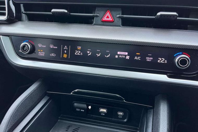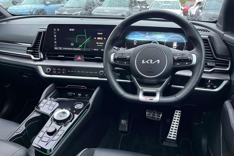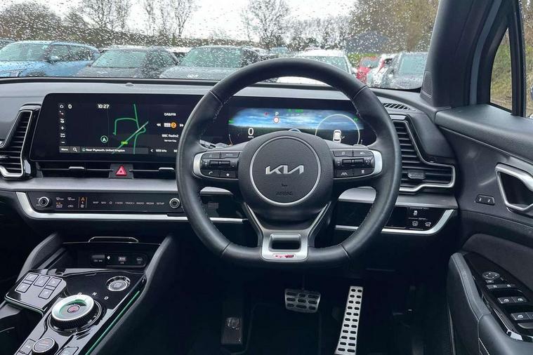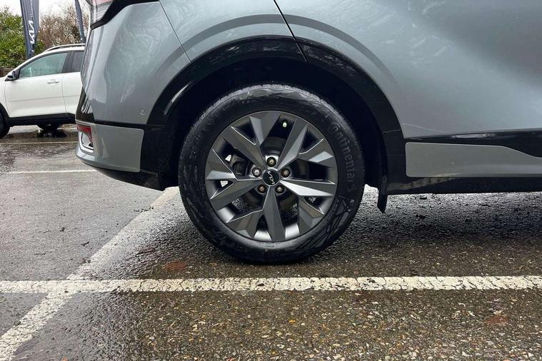 12.3" Display with navigation, 12.3" supervision colour cluster display, 360 degree around view monitor, Apple car play/Android Auto with voice control, Blind spot collision avoidance assist, Blind spot view monitor, Drive mode selector, E-call, Forward collision avoidance assist (FCA) - city/pedestrian/cyclist/junction covering, Front and rear parking sensors, Highway Driving Assist (HDA), Intelligent speed limit assist, Kia Connect (UVO), Lane Following Assist (LFA), Lane keep assist, Low washer fluid warning, Parking collision avoidance assist (PCA), Remote smart parking assist, Reversing camera system integrated into centre fascia screen, Smart cruise control with stop and go functionality, Smart power tailgate, Speed sensitive power steering, Trip computer, Windscreen washer level indicator, Wireless Smartphone charger, Intelligent Stop and Go, Terrain mode select (Mud, Snow, Sand), Bluetooth audio streaming, DAB Radio with MP3, Harman Kardon premium sound system, Rear USB port, Steering wheel mounted audio controls, USB C type charging ports on centre console, USB C type charging ports on side of front seats, USB port for connection of a media device, All round electric windows with drivers and front passenger auto up/down function, Automatic headlight control system, Automatic window defogger, Backlite glass heated with timer, Body colour and black bumper with silver accents, Body colour exterior door handles, Body colour radiator upper garnish and door garnish, Dual LED adaptive headlamps, Electric panoramic glass sunroof (Electric one touch with safety function), Electrically adjustable/heated/folding door mirrors with LED indicators, Front and rear skid plate - chrome, Gloss black door mirrors, Gloss black radiator grille, Gloss black side sill and wheel arch body mouldings, Glossy black roof rack, High beam assist, Interior electrochromic mirror, LED daytime running lights, LED front fog lamps, LED High mounted stop light, LED rear combination lamp, Rain sensing wipers with aero blades, Rear fog lamp, Rear privacy glass, Rear side wing doors, Rear spoiler, Rear wiper, Satin finished beltline, Silver coloured inserts to bumpers, Tinted rear glass, Trailer stability assist, 10 way driver/8 way passenger electrically power adjustable seats, 12V power socket in front centre fascia and luggage compartment, 3 seat bench in 2nd row, 3 x passenger assist grips, 40/20/40 split folding rear seat, All-round height adjustable headrests, Ambient lighting, Black headlining, Centre console storage box, Cupholders in rear armrest, D-Shaped sports leather steering wheel and perforated inserts with GT-Line logo, Door courtesy lamps, Drink holder at centre armrest, Driver and front passenger side sunvisors with illuminated vanity mirrors, Driver seat memory function, Drivers seat power lumbar support, Front and rear door storage, Front seat and rear pockets, Front/rear centre armrests, Gear shift indicator, Glovebox illumination, Heated front and outer rear seats, Heated steering wheel, Interior door lock/unlock function, ISOFIX Child seat top tethers and anchor fixings outer rear seats, LED interior personal lamp, LED lighting in overhead console, Luggage area LED light, Luggage area load cover, Luggage net with hooks, Metal paint interior door handles, Paddle shift controls, Rear cabin light, Rear coat hooks, Single front passenger seat, Sports pedals, Suede leather upholstery, Three zone climate control, Tilt/telescopic adjustable steering wheel, Ventilated front seats, Ventilation ducts to rear compartment, Active front headrests, All round 3-point seatbelts, Anti-lock braking system (ABS), Dual front side airbags, Dual horn, Electronic parking brake, Electronic stability control with downhill brake control, Front passenger airbag cut-off switch, Front seatbelt pretensioners + load limiters, Height adjustable front seatbelts, Hill start assist control (HAC), Impact sensing auto door unlocking, Multi collision brake assist, Rear door child safety locks, Rear seat alert system, Traction control, Twin curtain airbags, Twin front airbags, Tyre pressure monitoring system, Advanced anti-theft system including immobiliser and alarm, Door deadlocks, Engine Start/Stop Button with Smart Entry System, Locking wheel nuts, Speed sensitive auto door locking, Visible vehicle identification number, Aluminium pattern finish centre fascia and door garnish, 18" GT-Line alloy wheels, Michelin tyres, Tyre mobility kit,
