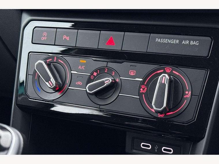 'Lights On' Reminder warning buzzer, Adaptive cruise control including front assist, forward collision warning, autonomous emergency braking, speed limiter, Bluetooth telephone and audio connection for compatible devices, Car information display, Driver alert system, eCall emergency call system, Lane assist, Multifunction computer with visual gear change recommendation for fuel consumption, Power assisted speed sensitive steering, Speedo, rev counter, electronic odometer, trip, service interval display, exterior temperature and fuel gauge, Stop/start system, Warning sound and light for doors and tailgate open, Warning sound and light for front seatbelts unfastened, We Connect Go Dongle, Wireless Car net app connect with Apple CarPlay, combined functionality of Apple CarPlay/Android Auto and MirrorLink, Battery regeneration during braking, Misfuel prevention device, 2x USB connection with USB charging sockets and in rear centre console, DAB Digital radio receiver, Diversity antenna for FM reception, Multi device interface (MDI) with USB connection, Music playback - MP3, WMA and AAC files, Premium USB cable for Apple or Android smartphone compatibility, Simultaneous pairing of 2 compatible mobile devices, Title and cover art display, Automatic dimming interior rear view mirror, Automatic hazard lights activation under emergency braking, Black roof rails, Body colour door handles, Body coloured bumpers, Dusk sensor + automatic driving lights, Front and rear electric windows, Front fog lights with static cornering function, Galvanised body, Heated rear window, High level 3rd brake light, Lower door sills and door pillars in black, Manual coming/automatic leaving home lighting function, Radiator grille with high gloss surface and chrome strip, Rain sensor, Rear lights incorporating LED technology, Rear window aerial, Rear windscreen washer and wiper with interval delay, Reflectors in all doors, Tailgate with integrated roof spoiler, Windscreen wipers/ intermittent wipe + 4 position delay, 12V Accessory socket in centre console, 3 rear head restraints and 3 rear three point seat belts with ECE label, 60/40 split folding rear seat backrest, Drawer under drivers seat, Driver and front passenger sunvisor with vanity mirror, Driver's sunvisor with ticket holder, Dust and pollen filter, Front and rear reading lights X 2, Front centre armrest with storage compartment, Front seat back storage pockets, Glovebox, Heating and fresh air system with 4 stage blower, Height/reach adjust steering wheel, Instrument lighting white adjustable panel illumination, Interior light with delay, Isofix child seat preparation for 2 rear child seats, Luggage compartment cover, Luggage compartment lighting, Manual front seats with height adjustment, Moveable and foldable Rear bench seat, Storage compartment in drivers and front passengers door, Three spoke multi-function leather trimmed steering wheel and gearknob, Variable boot floor, Anti-lock Braking System (ABS) with Hydraulic Brake Assist (HBA), Automatic post collision braking system, Driver and front passenger safety-optimised head restraints, Drivers and Front Passengers airbags with front passengers airbag deactivation switch, ESC with EDL, ASR, EDTC and trailer stabilisation function, Extended and proactive pedestrian protection, Front and rear curtain airbags, Front seat side impact airbags, Height adjustable 3 point automatic front seatbelts with pretensioners, Hill start assist, Pre crash preventive occupant protection, Rigid safety cell with front and rear crumple zones, Tyre pressure loss indicator, Volkswagen roadside assistance, Alarm with interior protection and deactivation via infotainment system, Child security locks in rear doors, Electronic engine immobiliser, Remote tailgate unlocking using key fob,