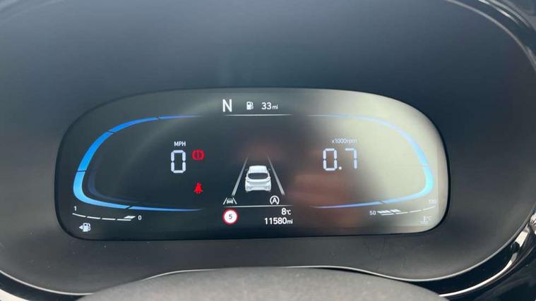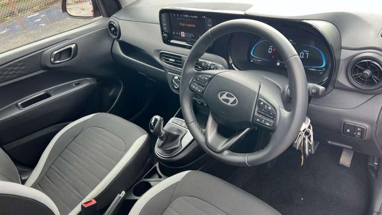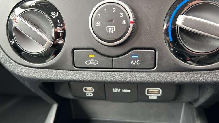 Apple car play/Android Auto, Bluelink mobile remote connectivity, Bluetooth connectivity with voice recognition, Cruise control, Driver attention alert system, eCall emergency call system, Forward Collision-Avoidance Assist (FCA) - Pedestrian/Cyclist, Front USB-C charging and USB-A data, Full-width 4.2" LCD instrument cluster, Intelligent speed limit assist, Lane departure warning system with lane keep assist - LKAS, Lane follow assist, PAS, Rear parking sensors, Rear view camera with guidelines, Roadside assistance, Start/Stop function, Tailgate, Trip computer, 2 front/2 rear speakers, Rear USB-C device charger, Steering wheel audio, phone and cruise controls, 1 speed non intermittent rear windscreen wiper, Black finish on B pillars, Body colour door handles, Body coloured bumpers, Body coloured door mirrors, Electric front windows, Electric rear windows, Electrically adjustable and heated door mirrors, Flat metal emblem, Front grille in matte black, Front intermittent wipers, Halogen daytime running lights, Halogen headlights, Headlights inner with Black Blade design, Heated rear window, High beam assist, Indicator light on door mirrors, Rear roof spoiler with integrated LED brake light, Rear side wing doors, 12v power outlet - front, 3 seat bench in 2nd row, 60/40 split folding flat to floor rear seats, Air conditioning, Auto light control, Bottle holders in front/rear doors + front centre console, Cabin and luggage compartment interior lighting, Cloth upholstery, Driver + passenger vanity mirrors, Driver's seat height adjustment, Driver/passenger sunvisors with ticket holders, Floor mats, Front door pockets, Front Head Restraints - Vertical and Horizontal Adjustment, Glove compartment, Height adjustable steering column, Isofix child seat preparation, Leather multifunction steering wheel, Rear door pockets, Single front passenger seat, Vertical adjustment rear head restraints, 3x3 point rear seatbelts, Airbags - front, front side and curtain airbags, Anti-lock brake system (ABS), Autonomous emergency braking (AEB) with forward collision warning system, Brake assist function, Childproof rear door locks, Electronic stability control, Front and rear seatbelt reminder, Front seatbelt pretensioners, Hill start assist control (HAC), Passenger airbag deactivate switch, Traction control, Tyre pressure monitoring system, Immobiliser, Perimeter alarm, Rear occupant alert, Remote central locking, Second remote key, Speed sensitive auto door locking, 15" Alloy wheels, Tyre repair kit,