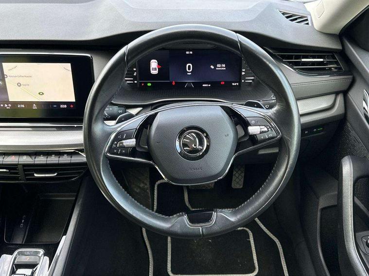 1x USB Type C port in rear view mirror (charging only), 2x USB Type C ports in rear of front centre armrest (charging only), Bluetooth system, Boot lid release from inside vehicle (electrically), Colour multifunction trip computer, Columbus satellite navigation with 10" touchscreen display, Electro-mechanical power steering, Front and rear parking sensors with manoeuvre assist, Front assist system, Smartlink (includes android auto and mirrorlink), Speed limiter, Turn Assist, Virtual Cockpit - 10.25" digital display, Voice control system, Wireless SmartLink for Apple Car Play, 2x USB Type C ports (for charging and data transfer), 8 speakers, DAB Digital radio, Aero front windscreen wipers with intermittent function, Black window surrounds, Body colour door mirrors and handles, Chrome grille surround, Dimming rear view mirror, Electric front and rear windows, Electrically adjustable and heated door mirrors, Heated rear windscreen, High level third brake light, Ice scraper in fuel cap, Rain and light sensors, Rear fog light on one side, 3 rear headrests, 4 foldable roof handles, Chrome inner door handles, Climatronic dual-zone electronic air conditioning, Cloth upholstery, Front centre armrest, Front head restraints, Height adjustable driver and passenger seat with lumbar support, Illuminated air conditioned glovebox, Leather trimmed gearshift lever, Luggage compartment lighting x1 light, Parcel shelf - folding, Satin black textured with artificial stiching in dash board pads, Sun visors with mirrors, Sunglasses storage, Textile floor mat set, Ticket holder, Two-spoke leather multi function steering wheel with paddles, Umbrella in door panel, Unsplit rear bench seat and split folding backrest, 3 point front/outer rear seatbelts+pre-tensioners, Alarm with interior monitoring, tilt sensor and back up horn, Automatic door unlocking in case of crash, Automatic fuel cut off in case of crash, Automatic warning lights in case of emergency braking, Driver and passenger front and side airbags, Drivers knee airbag, Electronic parking brake, Emergency call and proactive services, ESC including ABS, EBV, MSR, ASR, EDS, HBA, DSR, Head and curtain airbags, Hill hold control, Hill start assist, ISOFIX on front passenger seat and outer rear seats, Passenger airbag deactivate switch, Power child locks on rear doors, Rear disc brakes, Two tone horn, Tyre pressure monitor, Visual and acoustic seat belt reminder, Warning reflectors in front door, Door locks with immobiliser, Keyless start/stop, Remote central locking, Aluminium decorative inserts,