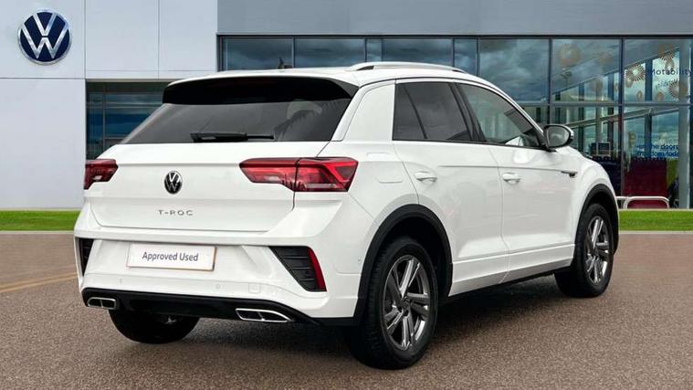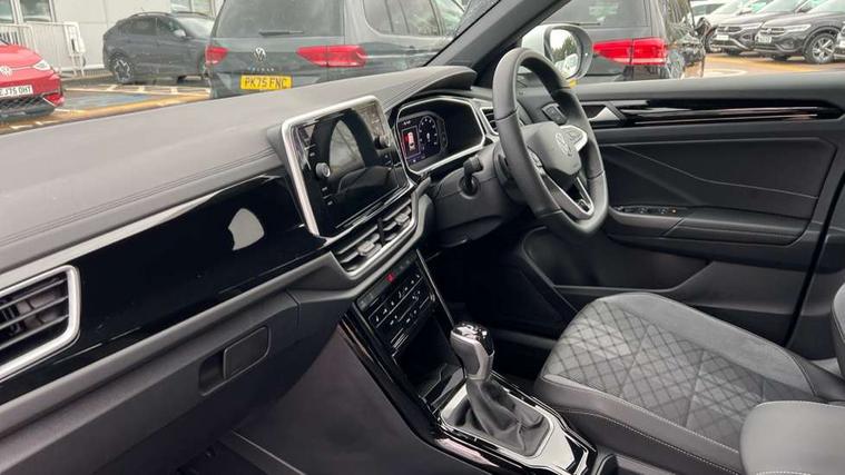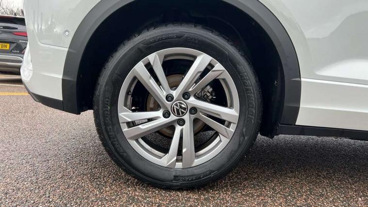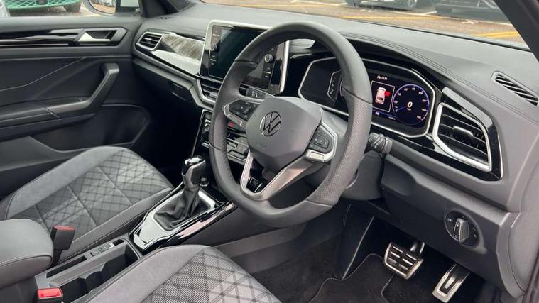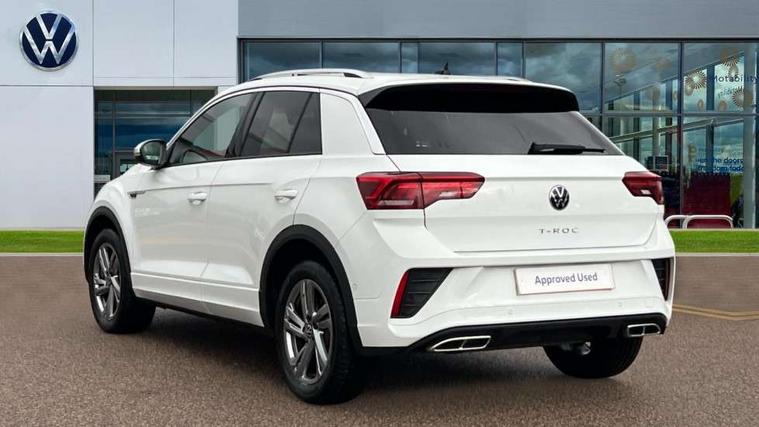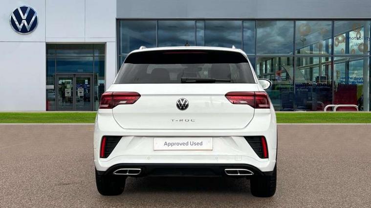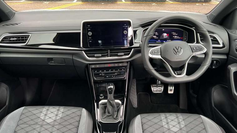 10.25" Digital cockpit pro, Advanced driver attention and drowsiness monitor, Dynamic road sign display, Emergency call service, Lane keeping system Lane Assist, Mobile phone interface, Modified key software - reduce switch off time for key status change to Long no motion, Online services, Park assist including front and rear parking sensors, Service interval indicator, Tailgate/trunk lid release from outside, Think blue trainer driver tips and journey analysis, Warning sound and light for front seatbelts unfastened, Wireless app connect, Battery regeneration during braking, Start/stop function with battery regeneration, DAB Digital radio, Diversity antenna for FM reception, Front and rear 6 speakers, Music playback - MP3, WMA and AAC files, Premium USB cable in choice of either Apple or Android smartphone compatibility, SD card slot, Simultaneous pairing of 2 compatible mobile devices, Title and cover art display, We Connect and We Connect Plus functionality, Auto dimming interior rear view mirror, Automatic hazard lights activation under emergency braking, Automatic headlight control with LED separate daytime running lights with coming/leaving home function, Body coloured exterior mirror housings and door handles, Electrically adjustable and heated door mirrors, Extended roof spoiler, Exterior mirrors aspherical on driver side, convex on front passenger side, External USB type C socket and charging sockets, Front windscreen wiper with intermittent wipe and 4 position delay, Heated rear window, LED 3rd brake light, LED rear combination lamps, LED rear number plate lights, Power windows with comfort operation and circuit breaker, Privacy glass for rear side windows and rear window, R-Line design body coloured bumpers, Rain sensor, Rear exhaust tailpipe, Rear fog light on one side and reversing lights on both sides, Rear side wing doors, Rear wash/wipe with intermittent wipe setting, Remote electrically foldable door mirrors, puddle lights and reverse activated passenger's door mirror, 12V power socket in centre console, 3 rear head restraints, 3 seat bench in 2nd row, 4 load lashing points in luggage compartment, Air care climatronic air conditoning system with active combination filter and 2-zone temperature control, Black roof lining, Chrome plated decorative trims, Chrome plated radiator grille inserts, air vent surrounds and light switch surrounds, Door and side trim panel with leatherette insert, Front + rear carpet mats, Front centre armrest, Front cupholders x 2, Front footwell illumination, Front reading light, Front scuff plates with R Line logo, Front seat back storage pockets, Glove compartment door with light, Instrument lighting, white adjustable panel illumination, Interior ambient lighting and surround lighting, Interior light delay, Isofix child seat preparation, Leather gearshift handle, Load-through provision with cup holder when folded down ('Unsplit rear seat bench, split folding backrest, with centre armrest), Luggage compartment lighting, Single front passenger seat, Stainless steel pedals, Storage compartment in left and right luggage area, Storage compartment in rear doors, Storage compartments in driver and front passenger doors, Sunvisors with illuminated vanity mirrors, Variable boot floor, height adjustable and removable, Driver assistance pack without proactive passenger protection - T-Roc, 3 point height adj front seatbelts + pretensioners, 3 point seatbelts in outer rear with ECE label, ABS, Child locks on rear doors, City emergency braking and pedestrian monitoring, Driver and front passenger airbag with front passenger airbag deactivation, Driver and front passenger safety-optimised head restraints, Drivers seatbelt reminder, Electronic parking brake, Electronic Stability Control (ESC) inc EDL (Electronic Differential Lock) and ASR (Traction Control), Front and rear passengers curtain airbag system including front side airbags, Hill start assist, Predictive pedestrian protection, Rear disc brakes, Two tone horn, Tyre pressure loss indicator, Volkswagen roadside assistance, Piano black decorative inserts in dashboard and front door trim panels, Trims for alloy wheels,