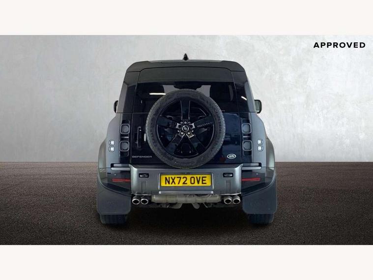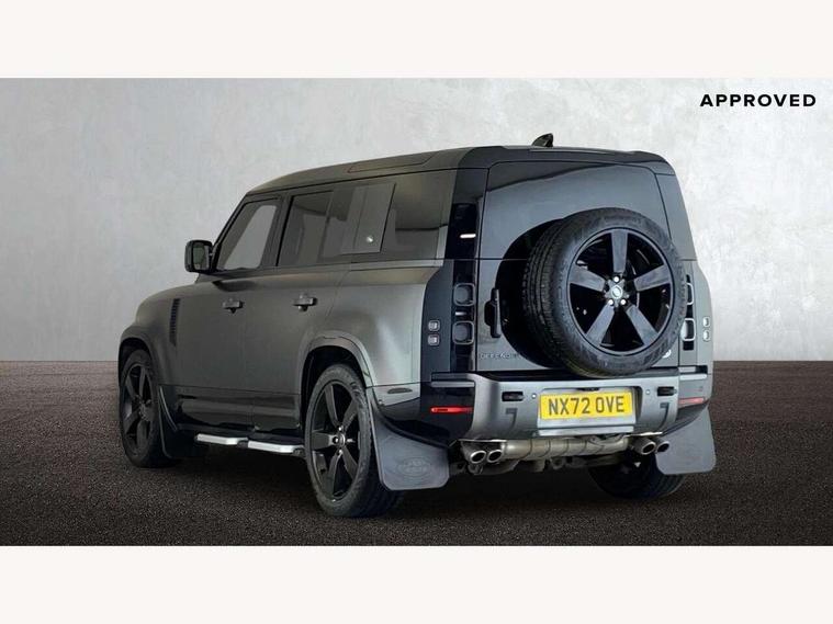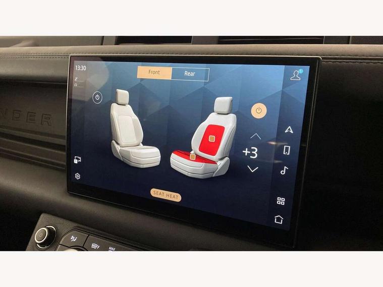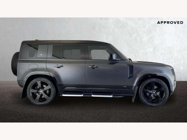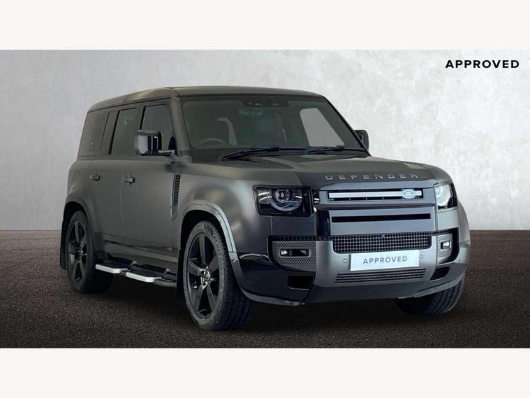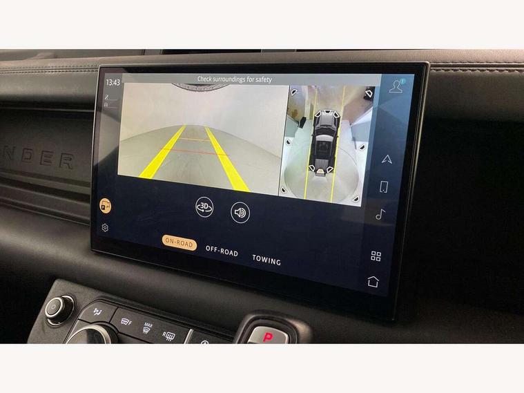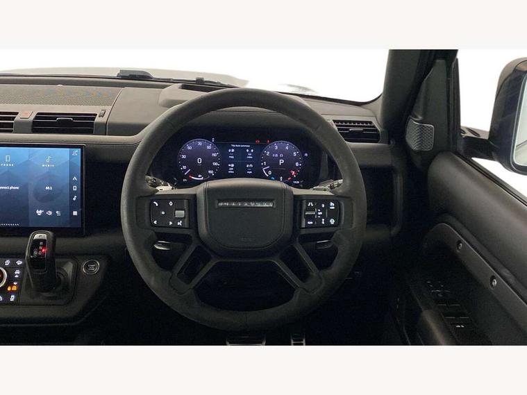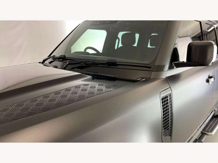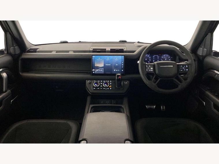 11.4" touchscreen, 360 degree parking aid, 3D Surround Camera with 360 View, 180 Rear View, Front Traffic Detection, Forward Vehicle Guidance, Tow Hitch Assist and clear sight Ground View, Adaptive cruise control, Android Auto, Apple CarPlay, Assisted tailgate with soft close, Blind spot assist, Bluetooth system, Brake pad wear indicator, Clear exit monitor, Connected navigation pro, Driver condition monitor, Electric power assisted steering (EPAS), Garage door opener (Homelink), Head up Display, Lane keep assist, Push button start, Rear collision monitor, Rear traffic monitor, Traffic sign recognition with adaptive speed limiter, Trip computer, Wade Sensing, Wireless device charging with phone signal booster, 8 speed automatic transmission, Adaptive dynamics, All terrain progress control, All wheel drive system, Configurable Terrain Response, Electronic active differential with brake torque vectoring, Electronic air suspension, Terrain Response 2 with dynamic program, Twin speed transfer box, DAB Radio (Digital Audio Broadcasting), Meridian 700w surround sound audio system with 15 speakers, Pivi pro connected, Advanced tow assist, Automatic headlight levelling, Automatic headlights, Black contrast bonnet, Black contrast roof, Black contrast tail door, Centre high mounted stop light, ClearSight interior rear view mirror, Darkened LED tail lights, Electric heated/power fold door mirrors with approach lights and auto dimming driver side, Electric windows with one touch open/close and anti-trap, Electrically deployable towbar, Follow me home lighting, Front fog lights, Gloss black contrast tail door, Headlamp power wash, Heated rear window with timer, Heated washer jets, Heated windscreen, Illuminated metal treadplates with V8 branding, Less roof rack or roof rails, Matrix LED headlights with signature DRL, Premium metallic paint, Privacy glass, Puddle lights, Quad outboard mounted exhaust pipes, Rain sensing windscreen wipers, Rear fog lights, Rear side wing doors, Rear wiper, Satin Protective Film, Side hinged tailgate, Signature graphic (with interior storage), Sliding panoramic roof, Solar attenuating windscreen, Trailer stability assist, V8 badge, 12V power socket in loadspace, 14 way heated and cooled electric adjustable memory front seats with 4 way manual headrests, 3 seat bench in 2nd row, 40:20:40 folding, heated rear seats with centre armrest, Air quality sensor, Alpine lights, Bright metal pedals, Cabin Air Purification plus, Domestic plug socket, Durable rubber cabin flooring, Durable rubber loadspace flooring, Ebony morzine headlining, Electric cabin pre conditioning, Electric reach + rake adjustable steering column, Extended leather upgrade, Footwell lights, Front centre console refrigerator compartment, Front passenger isofix child seat attachment, Heated steering wheel, Leather gearshift, Loadspace cover, Loadspace Hook, Multifunction steering wheel, Overhead stowage for sunglasses, Premium cabin lighting, Rear headrests, Rear ISOFIX, Rear reading lights, Satin chrome gearshift paddles, Single front passenger seat, Standard seat configuration, Storage glovebox, Suedecloth steering wheel, Sunvisors with illuminated vanity mirrors, Three-zone Climate Control with Rear Cooling Assist, Twin front cupholders with cover, Carpathian exterior pack - Defender, Online pack with data plan - Defender, 5 x 3 point seatbelts, ABS, Brake hold function, Cornering brake control (CBC), Cross car beam in satin black powder coat brushed finish, Customer configurable autolock, DSC - Dynamic Stability Control, EBD - Electronic brakeforce distribution, Electric parking brake (EPB), Emergency brake assist, Emergency braking, ESP + traction control, Front airbags with passenger seat occupant detector, HDC - Hill descent control, Hill launch assist, Low traction launch, Power operated child locks, Remote for (e-Call, Optimised assistance call, InControl app, Climate, beep and flash and door), RSC - Roll stability control, Seat belt reminder, TPMS (Tyre pressure monitoring system), Activity key, Alarm, Immobiliser, Intrusion sensor, Keyless entry, Locking wheel nuts, Robustec veneer,