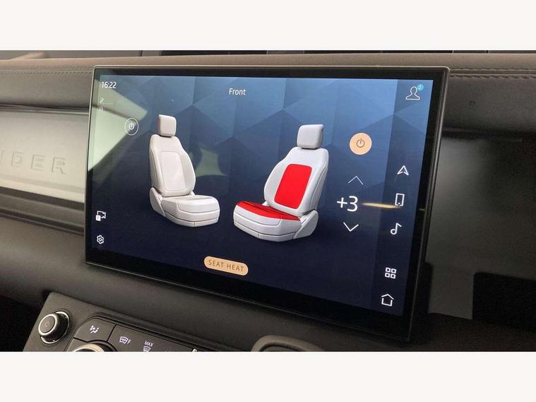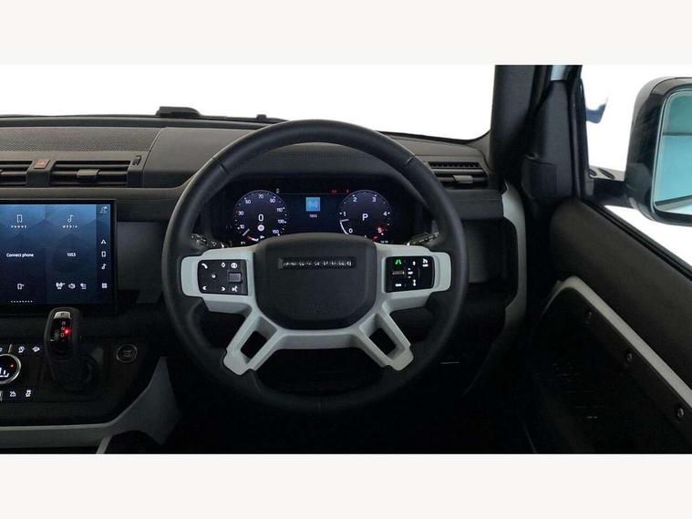 1 x USB-C (power only) & 1 x USB-C (power & data) in Row 1, 2 x USB-C in Row 2, 11.4" touchscreen, 360 degree parking aid, 3D Surround Camera with 360 View, 180 Rear View, Front Traffic Detection, Forward Vehicle Guidance, Tow Hitch Assist and clear sight Ground View, Adaptive cruise control, Android Auto, Apple CarPlay, Blind spot assist, Bluetooth system, Brake pad wear indicator, Clear exit monitor, Connected navigation pro, Driver condition monitor, Electric power assisted steering (EPAS), Interactive driver display, Lane keep assist, Push button start, Rear collision monitor, Rear traffic monitor, Traffic sign recognition with adaptive speed limiter, Trip computer, Wireless device charging, 8 speed automatic transmission, All wheel drive system, Twin speed transfer box, DAB Radio (Digital Audio Broadcasting), Meridian 400w sound audio system with 11 speakers and subwoofer, Pivi pro connected, Automatic headlight levelling, Automatic headlights, Black exposed rear recovery eyes, Body coloured bonnet, Centre high mounted stop light, Electric heated/power fold door mirrors with approach lights and auto dimming driver side, Electric windows with one touch open/close and anti-trap, Follow me home lighting, Heated rear window with timer, Heated windscreen, Illuminated metal treadplates with brand name script, LED tail lights, Privacy glass, Puddle lights, Rain sensing windscreen wipers, Rear fog lights, Rear side wing doors, Rear wiper, Side hinged tailgate, Standard tail door, Trailer stability assist, X-Dynamic badge, 12V power socket in loadspace, 3 seat bench in 2nd row, Alpine lights, Configurable cabin lighting, Durable rubber cabin flooring, Durable rubber loadspace flooring, Footwell lights, Front head restraints, Front passenger isofix child seat attachment, Loadspace cover, Loadspace Hook, Multifunction steering wheel, No flat load floor storage, Overhead stowage for sunglasses, Rear headrests, Rear ISOFIX, Rear reading lights, Single front passenger seat, Standard seat configuration, Storage glovebox, Sunvisors with illuminated vanity mirrors, Twin front cupholders, Non-smoker package, Online pack with data plan - Defender, 5 x 3 point seatbelts, ABS, Brake hold function, Cornering brake control (CBC), Customer configurable autolock, Driver and passenger airbags, DSC - Dynamic Stability Control, EBD - Electronic brakeforce distribution, Electric parking brake (EPB), Emergency brake assist, Emergency braking, ESP + traction control, Front airbags with passenger seat occupant detector, HDC - Hill descent control, Hill launch assist, Low traction launch, Power operated child locks, Remote for (e-Call, Optimised assistance call, InControl app, Climate, beep and flash and door), RSC - Roll stability control, Seat belt reminder, TPMS (Tyre pressure monitoring system), Alarm, Immobiliser, Intrusion sensor, Keyless entry, Locking wheel nuts, Secure tracker pro,