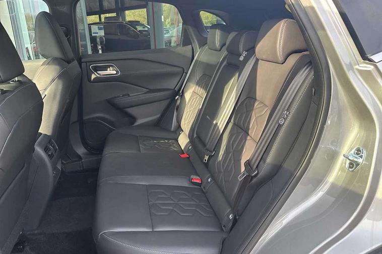 2 front USB-C ports, 2 rear USB-C ports, 360 degree Intelligent around view monitor with moving object detection, Advanced windscreen head up display, Blind spot warning, Drive assist custom mode, Drive modes (sport, normal, eco), Driver drowsiness and attention warning, e-Pedal step, Electric speed sensitive power steering, Emergency and breakdown call, Emergency lane keep assist, Emergency Stop Signal (ESS), Engine start/stop button, EV mode switch, Event data recorder, Front and rear parking sensors, Full Digital 12.3" TFT Digital Combimeter, Google virtual personal assistance, Hands free power tailgate, Idle stop/start system, In-car WIFI hotspot, Intelligent Cruise control (ICC), Intelligent driver alert system, Intelligent forward collision warning, Intelligent lane intervention, Intelligent speed assist, Lane departure warning system, Nissan connect 12.3 inch touchscreen infotainment system, Nissan connect navigation with google maps, Nissan connect services 2.0 (Google Automotive System), Outside temperature sensor, Propilot assist with Navi-Link, ProPilot park, Rear cross traffic alert, Remote control services - door locks, lights, horn and car locator, Reversing detection, Traffic jam pilot, Traffic sign recognition with legal speed adjustment, Trip computer, Wireless Apple CarPlay/Android Auto, Wireless charging pad, Limited slip differential, 6 speakers, AM/FM audio system with DAB, Bluetooth audio streaming, Auto dimming frameless rear view mirror, Auto rear wiper when reversing, Body colour mirror caps, Body coloured door handles, Bodyside mouldings, Chrome side window finisher, e-POWER badging, Electric auto folding door mirrors, Electrically adjustable and heated door mirrors with LED turn indicator, Follow me home headlights, High beam assist, Intelligent auto headlights, LED 3rd brake light, LED daytime running lights, LED headlights with adaptive driving beam, LED rear lights, LED sequential turn lights, One touch front and rear electric windows with remote opening and closing, One touch passenger window, Partially body coloured bumpers, Rain sensing wipers, Rear privacy glass, Rear roof spoiler, Rear side wing doors, Rear styling plate, Reverse tilting door mirrors, Shark fin antenna, Silver roof rails, Splash free rain sensing wipers, Super RED rear LED lights, Super UV and infrared cut glass, Thermaclear heated windscreen, 12v power socket in dashboard and luggage, 3 bench rear seats in 2nd row, 3 rear headrests, 60/40 split folding rear seat bench, Chrome interior door handles, Dark headlining, Driver and passenger sunvisors with illuminated vanity mirrors, Driver seat back pocket, Dual zone automatic climate control with pollen filter, e-POWER shifter, Electrically adjustable driver seat, Electrically adjustable lumbar support for driver, Fixed Glass roof with electric sunshade, Front centre console and armrest, Front cupholders, Front door with bottle holders, Heated front seats, Heated steering wheel, Height adjustable front headrests, Height adjustable passenger seat, Luggage board system, Luggage space lighting, Manual adjustable lumbar support for passenger, Multifunction steering wheel, Passenger seat back pocket, Quilted/PVC upholstery, Rear door bottle holders, Rear seat armrest with 2 cupholders, RGB ambient light (Full area coverage), Single front passenger seat, Smooth leather steering wheel, Tilt/telescopic adjustable steering wheel, Two rear isofix child seat anchorage points with top tether, 3x3 point rear seatbelt pretensioners + load limiters, ABS with EBD and brake assist, Autonomous emergency braking, Child locks on rear doors, Curtain and front side, far side airbags, Driver and passenger airbags, Driver, passenger and 2nd row rear seat belt reminder, Electric handbrake with auto hold function, Front seatbelt pretensioners + load limiters, Height adjustable front seatbelts, Hill start assist, Intelligent blind spot intervention, intelligent front emergency braking, Intelligent rear automatic braking, Tyre pressure monitoring system, Vehicle dynamic control, Engine immobiliser, Intelligent key with walk away lock and approach unlock functions, Remote central door locking with deadlocking, Thatcham alarm, 19" Diamond cut alloy wheels, Tyre puncture repair kit,