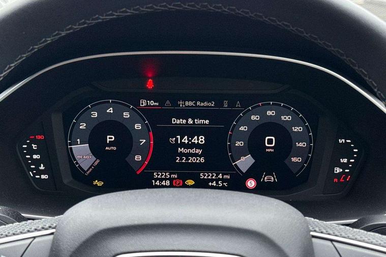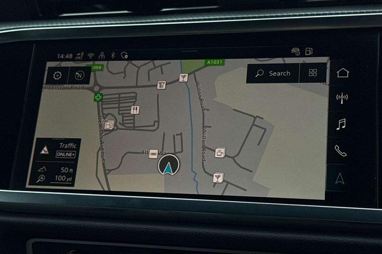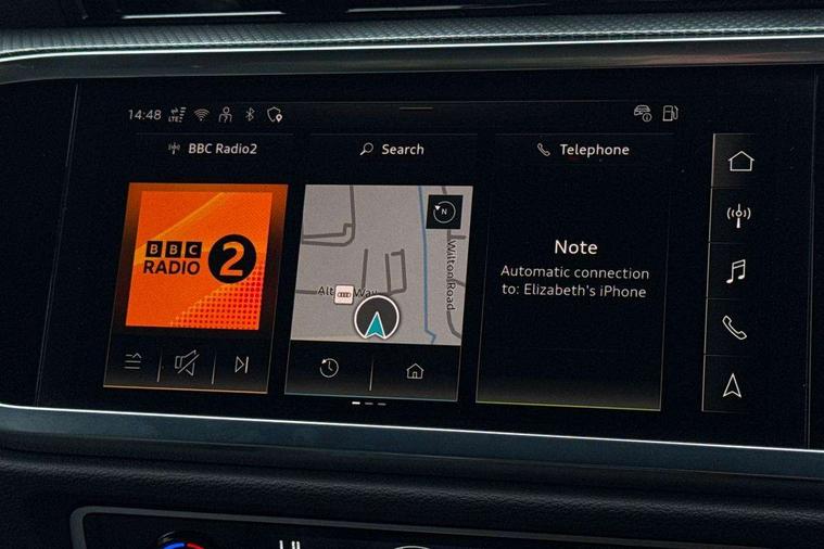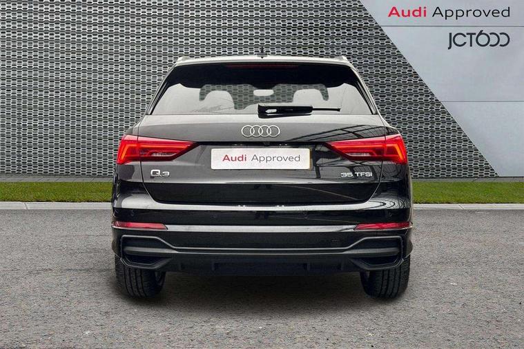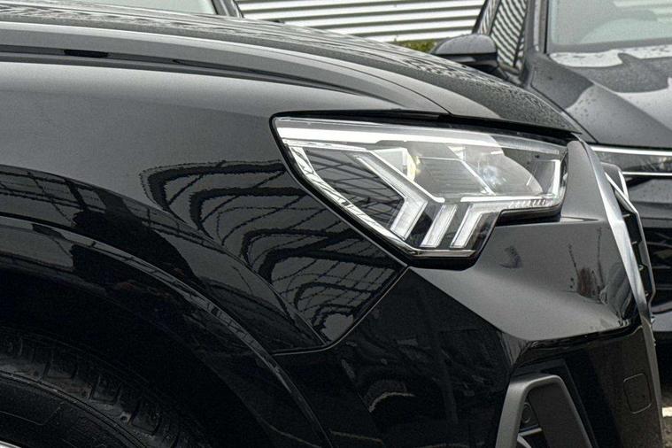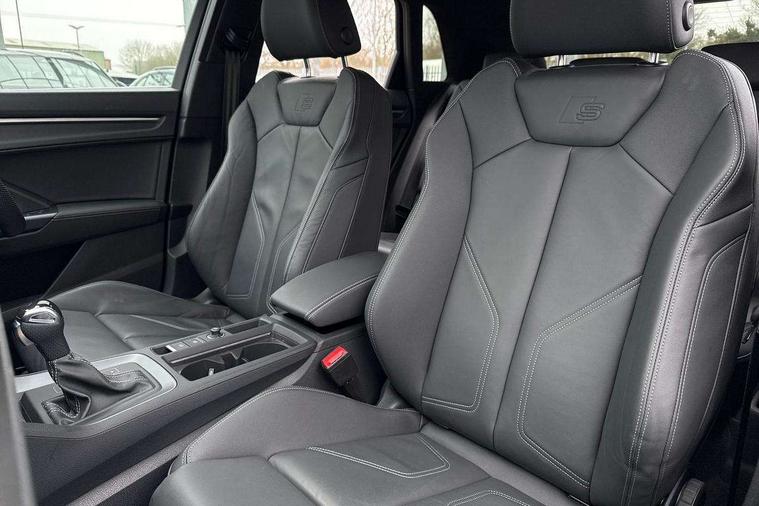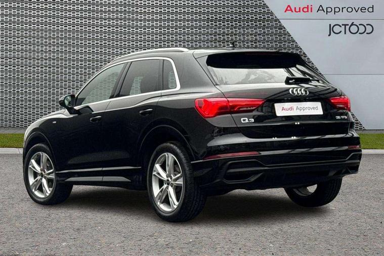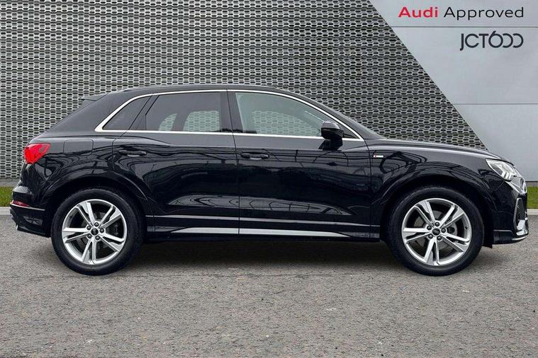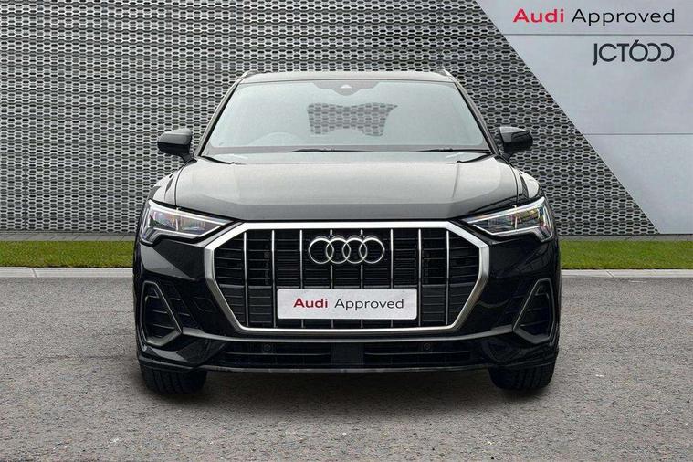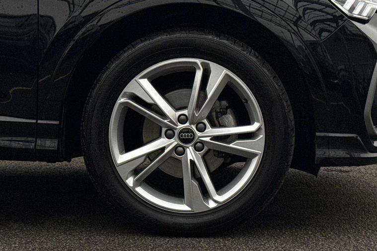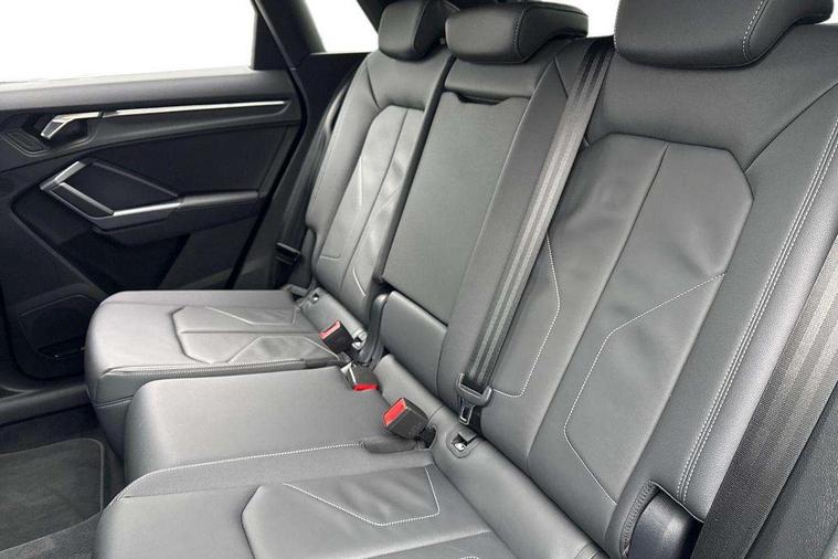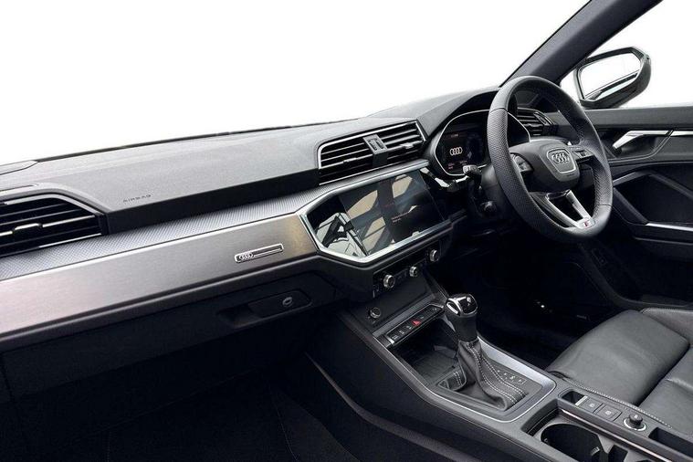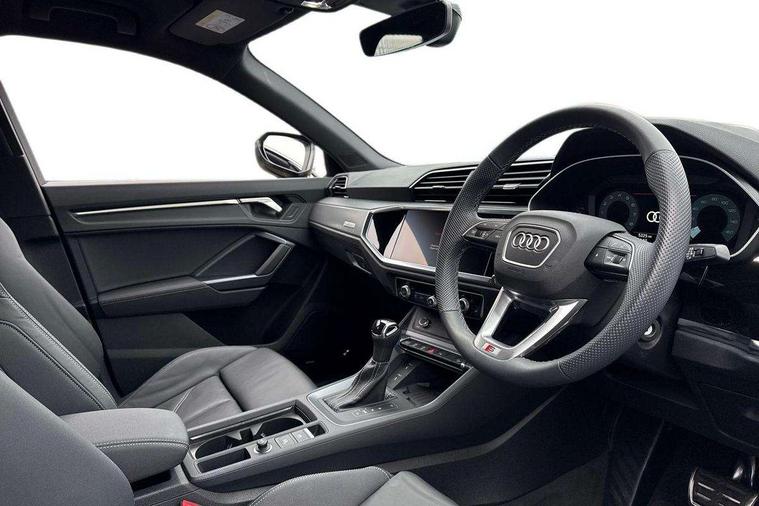 Amazon alexa Integration, Audi connect safety and service, Audi drive select, Audi lane departure warning, Audi Virtual Cockpit - 10.25" display, Bluetooth interface, Camera based traffic sign recognition, Distraction and Fatigue warning, Legal emergency call, MMI Navigation Plus with high resolution 10.1 inch touchscreen colour display, Power operated tailgate, Progressive steering, Service interval indicator, Smartphone interface includes wireless Apple carplay/Android Auto, Start stop system with recuperation, Voice control system with natural language interaction, Sports suspension, 2 USB-C ports with charge and data functions, 6 passive loudspeakers, DAB digital radio module, Acoustic windscreen, Aluminium roof rails, Aluminium window trim, Anthracite black radiator grille, Auto dimming door mirrors, Auto dimming frameless rear view mirror, Body colour front spoiler blade, Electrically folding, adjustable and heated door mirrors with integrated LED side indicators and kerb view function for passenger side, Front and rear electric windows, Front fog lights, Front side air inlets in matt platinum grey, Grille vertical bars in aluminium silver/Matt, High gloss black finish B and C pillars, LED Dynamic rear indicators, LED headlights with LED daytime running lights, LED rear lights, LED third brake light, Privacy glass dark tinted rear and rear-side windows (from B-pillar backwards), Rain and light sensors, Rear diffuser grille in grained matt black, Rear diffuser strip in matt anthracite black, Rear side wing doors, Rear wiper, S line badges on front wings, S line front and rear bumpers and side skirts in contrasting Manhattan grey paint finish, Side skirt insert in matt Platinium grey, Variable front intermittent wipers, 12V socket in rear centre console, 3 seat bench in 2nd row, 3 spoke leather multifunction steering wheel features S badging and grips in perforated leather with contrast stitching, 40:20:40 folding with manual adjustment for 60:40 forwards/backwards position and backrest angle, Adjustable rear seat bench/backrest with centre armrest and cupholder, Black cloth headlining, Dual zone electronic climate control, Electric lumbar support, Front and rear black floor mats with contrast stitching in rock grey, Front and rear headrests, Front centre armrest, Height and reach adjustable steering wheel, Illuminated door sill trims with S logo, ISOFIX child seat mounting for front passenger with airbag deactivation and outer rear seat including top tether attachment point for outer rear seats, Manual front seats with height adjustment, Perforated leather gearknob, Single front passenger seat, Stainless steel luggage compartment sill finisher, Stainless steel pedals, Twin leather upholstery with front sport seats + S embossing, Non smoking pack - Q3, 3x3 point rear seatbelts, 6 airbags - Driver, front passenger, curtain and side windows, Audi pre-sense front with pedestrain and cyclist recognition, Electrically operated child locks on rear doors, Electromechanical parking brake, Electronic stabilisation control including ABS, ASR and EDL, Front seatbelt reminder, Hill descent control, Hill hold assist, Pre sense basic, Seatbelt monitoring, Tyre pressure warning, Warning triangle and first aid kit, Anti theft wheel bolts, Immobiliser, Remote central locking, Thatcham approved category 1 anti theft alarm, Aluminium look interior elements, Dark matt brushed aluminium inlay, Detail dashboard around MMI touch colour display in glass look, black with surround in aluminium look, Leatherette door armrest,
