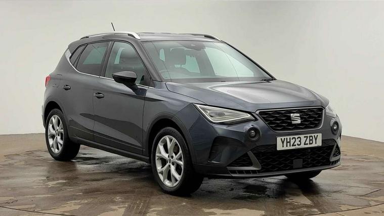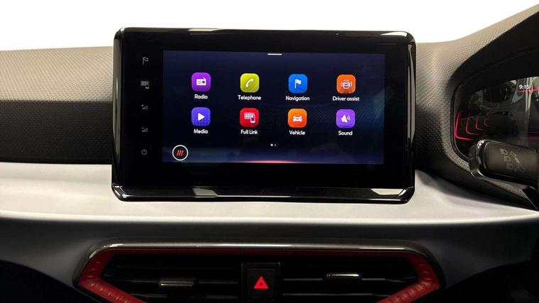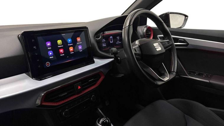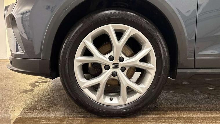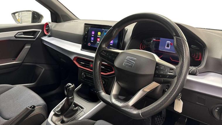 'Lights On' Reminder warning buzzer, 8" Digital cockpit, Digital clock, E-call, Electric speed sensitive power steering, Full Link Smartphone Integration with Mirror Link, Apple Car Play, Google Android Auto with USB Type C cable for Apple and Android compatibility, Lane keeping system, Low fuel warning light, Outside temperature display, Rear parking sensor, RPM counter, Seat connect with safety, service, remote and online, SEAT Drive profile - Four different models normal-sport-eco-individual, steering response, throttle response, Trip computer, Wireless phone charger, 9.2" colour touchscreen with navigation system, voice control and USB port (type c), Bluetooth interface for hands free and audio streaming, DAB digital radio and AM/FM radio, Steering wheel mounted audio controls, Anti theft roof antenna, Auto dimming interior rear view mirror, Automatic activation of hazard warning lights, Body coloured bumpers, Body coloured door handle inserts, Chrome roof rails and window surrounds, Dark tinted rear windows, Electric front/rear windows, Electrically adjustable, heated and folding door mirrors, Front fog lights with cornering function and rear fog light, FULL LED automatic headlights with dynamic headlight range control, coming and leaving home, LED daytime running lights, LED rear tail lights and licence plate lights, Protective side mouldings, Rain sensing wipers, Rear side wing doors, Rear spoiler, Rear window wash/wipe, Roof colour door mirrors, Third brake light, Twin exhaust pipe styling hidden exhaust pipe, Visible VIN plate, Windshield wiper with intermittent control and potentiometer, 2 cupholders, 3 seat bench in 2nd row, 60/40 split folding rear seat, Aircare filter, Black interior roof, Cloth upholstery, Double boot floor, Driver sunvisor with covered mirror + card holder, Dual zone climate control, Front courtesy light with 2x front and 2x rear reading lights, Front sport seats, Gear shift indicator, Height adjustable front seats, Height/reach adjustable steering column, Illuminated boot, Instrument lighting with brightness control, Interior ambient lighting, Interior light in footwell, central console and door panel, ISOFIX points in outer rear seats with top tether anchorage points, Passenger sunvisor with vanity mirror, Perforated flat bottomed leather steering wheel/gear knob/handbrake with red stitching and FR logo, Single front passenger seat, Two front and three rear height adjustable headrests, Interior chrome pack - Arona, 3 point seatbelts on all rear seats, ABS, Active front headrests, Child locks on rear doors, Driver and front passenger airbags with front passenger airbag de activation, front side and curtain airbags, Electronic stability control, Emergency Brake Assist (EBA) and front assist, Front and rear seatbelt reminder, Hill hold control, Multi-Collision braking, Tiredness recognition system, Traction control, Tyre pressure monitoring system, Alarm with back-up horn, Electronic engine immobiliser, Locking wheel bolts, Remote central locking + deadlocks, Tow away protection, Titan black dashboard, 17" Dynamic alloy wheels,