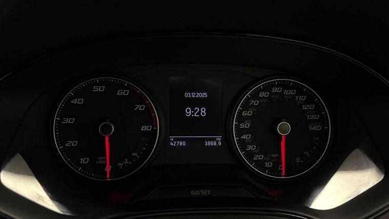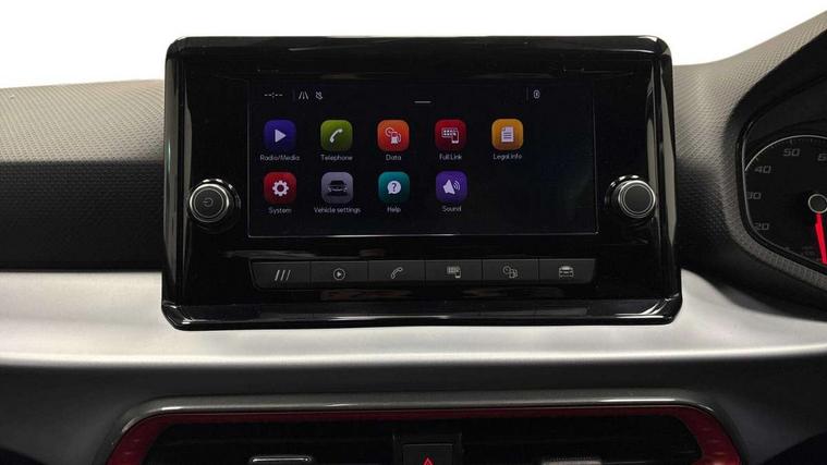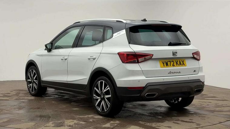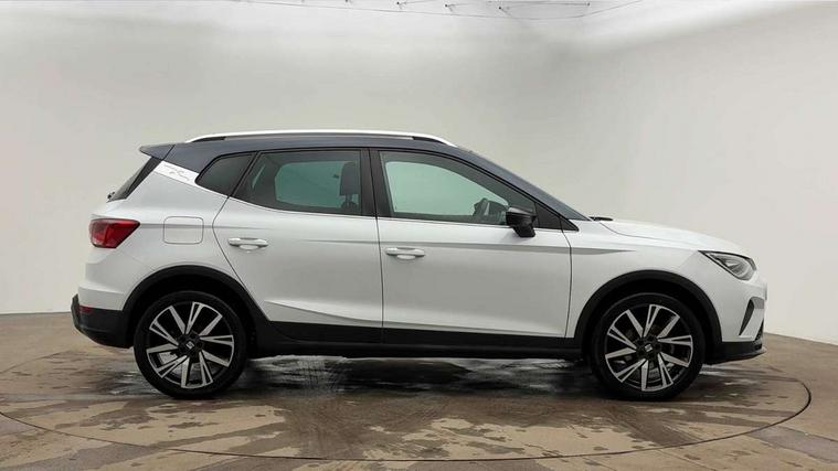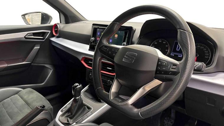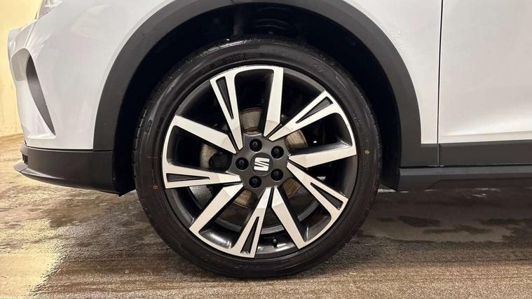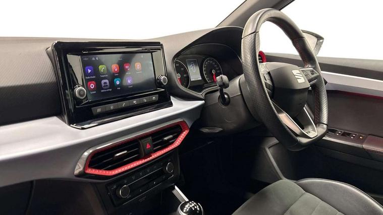 'Lights On' Reminder warning buzzer, Analogue cockpit with physical dials, Digital clock, E-call, Electric speed sensitive power steering, Full Link Smartphone Integration with Mirror Link, Apple Car Play, Google Android Auto with USB Type C cable for Apple and Android compatibility, Lane keeping system, Low fuel warning light, Outside temperature display, Rear parking sensor, RPM counter, Seat connect with safety, service and remote, SEAT Drive profile - Four different models normal-sport-eco-individual, steering response, throttle response, Trip computer, Wireless phone charger, Bluetooth interface for hands free and audio streaming, DAB digital radio and AM/FM radio, Media system with 8.25" colour touchscreen with USB port (type c), Steering wheel mounted audio controls, Anti theft roof antenna, Automatic activation of hazard warning lights, Body coloured bumpers, Body coloured door handle inserts, Chrome roof rails and window surrounds, Dark tinted rear windows, Dimming rear view mirror, Electric front/rear windows, Electrically adjustable and heated door mirrors, Front fog lights with cornering function and rear fog light, FULL LED automatic headlights with dynamic headlight range control, coming and leaving home, LED daytime running lights, LED rear tail lights and licence plate lights, Protective side mouldings, Rear side wing doors, Rear spoiler, Rear window wash/wipe, Roof colour door mirrors, Third brake light, Twin exhaust pipe styling hidden exhaust pipe, Visible VIN plate, Windshield wiper with intermittent control and potentiometer, 2 cupholders, 3 seat bench in 2nd row, 60/40 split folding rear seat, Aircare filter, Black interior roof, Double boot floor, Driver sunvisor with covered mirror + card holder, Dual zone climate control, Front comfort seats, Front courtesy light with 2x front and 2x rear reading lights, Gear shift indicator, Height adjustable front seats, Height/reach adjustable steering column, Illuminated boot, Instrument lighting with brightness control, Interior ambient lighting, Interior light in footwell, central console and door panel, ISOFIX points in outer rear seats with top tether anchorage points, Microsuede cloth upholstery, Passenger sunvisor with vanity mirror, Perforated flat bottomed leather steering wheel/gear knob/handbrake with red stitching and FR logo, Single front passenger seat, Two front and three rear height adjustable headrests, Interior chrome pack - Arona, 3 point seatbelts on all rear seats, ABS, Active front headrests, Child locks on rear doors, Driver and front passenger airbags with front passenger airbag de activation, front side and curtain airbags, Electronic stability control, Emergency Brake Assist (EBA) and front assist, Front and rear seatbelt reminder, Hill hold control, Multi-Collision braking, Tiredness recognition system, Traction control, Tyre pressure monitoring system, Alarm with back-up horn, Electronic engine immobiliser, KESSY Keyless entry and go, Locking wheel bolts, Remote central locking + deadlocks, Tow away protection, Titan black dashboard,