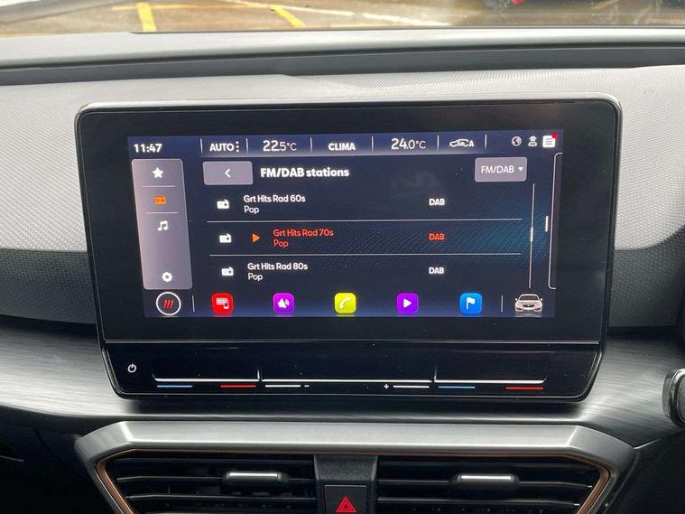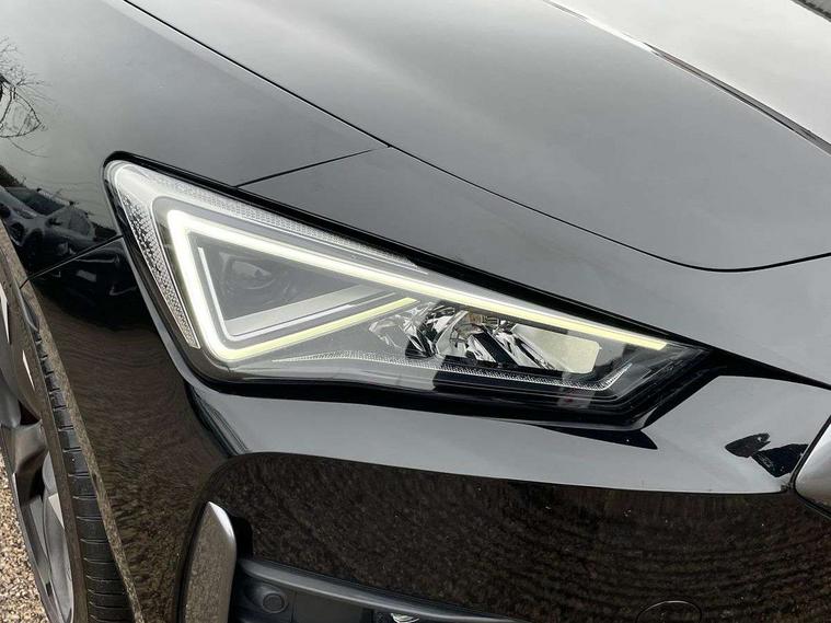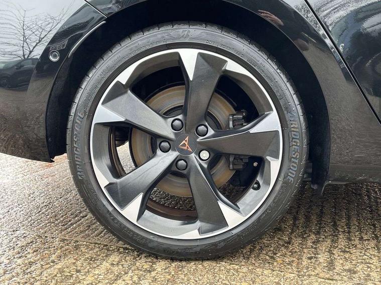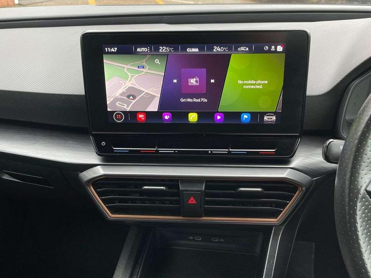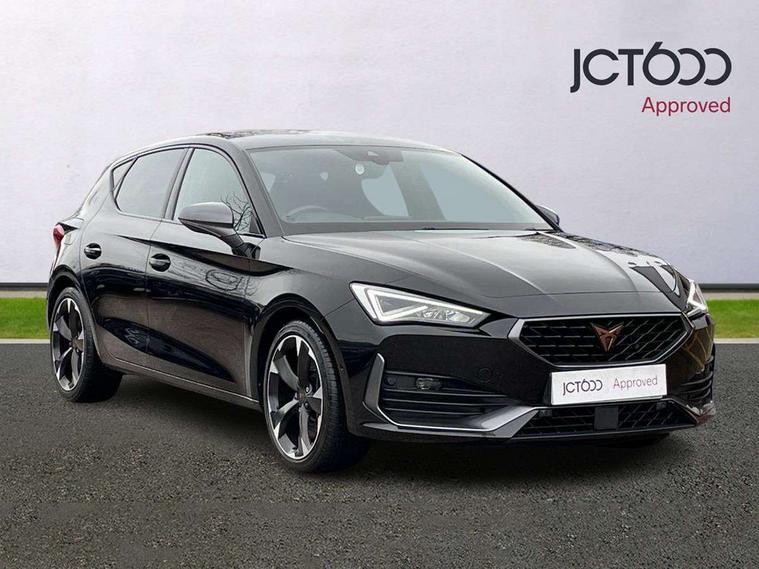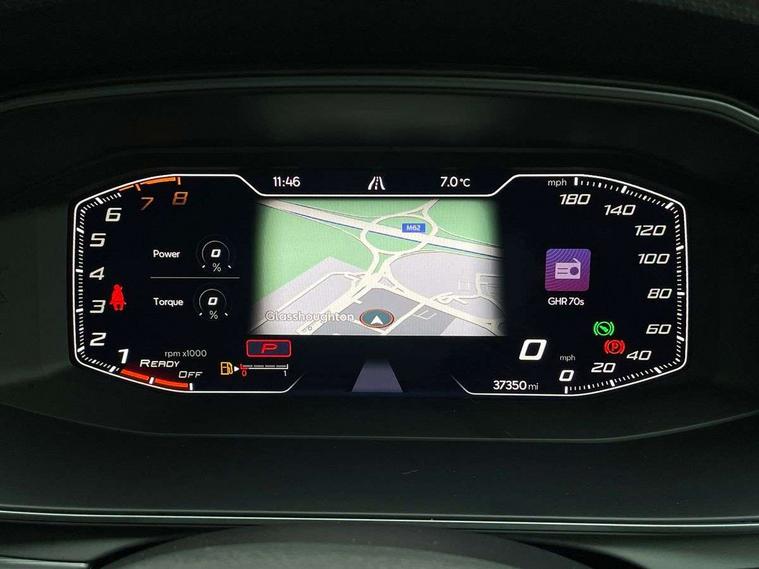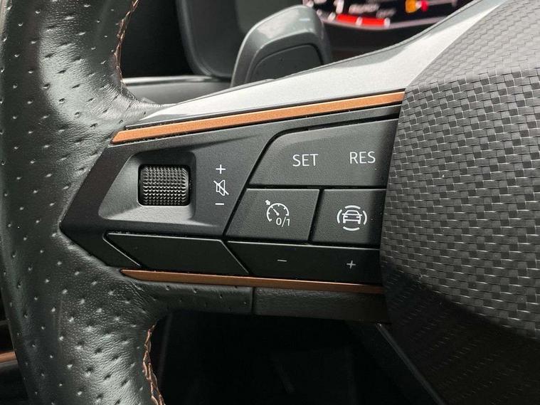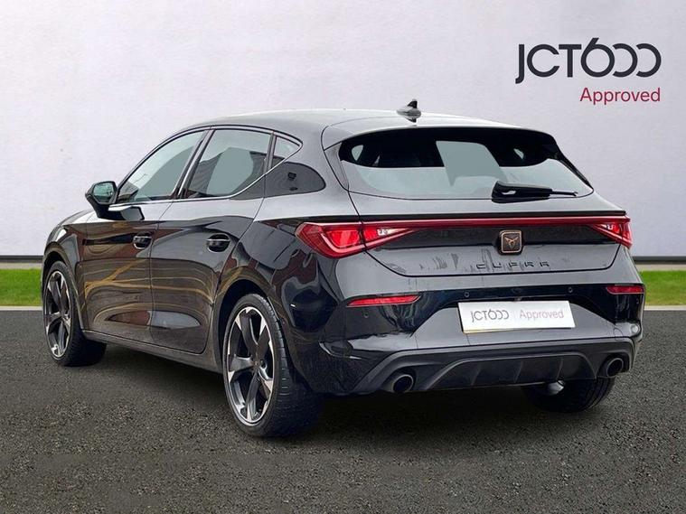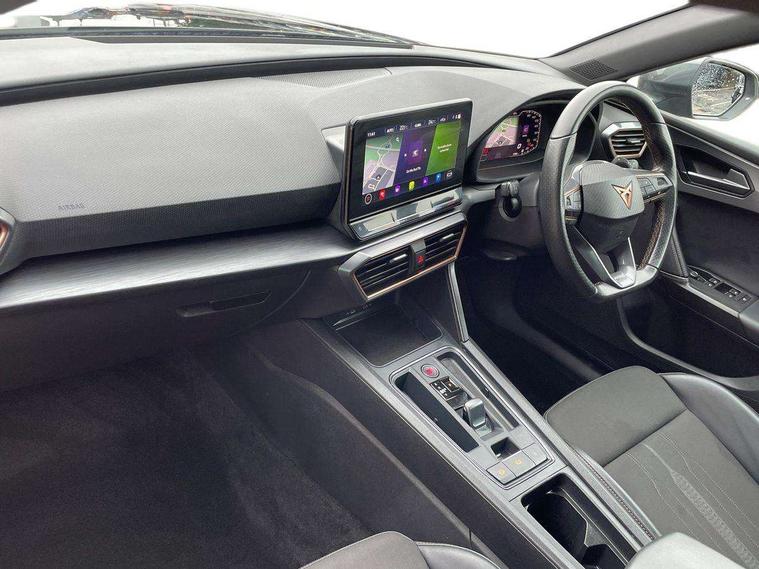 CUPRA drive profile selection with 4 modes (Comfort/Cupra/Sport/Individual), throttle response and gearshift mode, Digital cockpit, E-call, Electro mechanical speed sensitive power steering, Front assist with forward collision warning braking reaction to vehicles, pedestrians and cyclists, Full link smartphone integration with Mirror Link, wireless Apple CarPlay and wired Google Android Auto, Lane assist, Lockable tailgate, Park assist (inc front/rear parking sensors), Rear view camera, RPM, trip computer, outside temp gauge, instrument light brightness, low fuel warning light, lights on reminder, gearshift indicator, Service interval indicator, Start/stop system with regenerative braking, Sports suspension, XDS electronic differential lock and dynamic traction support, 7 speakers, Auxiliary input socket, Auto dimming rear view mirror, Body colour door handles, Body coloured bumpers, Cupra sports bumpers, Dark tinted rear windows, Electric front/rear windows, Electrically adjustable, heated and folding door mirrors, LED front fog lamps with cornering function, LED headlights and tail lights with dynamic turn signals, welcome light silhouette from exterior mirrors and dynamic headlight range control, LED rear fog lamp, Rain sensing wipers, Rear coast to coast lighting, Rear diffuser with twin exhaust pipe on each side, Rear side wing doors, Rear wash/wipe, Separate daytime running light with automatic headlight control and coming home feature, Third brake light, 12v power supply in centre console, 3 seat bench in 2nd row, 5 headrests, 60/40 split rear bench seat with armrest, Ambient lighting (glovebox, footwell, ambient lighting multicoloured), Black headlining, CUPRA Leather flat bottomed, heated, perforated steering and gearshift paddles, Cupra sports pedals, Driver/passenger manual seat height adjustment, Dust/pollen filter, Folding boot cover, Four x USB Type C ports, Front and rear reading lights X 4, Front centre armrest, Front seats manual lumbar adjustment, Height/reach adjust steering wheel, Illuminated interior front door sills, Interior wraparound lighting, ISOFIX points in outer rear seats with top tether anchorage points, Jack and tool kit, Luggage tie-down hooks, PVC/Cloth upholstery with copper stitching + Cupra embossed logo on headrest, Single front passenger seat, Sports bucket seats, Storage pockets on rear of front seats, Sunvisors with illuminated mirror, Three zone climate control, Media system plus with navigation pack - Leon Cupra, 3 point seatbelts on all rear seats, ABS, Brake control system - ESC and brake booster, Child proof door locks, Cupra black brake calipers, Driver and front passenger airbags with front passenger airbag de-activation, front side and curtain airbags, Electronic parking brake, Extended safety system - seat belt tensioner, window closure and hazard lights, Hill hold control, Rear disc brakes, Seat belt reminder for front and rear seats, Tiredness recognition system, Tyre pressure monitoring system, Anti theft alarm system with interior monitoring in cab, backup horn and towing protection, KESSY Advanced - Keyless start, keyless entry, Locking wheel bolts, Chrome and copper interior detailing, 18" Machined sport black and silver alloy wheels with 92Y tyres, Space saver spare wheel,
