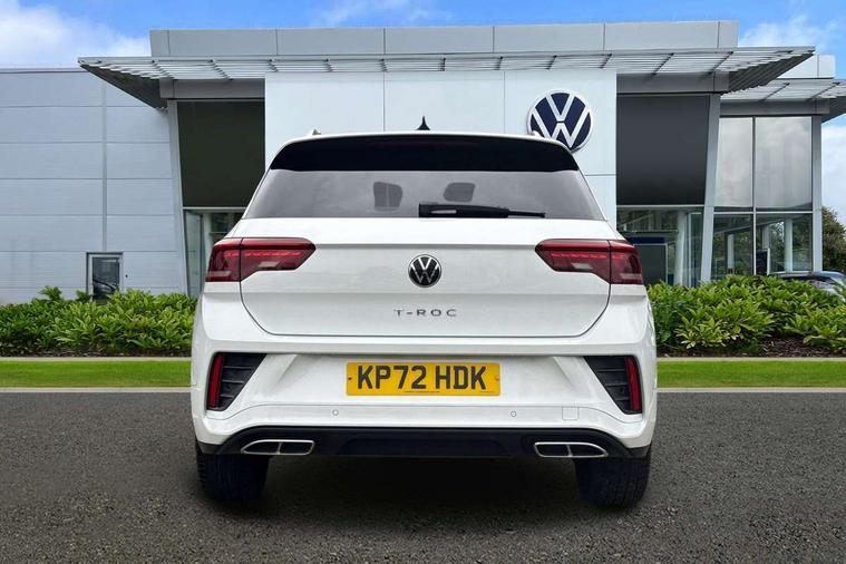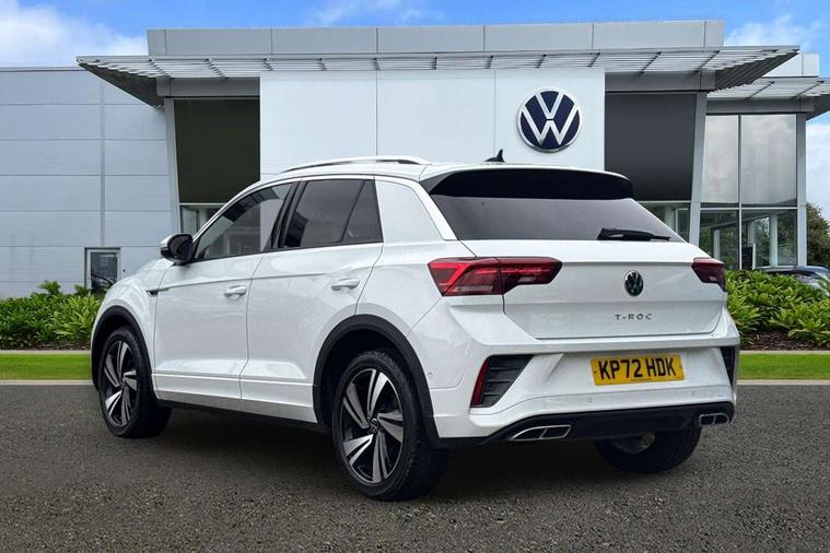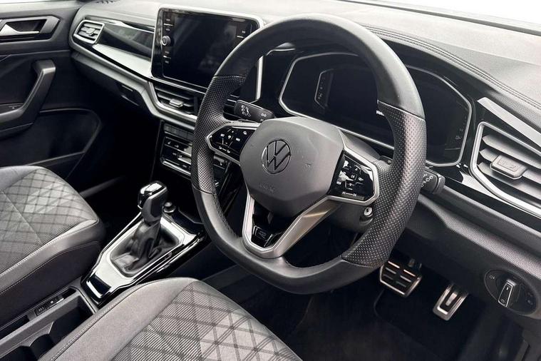 10.25" Digital cockpit pro, Bluetooth mobile phone interface, Driver alert system with fatigue detection, Driver tips and journey analysis, Emergency call service, Lane keeping system Lane Assist, Modified key software - reduce switch off time for key status change to Long no motion, Online services, Park assist including front and rear parking sensors, Service interval indicator, Tailgate/trunk lid release from outside, Think blue trainer driver tips and journey analysis, Warning sound and light for front seatbelts unfastened, Wireless app connect, Battery regeneration during braking, Start/stop function with battery regeneration, Diversity antenna for FM reception, Front and rear 6 speakers, Music playback - MP3, WMA and AAC files, Premium USB cable in choice of either Apple or Android smartphone compatibility, SD card slot, Simultaneous pairing of 2 compatible mobile devices, Title and cover art display, We Connect and We Connect Plus functionality, 3rd brake light, Auto dimming interior rear view mirror, Automatic hazard lights activation under emergency braking, Automatic headlight control with LED separate daytime running lights with coming/leaving home function, Extended roof spoiler, Exterior mirrors aspherical on driver side, convex on front passenger side, External USB type C socket and charging sockets, Front windscreen wiper with intermittent wipe and 4 position delay, Heated rear window, LED Plus headlamps, LED rear combination lamps, LED rear number plate lights, LED tail lamp rear comination lamps, Power windows with comfort operation and circuit breaker, R-Line design body coloured bumpers, Rain sensor, Rear exhaust tailpipe, Rear fog light on one side and reversing lights on both sides, Rear side wing doors, Rear wash/wipe with intermittent wipe setting, Remote electrically foldable door mirrors, puddle lights and reverse activated passenger's door mirror, 12V power socket in centre console, 3 rear head restraints, 3 seat bench in 2nd row, 4 load lashing points in luggage compartment, Air care climatronic air conditoning system with active combination filter and 2-zone temperature control, Black roof lining, Chrome plated radiator grille inserts, air vent surrounds and light switch surrounds, Door and side trim panel with leatherette insert, Drawer under drivers seat, Front + rear carpet mats, Front centre armrest, Front cupholders x 2, Front footwell illumination, Front reading light, Front scuff plates with R logo, Instrument lighting, white adjustable panel illumination, Interior ambient lighting and surround lighting, Interior light delay, Isofix child seat preparation, Leather gearshift handle, Load-through provision with cup holder when folded down ('Unsplit rear seat bench, split folding backrest, with centre armrest), Luggage compartment lighting, Single front passenger seat, Stainless steel pedals, Storage compartment in left and right luggage area, Storage compartment in rear doors, Storage compartments in driver and front passenger doors, Sunvisors with illuminated vanity mirrors, Variable boot floor, height adjustable and removable, Driver assistance pack without proactive passenger protection - T-Roc, 3 point height adj front seatbelts + pretensioners, 3 point seatbelts in outer rear with ECE label, ABS, Child locks on rear doors, Driver and front passenger airbag with front passenger airbag deactivation, Driver and front passenger safety-optimised head restraints, Drivers seatbelt reminder, Electronic parking brake, Electronic Stability Control (ESC) inc EDL (Electronic Differential Lock) and ASR (Traction Control), Front and rear passengers curtain airbag system including front side airbags, Front assist with city emergency braking and pedestrian monitoring, Front seat side impact airbags, Hill start assist, Predictive pedestrian protection, Rear disc brakes, Single tone horn, Tyre pressure loss indicator, Volkswagen roadside assistance, Alarm with interior protection, Anti-theft alarm system with interior monitoring, backup horn, and towing protection, Remote central locking with SAFELOCK, radio remote control with 2 remote control folding keys, Trims for alloy wheels,