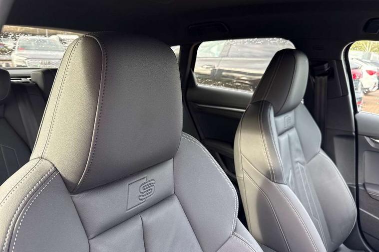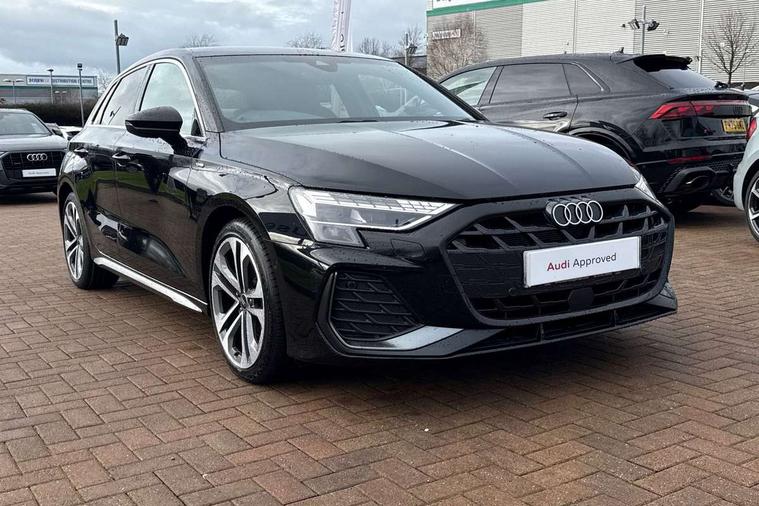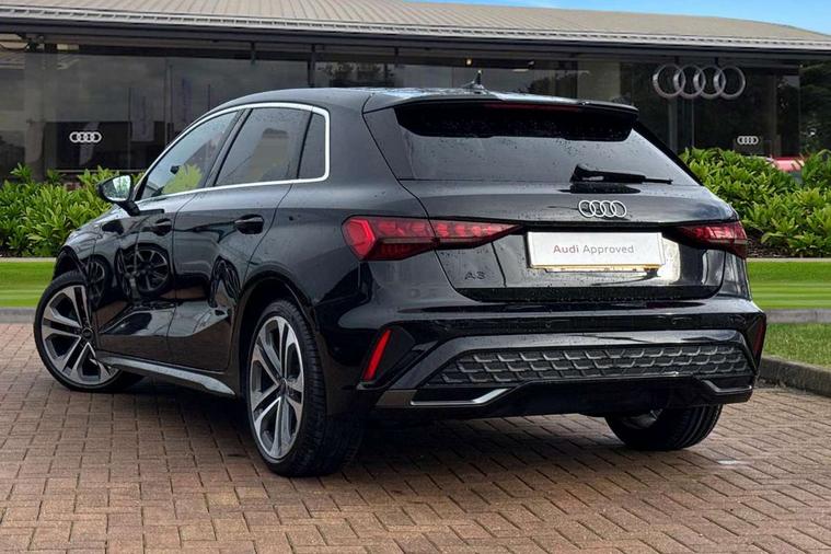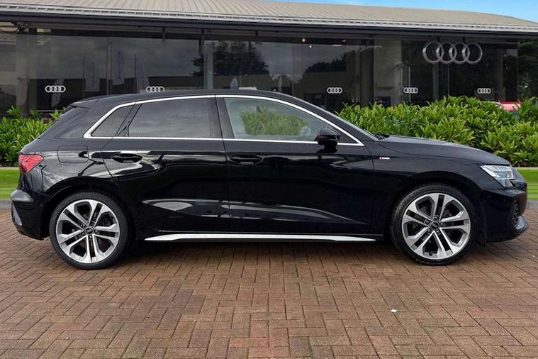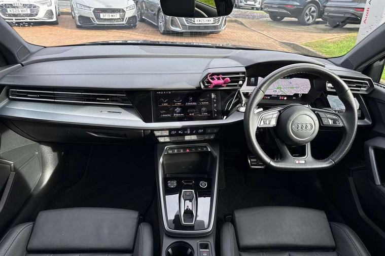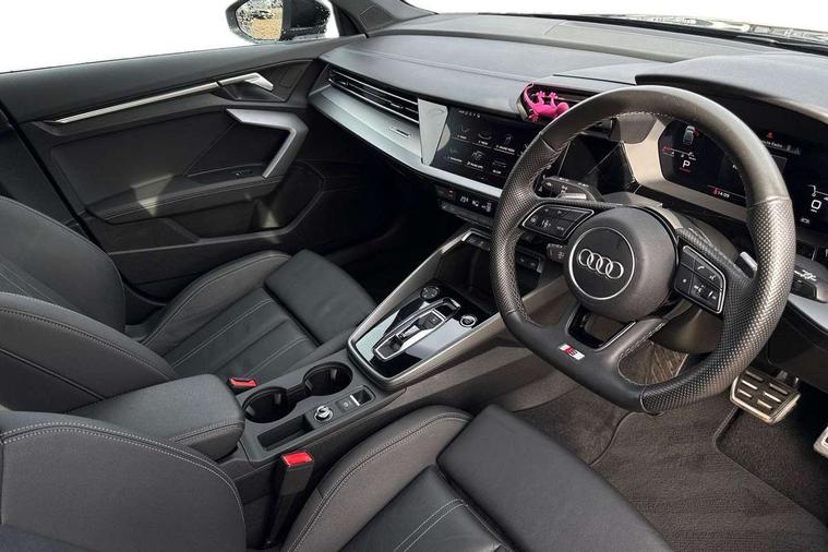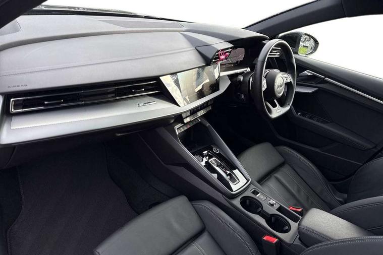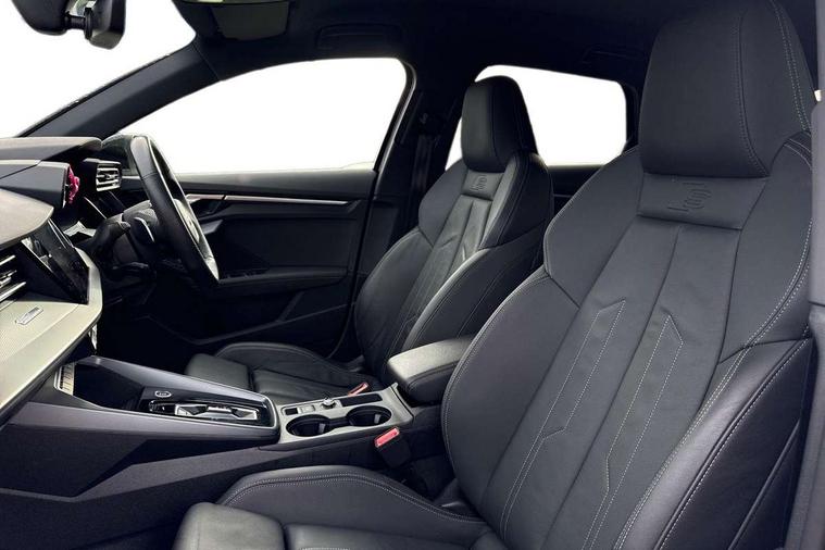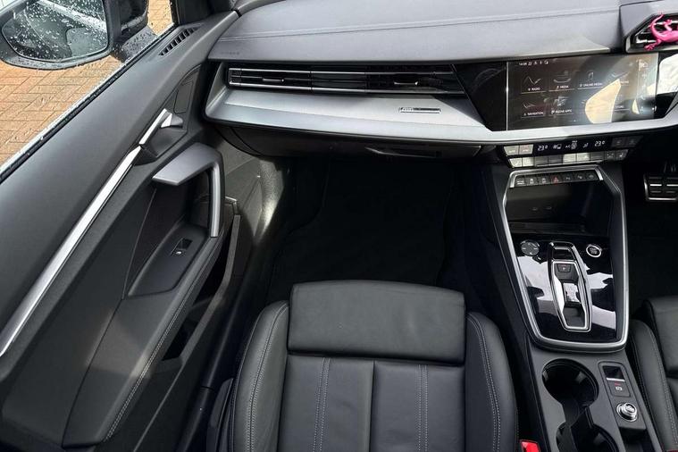 Adjustable speed limiter, Audi drive select, Audi smartphone interface with app store includes wireless Apple carplay, Android auto and Amazon alexa integration, Audi virtual cockpit plus - 12.3" full HD resolution dynamic digital instrument cluster, Automatic start/stop system with recuperation, Bluetooth interface, Camera based traffic sign recognition, Collision avoidance assistant, Cruise control, Distraction and Fatigue warning, e-Call (emergency call), Electromechanical power speed sensitive steering, Lane departure warning system, MMI Navigation Plus with high resolution 10.1" colour touch screen display, Park Assist with parking system Plus, Service indicator, Tailgate, Trip computer, Voice control system with natural language interaction, Diesel particulate filter, Sports suspension, Audi Phonebox light with wireless charging, Audi sound system - 10 loudspeakers including centre loudspeaker and subwoofer, DAB Digital radio, USB ports with charging function in the rear, Acoustic glass windscreen, Aluminium window trim, Auto dimming frameless rear view mirror, Body colour exterior mirrors, Chrome exhaust tailpipes, Electrically adjustable/heated/folding/auto dimming door mirrors with integrated LED indications + kerb view function for passenger side, Exterior model badging, Front and rear side air inlets in grained matt black with dark liquid chrome frame, Front electric windows, Front radiator grill in high gloss dark chrome, Heat insulating glass windscreen, Illuminated door sills with aluminium inserts at the front with S logo, LED 3rd brake light, LED daytime running lights, LED headlights with LED rear lights and dynamic rear indicators, Light and rain sensors, Privacy glass - dark tinted rear window, rear door and side windows, Rear diffuser and grill in grained matt black with inlay in dark liquid chrome, Rear electric windows, Rear side wing doors, Rear wiper, S line bumpers, S roof spoiler, Side S line emblems on front wings, Side sill trim in dark liquid chrome, 12V socket and storage compartment in front centre console, 3 seat bench in 2nd row, 3 spoke flat bottomed leather multifunction sport steering wheel with gear shift paddles, 3-zone deluxe automatic air conditioning, 4 way electrically adjustable lumbar support for driver and front passenger, 40/20/40 split folding rear seat bench, Black cloth headlining, Front and rear centre armrest in artificial leather, Front and rear centre armrest in artificial leather with contrasting stitching on armrests and instrument panel, Front and rear headrests, Front/rear floor mats, Heated front seats, Height and reach adjustable steering wheel, Manual boot compartment lid, Manually adjustable front seats, Rear cup holders, S badging on the steering wheel, Seat side bolsters, Single front passenger seat, Stainless steel pedals and front footrest in black, Twin leather upholstery with front sports seats S embossed logo, Aluminium interior elements pack - A3 Sportback, Multi-coloured LED interior lighting package - A3, 3x3 point rear seat belts, Driver and front passenger airbag with passenger airbag deactivation, Electronic Stabilisation Control (ESC) including ABS, ASR and EDL, First aid kit with warning triangle and 2 safety vests, Front side airbags with head airbags and interaction airbag, Hill hold assist, Pre-sense front with pedestrian and cyclist detection, Seatbelt monitoring, Tyre pressure loss indicator, Anti theft alarm, Anti-theft wheel bolts, Electronically operated child locks, Immobiliser, Remote central locking with safelock, Dash & door Inlay in dark aluminium Spectrum,