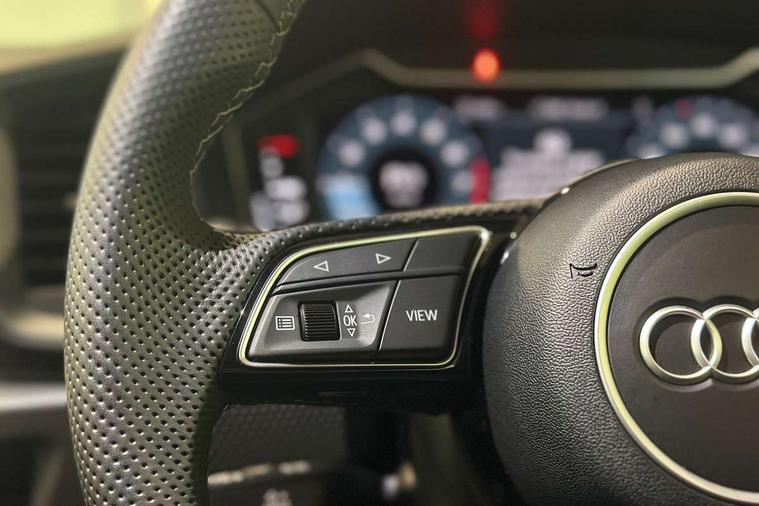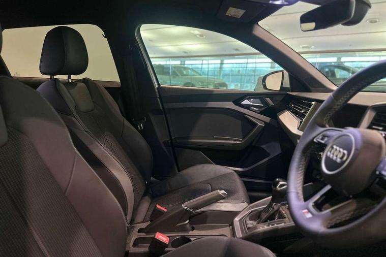 10.25" Digital instrument cluster display classis style instrument dials + speed, odometer, time, outside temperature, telephone menu + fuel level warning, Advanced driver attention and drowsiness monitor, Audi connect emergency call and service, Audi drive select, Audi remote connect and control, Audi smartphone interface, Bluetooth interface, Camera based traffic sign recognition, Cruise control, Driver's information system, Electromechanical power steering, Lane departure warning system, Rear parking sensor, Service interval indicator, Speed limiter, Start stop system with recuperation, Voice control system, Washer fluid level indicator, Sports suspension, 2 x USB type C connection points, 6 loudspeakers, DAB Digital radio, MMI radio plus with 10.1" colour MMI display screen and MMI touch, Auto dimming rear view mirror, Body coloured door mirrors, Door sill trims with aluminium inlays and S line logo in front, Electric front and rear windows, Electrically adjustable, heated, folding door mirrors with integrated LED side indicator, Front side air inlets in grained matt black and C frame in anthracite black, Headlight cleaning system, Heat insulating glass windscreen and side windows, Heated rear windscreen, High level LED brake light, LED daytime running lights, LED headlights with range control LED rear lights + dynamic rear indicators, Privacy glass, Radiator grille and rear diffuser in matt anthracite black, Radiator protective grille frame in matt aluminium silver, Rain and light sensors, Rear fog lights, Rear side wing doors, Rear wiper, S line badges on front wings, Side front spoiler lips in grained matt black, 12V socket in centre console with two cup holders, 3 rear seats with headrests, 3 seat bench in 2nd row, 3 spoke leather multi-function plus steering wheel features S badging and grips in perforated leather with contrast stitching, 40:60 Split folding rear seat or fully collapsed, Black cloth headlining, Front and rear velour black floor mats with contrast stitching in fine silver, Front head restraints, Front passenger seat, Height and reach adjustable steering wheel, Interior lighting includes roof module, front and rear reading lights and right luggage compartment lighting, ISOFIX child seat mounting for front passenger and outer rear seats including top tether attachment point of outer rear seats, Leather gear knob with aluminium trim, Leather handbrake grip, Manual air conditioning, Manual height adjustable for driver and front passenger seat, Manually adjustable lumbar support in front seats, Stainless steel pedals, Ambient lighting package - A1, Luggage compartment pack - A1, S line exterior styling pack - A1 Sportback, 3x3 point rear seatbelts, Audi pre-sense front with pedestrain and cyclist recognition, Brake assist function, Driver and front passenger airbag with front side and head airbags, Electronic Stability Control including ABS, EBD, ASR and EDL, Front passenger airbag deactivation switch, Hill hold assist, Manual rear child locks, Seatbelt height adjustment for front seats, Seatbelt monitoring, Tyre pressure loss indicator, Warning triangle and first aid kit, Anti theft alarm, Anti theft wheel bolts, Immobiliser, Remote control key with safelock, Aluminium trim for control switches, air vents and digital instrument cluster, Black dashboard, Silver grey inlays polygon structure in diamond paint finish, Structured grey accent surfaces insert of air vents, interior door handle recesses and centre console in quartz paint finish,