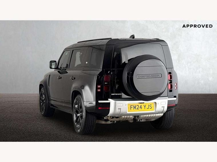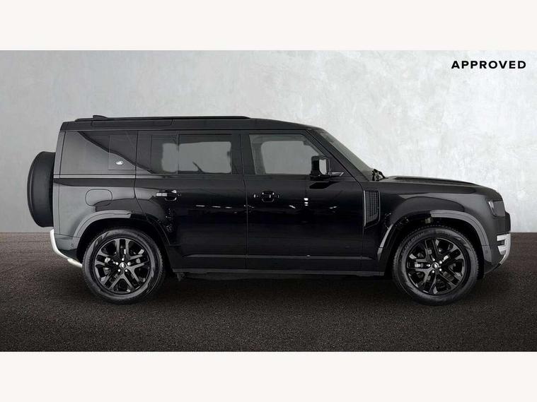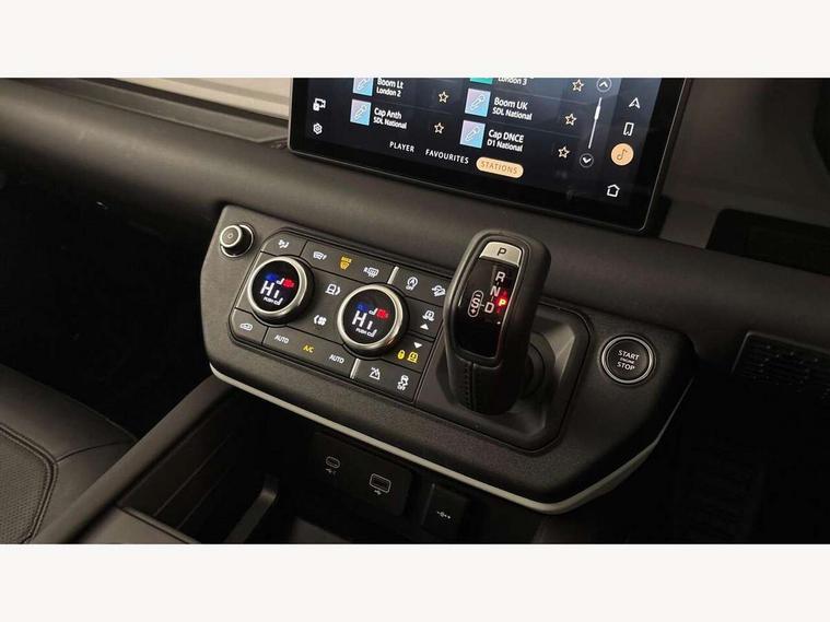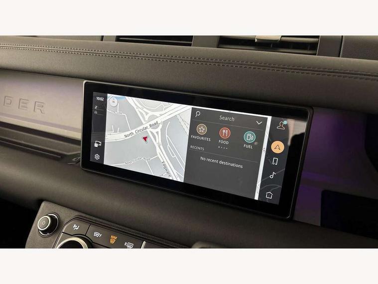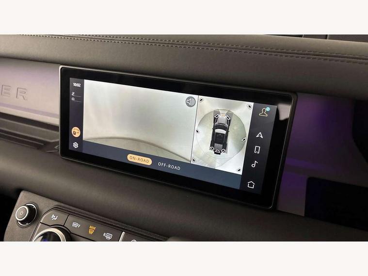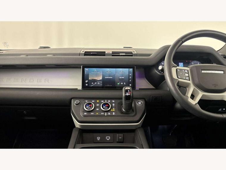 360 degree parking aid, 3D Surround Camera with 360 View, 180 Rear View, Front Traffic Detection, Forward Vehicle Guidance, Tow Hitch Assist and clear sight Ground View, Android Auto, Apple CarPlay, Assisted tailgate with soft close, Blind spot assist, Bluetooth system, Brake pad wear indicator, Clear exit monitor, Connected navigation pro, Cruise control + speed limiter, Driver condition monitor, Electric power assisted steering (EPAS), Interactive driver display, Lane keep assist, Push button start, Rear traffic monitor, Traffic sign recognition with adaptive speed limiter, Trip computer, Wade Sensing, 8 speed automatic transmission, Adaptive dynamics, All wheel drive system, Electronic air suspension, Twin speed transfer box, DAB Radio (Digital Audio Broadcasting), Pivi pro connected, Automatic headlight levelling, Automatic headlights, Body coloured roof, Centre high mounted stop light, ClearSight interior rear view mirror, Electric heated/power fold door mirrors with approach lights and auto dimming driver side, Electric windows with one touch open/close and anti-trap, Follow me home lighting, Front fog lights, Heated rear window with timer, Heated windscreen, Illuminated metal treadplates with brand name script, LED tail lights, Matrix LED headlights with signature DRL, Privacy glass, Puddle lights, Rain sensing windscreen wipers, Rear fog lights, Rear side wing doors, Rear wiper, Side hinged tailgate, Signature graphic (with interior storage), Sliding panoramic roof, Trailer stability assist, 12 way heated and cooled electric memory front seats with 2 way manual headrests, 12V power socket in loadspace, 3 seat bench in 2nd row, 40:20:40 folding rear seats with centre armrest, Alpine lights, Configurable cabin lighting, Durable rubber cabin flooring, Durable rubber loadspace flooring, Electric cabin pre conditioning, Electric reach + rake adjustable steering column, Footwell lights, Front centre console refrigerator compartment, Front passenger isofix child seat attachment, Grained Leather upholstery, Heated steering wheel, Leather gearshift, Light oyster morzine headlining, Loadspace cover, Loadspace Hook, Multifunction steering wheel, Overhead stowage for sunglasses, Premium cabin lighting, Rear headrests, Rear ISOFIX, Rear reading lights, Single front passenger seat, Standard interior, Standard leather steering wheel, Standard seat configuration, Storage glovebox, Sunvisors with illuminated vanity mirrors, Online pack with data plan - Defender, XS Edition exterior pack - Defender, 5 x 3 point seatbelts, ABS, Brake hold function, Cornering brake control (CBC), Cross car beam in light grey powder coat brushed finish, Customer configurable autolock, DSC - Dynamic Stability Control, EBD - Electronic brakeforce distribution, Electric parking brake (EPB), Emergency brake assist, Emergency braking, ESP + traction control, Front airbags with passenger seat occupant detector, HDC - Hill descent control, Hill launch assist, Low traction launch, Power operated child locks, Remote for (e-Call, Optimised assistance call, InControl app, Climate, beep and flash and door), RSC - Roll stability control, Seat belt reminder, TPMS (Tyre pressure monitoring system), Alarm, Immobiliser, Intrusion sensor, Keyless entry, Locking wheel nuts,
