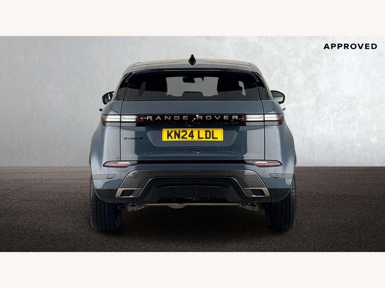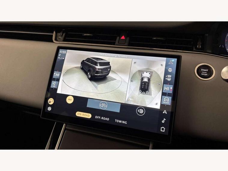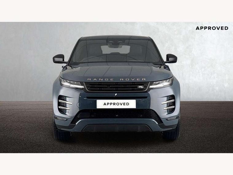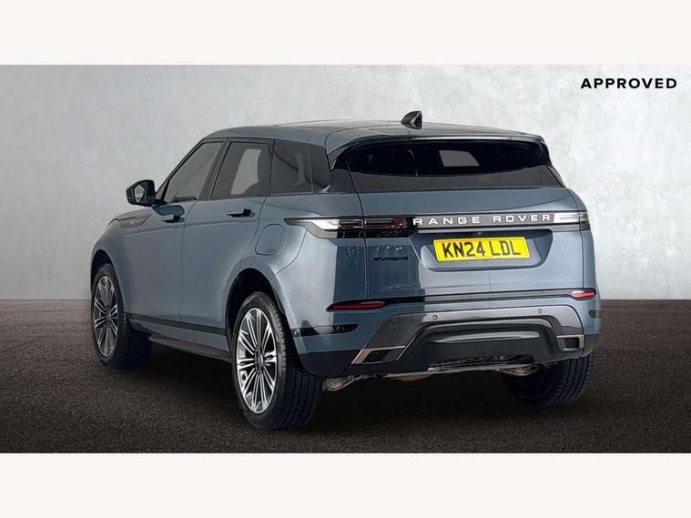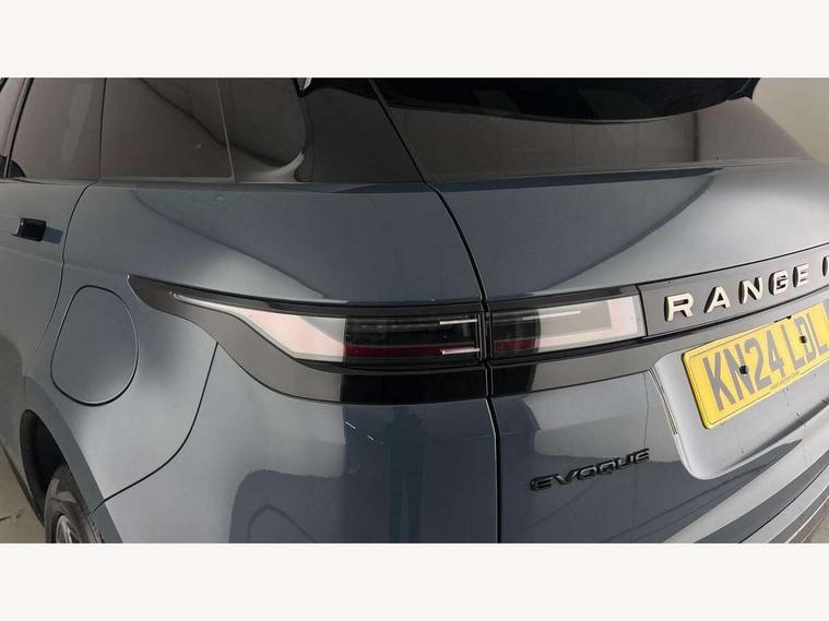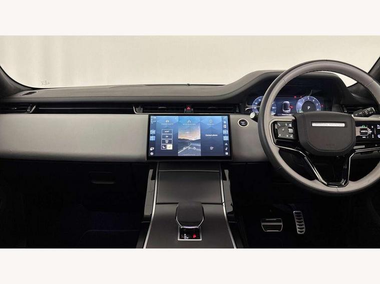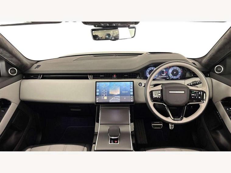 11.4" touch screen, 3D 360 degree surround camera with wade sensing, Adaptive cruise control, Android Auto, Apple car play, Blind spot assist, Bluetooth connectivity, Brake pad wear indicator warning light, Driver condition monitor, eCall emergency system, Eco mode, Electronic power assisted steering (EPAS), Front and rear parking aid, Head up Display, InControl remote, Interactive driver display, Land Rover InControl apps, Lane keep assist, Pivi pro connected includes diamond pivi variant, smart settings, connected navigation pro, nuance speech licence, Powered tailgate/boot lid, Rear collision monitor, Rear traffic monitor, Traffic sign recognition with adaptive speed limiter, Voice control system, Wireless device charging, All terrain progress control, Configurable dynamics, Electric rear axle drive, Home charging cable, Large fuel tank, Passive suspension, Public charging cable, Terrain Response 2, Digital Audio Broadcast radio-DAB, Steering wheel mounted controls, Acoustic laminated windscreen, Auto headlights, Automatic headlight levelling, ClearSight interior rear view mirror, Electric windows with one touch open/close and anti trap, Flush deployable exterior door handles, Front and rear recovery eyes, Front fog lights, Heated rear window with timer, Heated washer jets, Heated windscreen, Pixel LED headlights with signature DRL and LED tail Lights, Power fold, auto-dimming, heated door mirrors with approach lights and auto dimming driver side, Rain sensing windscreen wipers, Range rover branding illuminated metal tread plates in loadspace and row 1 with brand name script and metal in row 2, Rear animated directional indicators, Rear fog lights, Rear side wing doors, Rear wiper, Side repeater indicators in mirror, Sliding panoramic roof with powered sunblind, Tailgate spoiler, Third brake light, Winter wiper park position, 14 way driver memory electric front seats with 2 way manual headrests + 4 way lumbar support, bolsters, 40:20:40 split folding rear seats with centre headrest and armrest, Ambient interior lighting, Bright metal pedals, Cabin Air Purification plus, Configurable cabin lighting, Customer configurable single point entry, Electrically adjustable steering column with memory function and easy entry/exit, Front and rear cupholders, Heated and cooled front seats, Heated rear seats, Heated steering wheel, Isofix system on outer rear seats, Overhead lighting console, Overhead stowage for sunglasses, Passive front head restraints, Premium carpet mats, Rear air vents, Rear head restraints, Satin chrome gearshift paddles, Single passenger seat, Sunvisors with illuminated vanity mirrors, Twin sliding front centre armrest, Online pack with data plan - Evoque, Power socket pack 2 - Evoque, 3 rear 3 point seatbelts, Anti-lock braking system (ABS), Brake hold function, Customer configurable autolock, DSC - Dynamic Stability Control, Electronic brake force distribution, Electronic parking brake, Electronic traction control, Emergency braking, Front and rear seatbelt reminder, Hill descent control, Hill launch assist, Low traction launch, Occupant protection assist, Passenger seat occupant detector, Power operated child locks, Roll stability control, Six airbags - Driver and passenger airbags/driver knee airbag/front side airbag and curtain airbags, Torque vectoring brake, Tyre pressure monitoring system, Alarm, Immobiliser, Intrusion sensor, Keyless entry, Locking wheel nuts, All season tyres,