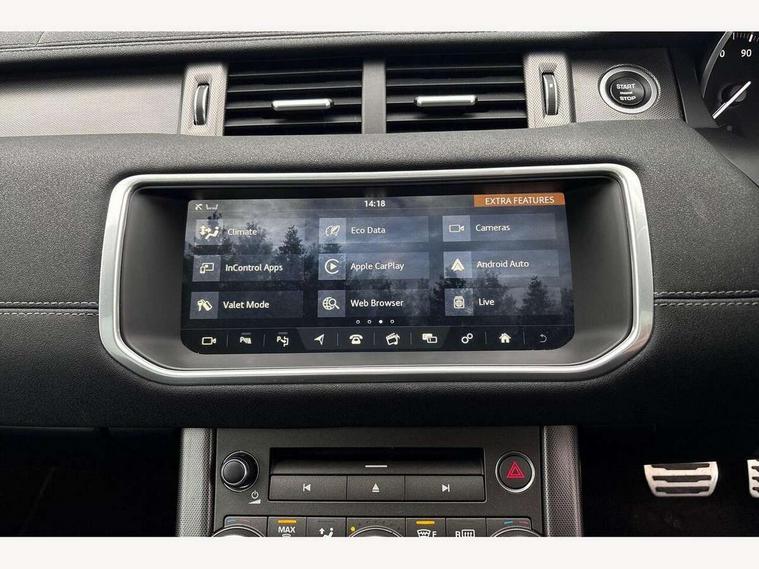 10.2" Dual view touchscreen with Whitefire headphones, Bluetooth telephone connectivity, Dynamic route guidance, EPAS, Gesture tailgate, InControl Touch navigation pro, Land Rover InControl apps, Lane keeping assist with lane departure warning, Autonomous emergency Braking and Driver condition monitor, Park assist - Parallel, perpendicular and parking exit, Parking assist plus, Parking distance sensors front and rear, Reverse traffic detection with blind spot monitor and closing vehicle sensor, Service interval indicator, Surround camera system with towing assist, Traffic sign recognition, Trip computer, Voice control system, Diesel particulate filter, Auxiliary Audio Jack, Bluetooth audio streaming, DAB Digital radio, Digital TV, InControl protect, InControl Touch pro radio/CD with Meridian 825w 17 speaker audio system, media library, USB, HDMI, Steering wheel mounted audio/cruise controls, USB connection, Auto dimming rear view mirror, Automatic headlamp activation, Body colour door handles, Body coloured bumpers, Electric/heated/folding door mirrors with memory + auto dipping and puddle lights, Heated rear windscreen, Heated windscreen, Heated windscreen washers, High beam assistant, Narvik black mirror caps, Narvik black tailgate finish, Panoramic glass sunroof/electric blind, Power front/rear windows with global close, Rain sensor windscreen wipers, Rear wiper, Trailer stability assist, 12V power point in luggage area, 60/40 split folding rear seat, Air quality sensor, Auto climate control with air filtration, Centre console storage with lid, Customer configurable interior mood lighting, Driver/passenger sunvisors and illuminated vanity mirrors, Footwell illumination, Front centre armrest with 2 cupholders, Front head restraints, Front map lights, Height/reach adjustable steering column, Illuminated front tread plates + chrome tailgate plate, Illuminated glovebox, Isofix child seat preparation, Lashing points, Luggage compartment lighting, Luggage cover, Perforated leather steering wheel, Rear air con vents, Rear centre head restraint, Rear headrests, Rear seat centre armrest, Stainless steel pedals, 3 rear 3 point seatbelts, ABS/EBD, Driver and passenger airbags, Drivers knee airbag, DSC - Dynamic Stability Control, EBA, Electronic parking brake, Electronic traction control, Front seatbelt pretensioners with force limiters, Front side airbags with curtain airbags, Height adjustable front seatbelts, Hill descent control, Hill start assist, Roll stability control, Seatbelt warning, Tyre pressure monitoring system, Alarm, Immobiliser, Keyless entry, Locking wheel nuts, Remote central locking,