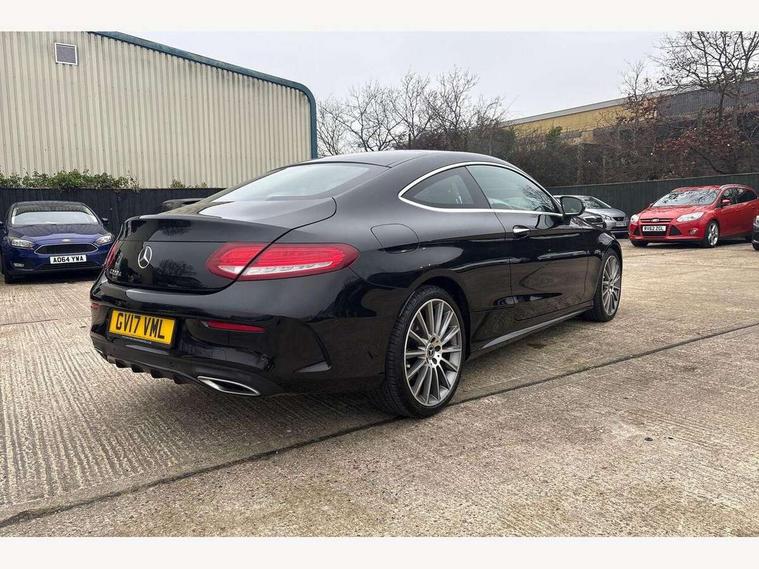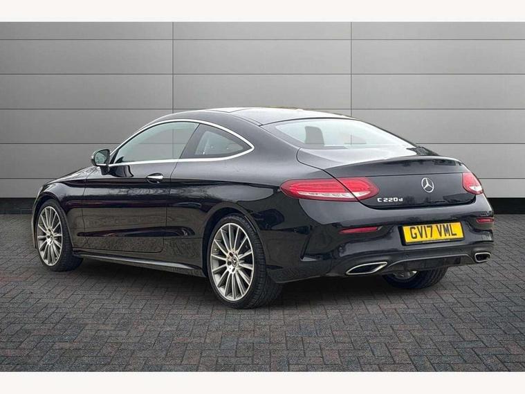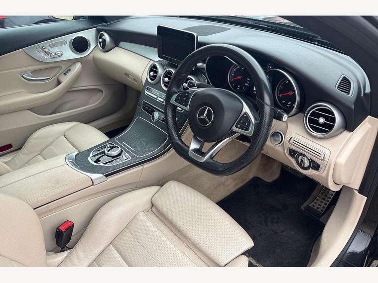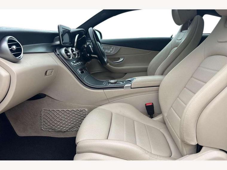 Active park assist with parktronic system, Attention assist, Bluetooth interface for hands free telephone, Collision prevention assist plus, DYNAMIC SELECT with a choice of driving modes (ECO, Comfort, Sport, Sport+ and Individual), Garmin Map Pilot navigation system with SD card, touchpad and voice control, Instrument cluster with 5.5-inch TFT multi-function display, Multi function trip computer, Outside temperature gauge, Remote boot release, Service indicator (ASSYST), Speed sensitive steering, Diesel particulate filter, 2 USB ports, Audio 20 radio/CD with 7" colour display with multi touch keypad, DAB digital radio module, Frontbass loudspeakers, Media interface, Steering column mounted multifunction controls, Adaptive brake lights, AMG front, rear apron and side skirts, Auto dimming driver's door mirror, Auto dimming rear view mirror, Body coloured bumpers, Chrome grille surround, Door sill plates with "Mercedes-Benz" lettering, Electric adjustable/heated/folding door mirrors, Electric front sliding and fixed rear panoramic glass sunroof, Electric windows one touch open/close, Green tinted glass, Heated windscreen washers, LED daytime running lights, LED tail lights, Radiator grille with integral star, Rain sensor windscreen wipers, Side windows surround in polished aluminium, Twin chrome exhaust tailpipes, 2 cupholders in front centre console, 2 rear head restraints, 3 spoke flat bottom multi-function leather AMG steering wheel, 4-way lumbar support for drivers seat, 4-way lumbar support for front passenger seat, 40:20:40 split folding rear seats, Advanced multicolour ambient light and LED interior light, AMG floormats, Auto dual-zone climate control system, Auto Mercedes-Benz child seat recognition sensor, Door courtesy lamps, Electric front seats, Electric height adjustable front seats, Front centre armrest with storage compartment, Front footwell illumination, Heated front seats, Height/reach adjustable steering column, Illuminated front/rear door handle recesses, Illuminated glovebox, Isofix rear child seat fastenings, LED reading lights, Sports pedals with stainless steel surfaces and rubber studs, Sports seats with integrated headrests, Steering wheel gearshift paddles, Sunvisors with illuminated vanity mirrors, Memory pack - C Class, Seat comfort pack - C Class, Stowage space pack - C Class, 2 rear seatbelts, ABS + BAS, Active bonnet, Adaptive brake system, Brake calipers with Mercedes-Benz lettering + perforated brake discs, Drivers knee airbag, Drivers pelvis airbag, Dual stage driver/passenger airbags, Electronic parking brake, ESP with ASR, Front side airbags, Hill hold control, Hill start assist, Tyre pressure monitoring system, Warning triangle and first aid kit, Window airbags, Alarm system/interior protection/immobiliser, Chrome surround in electric key, Keyless entry and keyless start, Remote central locking,