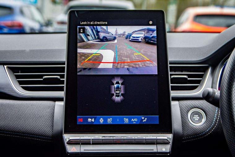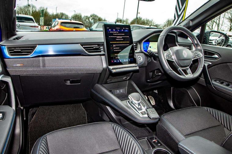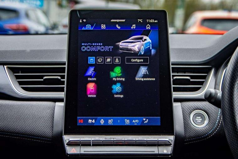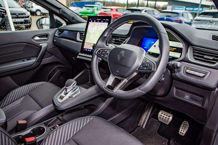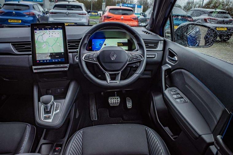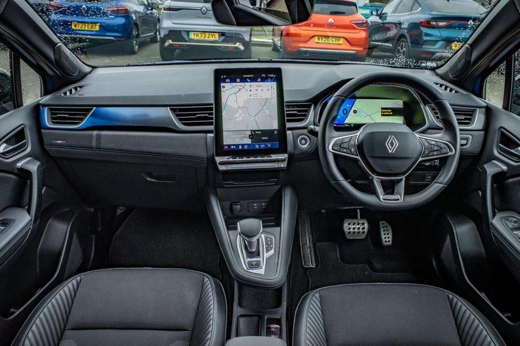 10.25" digital driver display, 10.4" OpenR link touchscreen with with built in Google Automotive Services and navigation, Adaptive cruise control with speed limiter, Blind spot warning and rear detection, Driver attention alert system, Eco mode driving function, Front, rear and side parking sensors, Front/rear detection with emergency lane keep assist incl. solid line, oncoming traffic and road edge detection, Gear change indicator, Lane centering assist, Multi Sense - 3 driving modes and up to 48 ambient lighting colours, My safety switch - ability to personalise ADAS features at press of a button, PAS, Power hands-free tailgate opening, Rear cross traffic/pedestrian alert with rear braking assitance, Rear view camera, Renault automatic emergency assist, Traffic sign recognition with overspeed prevention, Trip computer, Wifi smartphone integration compatible with Apple CarPlay and Android Auto, Wireless phone charger, 2 front and 2 rear USB-C ports, Arkamys speakers - x6 inc. 2 boomer, 2 tweeter and 2 bicone, DAB radio with Bluetooth, Automatic headlights, Automatic high / low beam, Automatic windscreen wipers with rain sensor, Dark tinted rear windows and tailgate, Electric adjustable/heated/auto folding door mirrors, Esprit alpine exterior styling, Frameless auto dimming rear view mirror, Front and rear electric windows with driver window one touch facility and anti pitch function, Front matte grey and rear skid plates, Full LED front and rear lights, Gloss black window surround, Heated rear window, LED daytime running lights, LED rear fog lights, LED third brake light, Radiator grille with 3D graphics in black upper part with grey graphics and body tone lower part, Rear side wing doors, Rear wiper, Shark fin antenna, 2 front roof LED lights and central rear rooflight with 3 reading LED lights, 3 seat bench in 2nd row, Aluminium sports pedals, Automatic air conditioning with one touch quick demist function and air quality regulator, Driver and front passenger seat with electric height adjustment, Esprit alpine interior styling, Flying console with central storage, sliding armrest and 2 rear air vents, Front and rear head restraints, Heated front seats, Heated synthetic leather steering wheel, Height and depth adjustable steering wheel, ISOFIX child seat fixing points on rear outermost seats, Modular boot floor, Rear seats - 1/3:2/3 foldable sliding bench, Recycled fabric upholstery, Single front passenger seat, Sunvisor with mirror and light, 3x3 point rear seatbelts, Abs with emergency brake assist, Active emergency braking system - Urban and pedestrian/cyclist, Distance warning alert, Driver and front passenger and 3 rear passengers seatbelt reminder, Driver and front passenger, side, head and curtain airbags, Driver height adjustable seat belt, Electronic parking brake with auto hold function, Front passenger airbag deactivation, Hill start assist, Occupant safe exit, Rear window and door child locking function, Tyre pressure warning light, Central door locking, Hands free keycard with Keyless access and start, Brushed blue decorative upper strip, Lower textile strip on dashboard with red, white and blue flag, 19" Esprit alpine elixir alloys wheels,